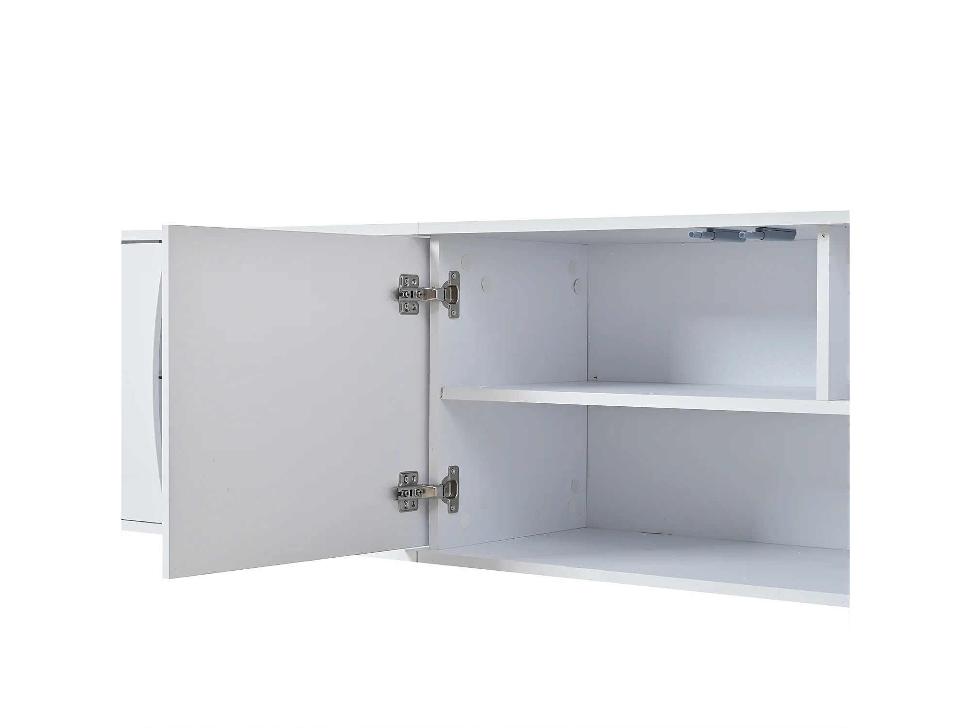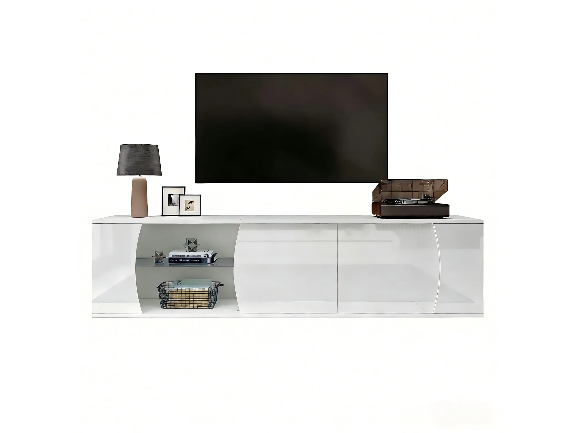 TV-Möbel fürs Wohnzimmer – 180 x 40 x 45 cm – mit 3 Türen und LED-Beleuchtung – für 80-Zoll-Fernseher – Spanplatte – weiß