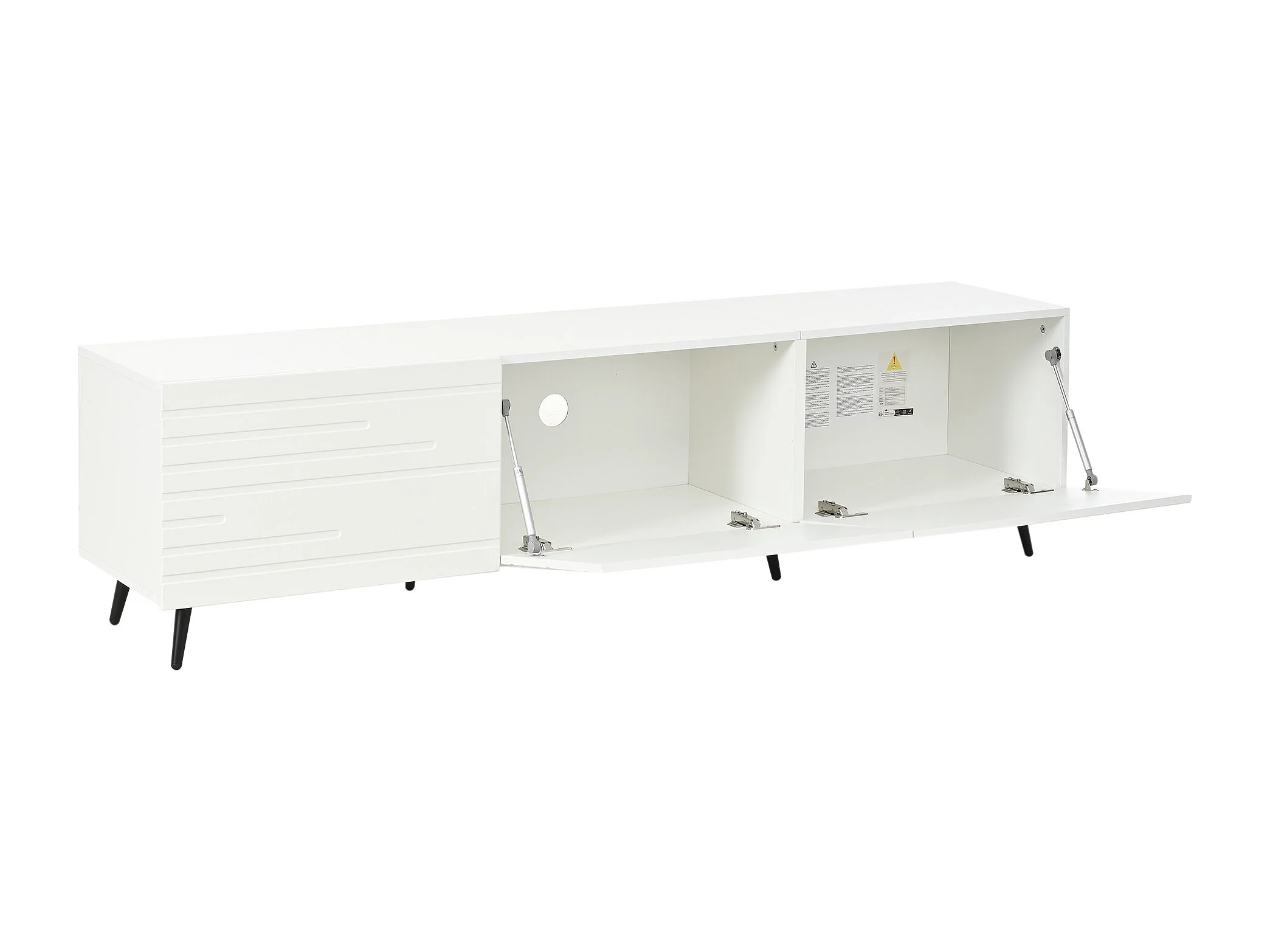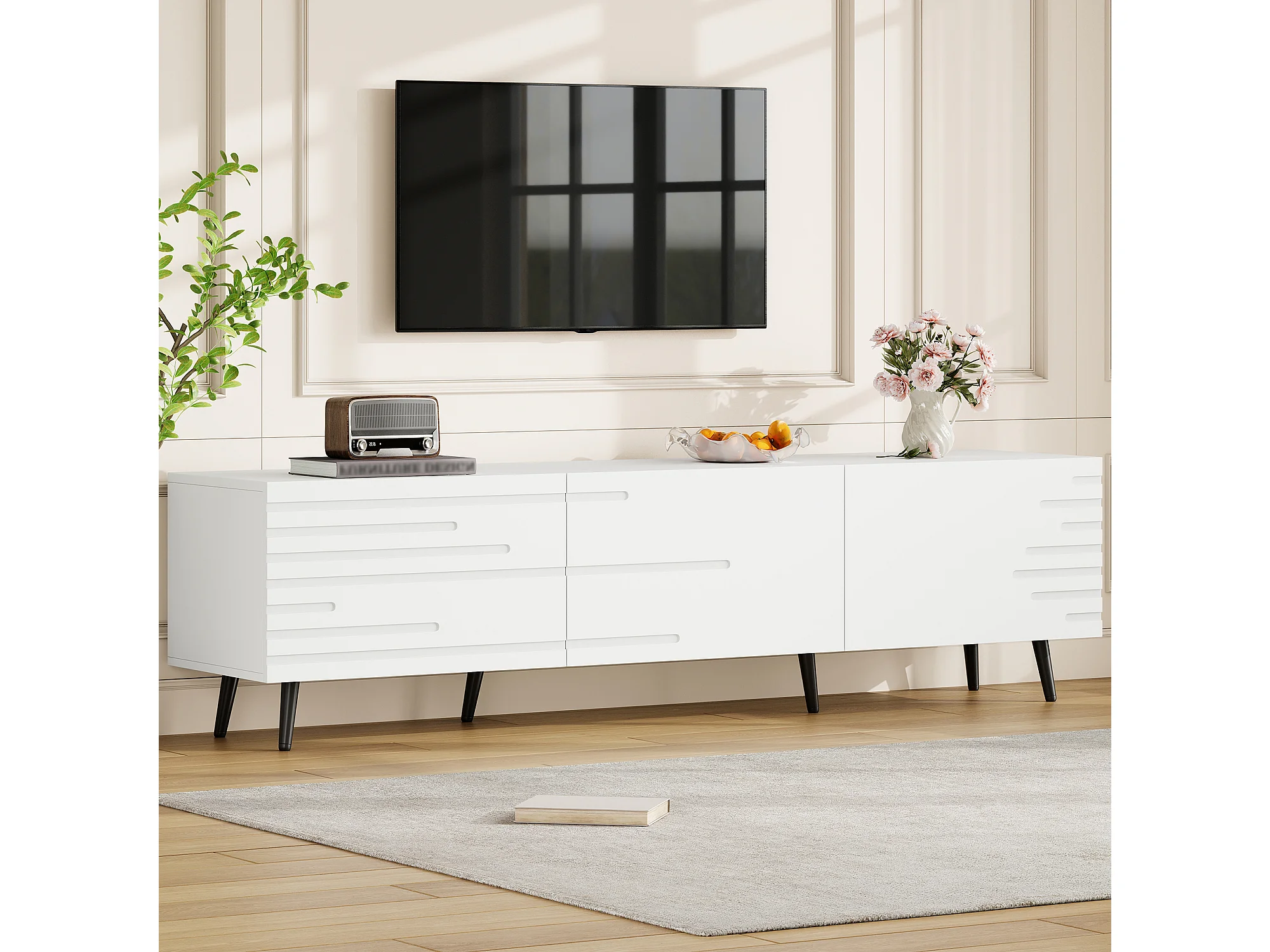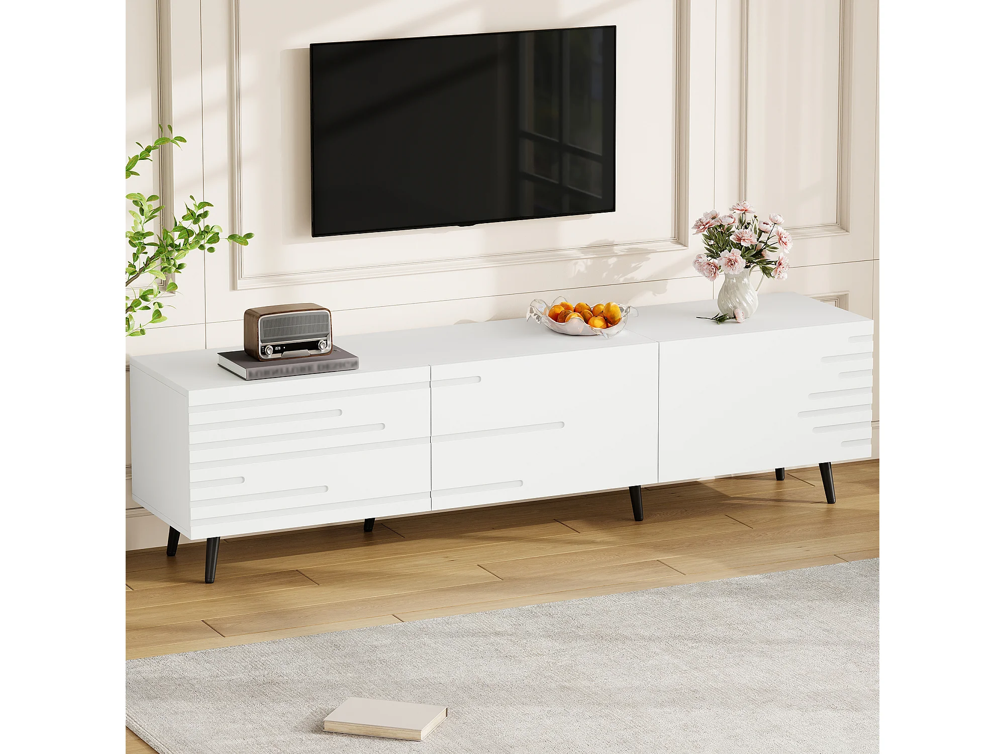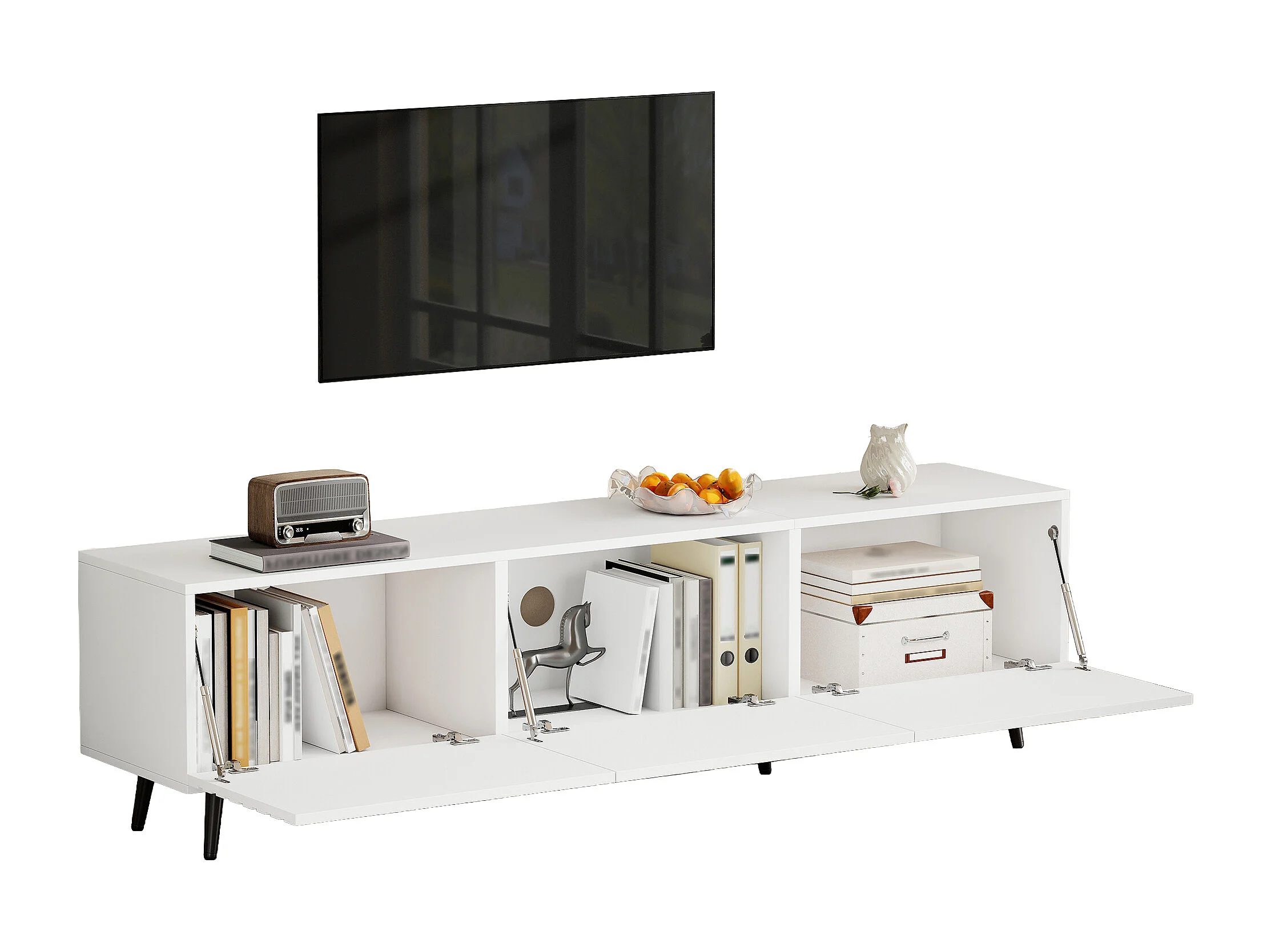 TV-Möbel fürs Wohnzimmer – 180 x 40 x 48 cm – mit 3 Flügeltüren – bedrucktes Design – für 80-Zoll-Fernseher – MDF – weiß