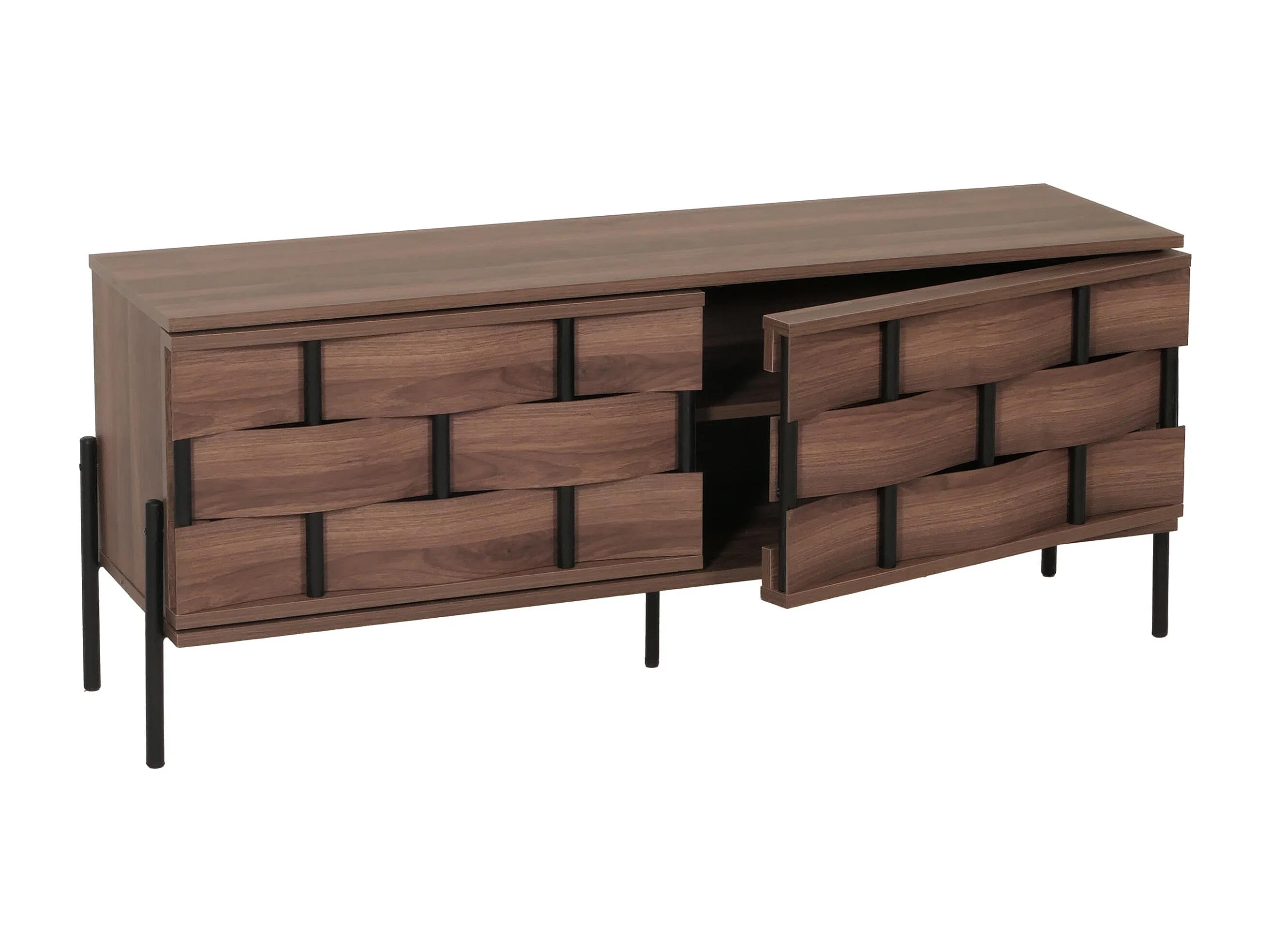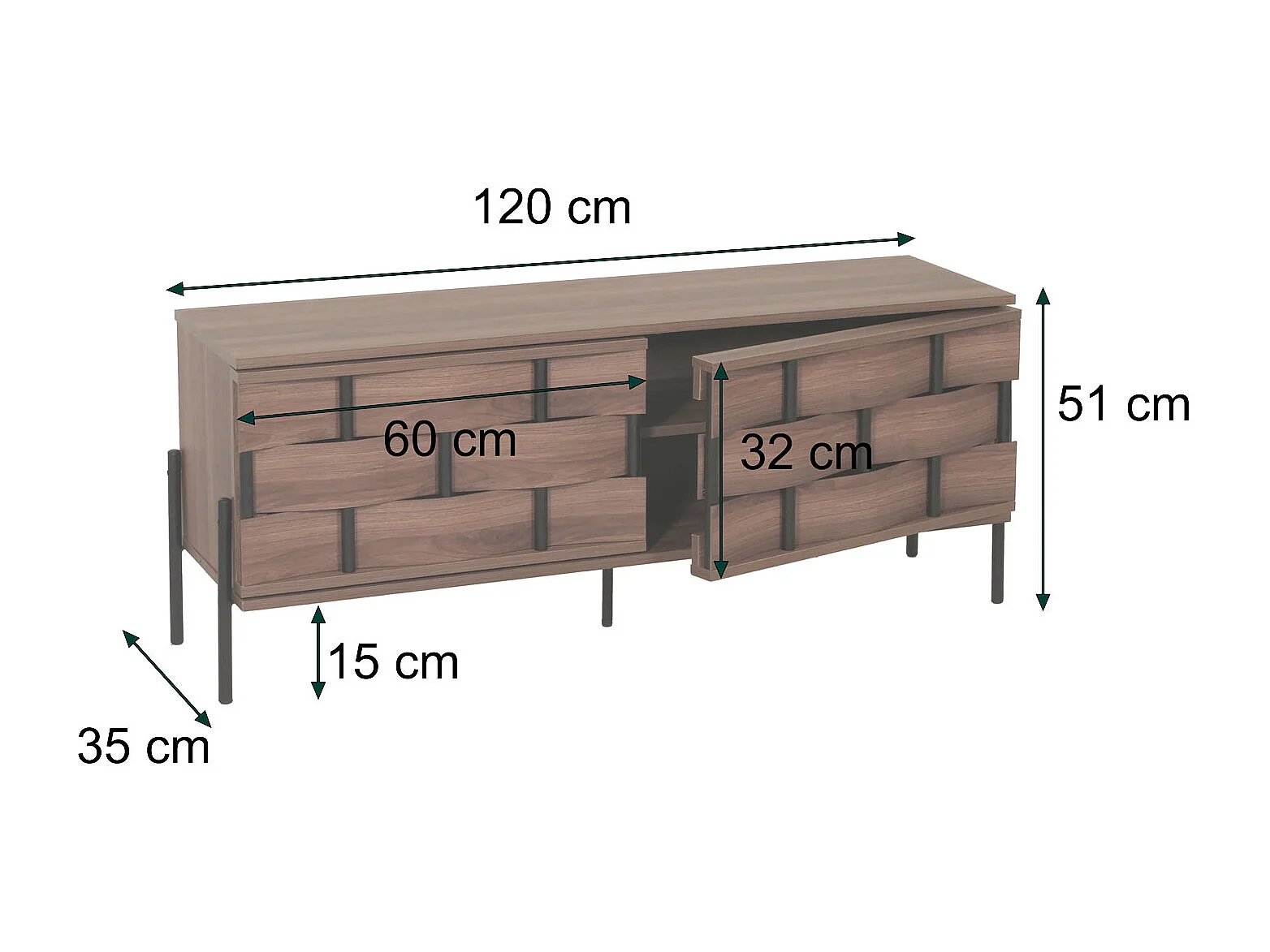 TV-Rack MCW-M44, Fernsehtisch Lowboard TV-Schrank Kommode, Staufächer, 3D-Flecht-Design Push-to-open Türen 120cm, braun