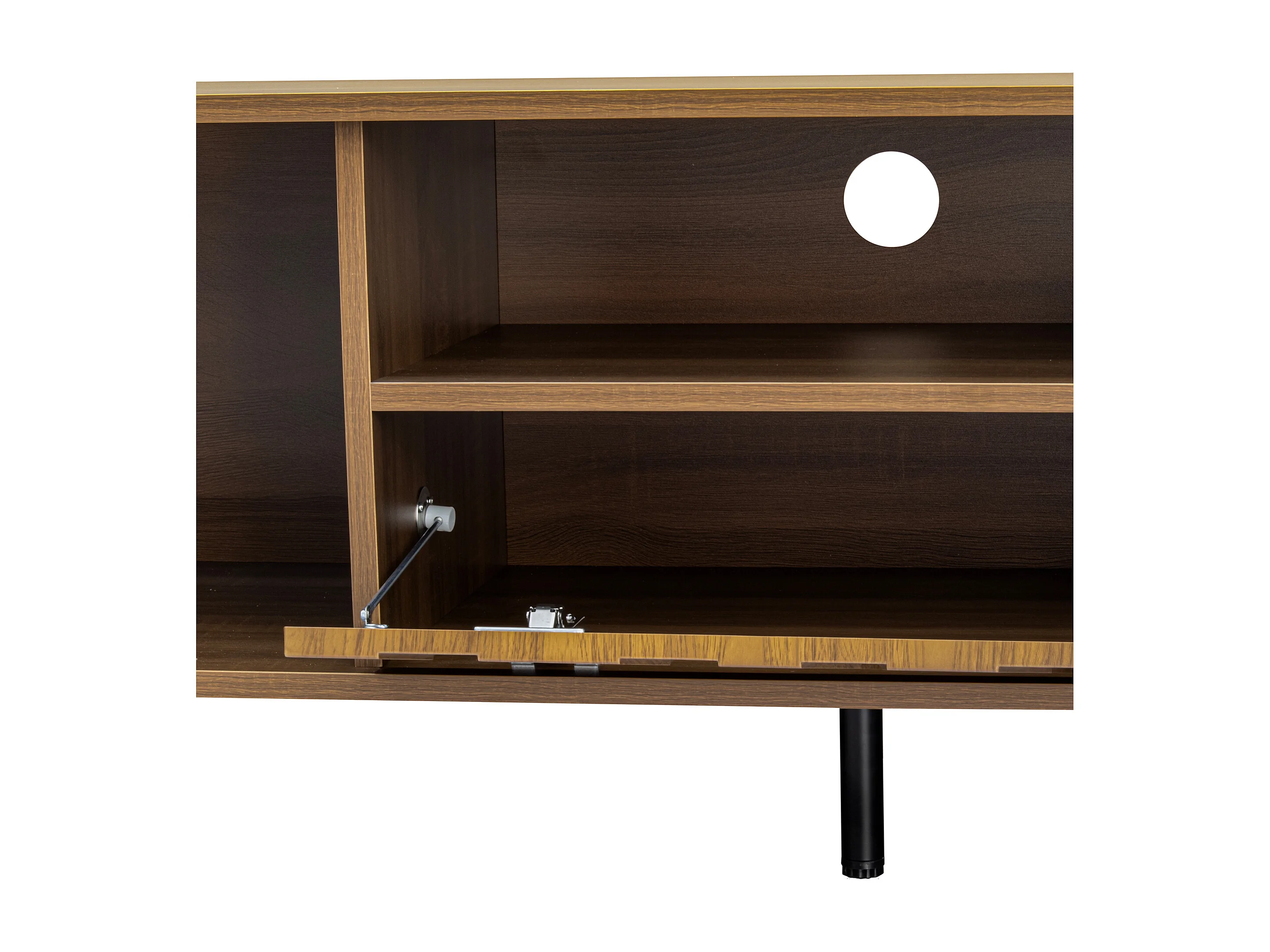 TV-Schrank 160x35x46cm - mit 3 Türen - mit offenem Stauraum - Eisenfüße - MDF - Natur