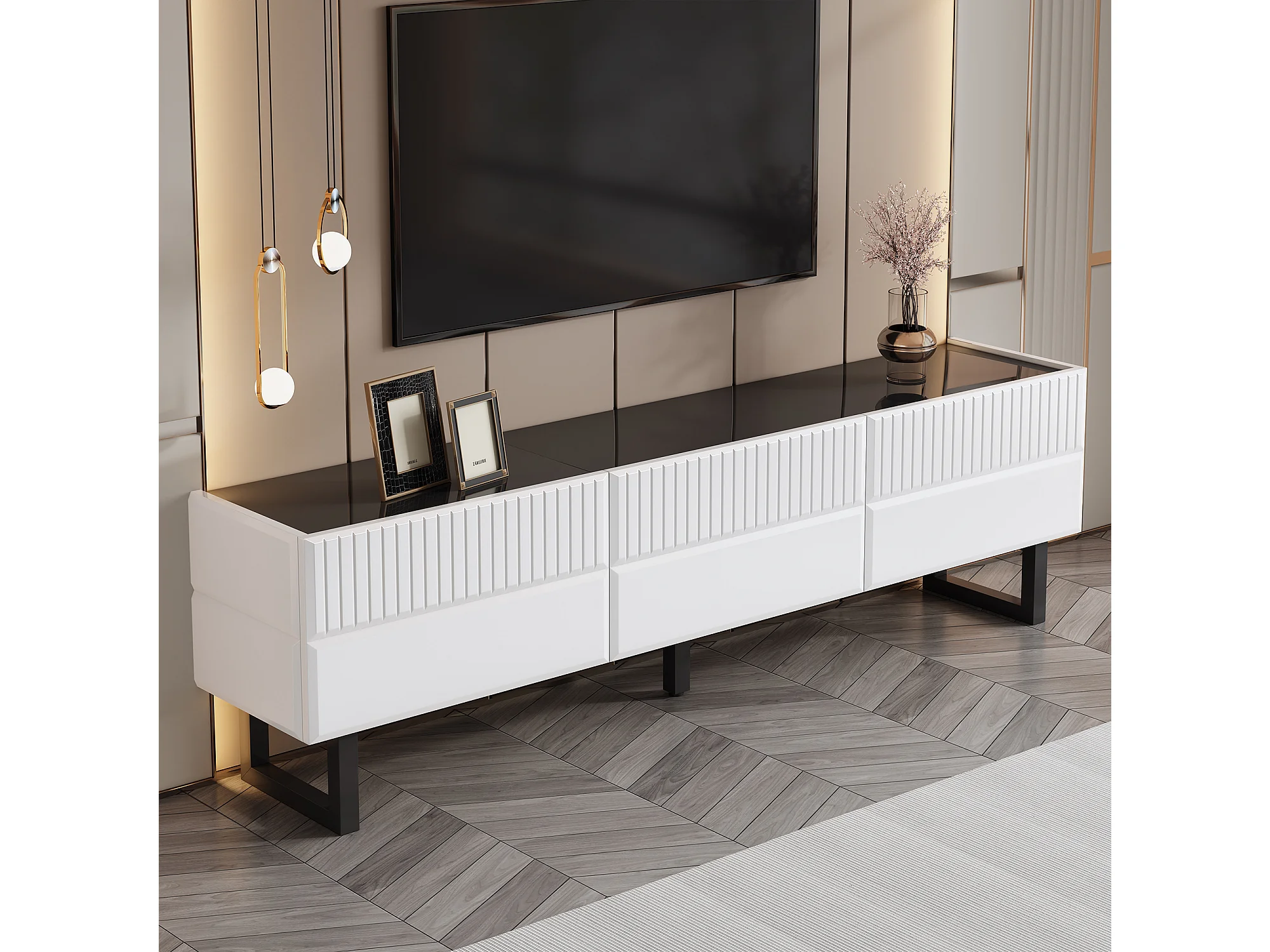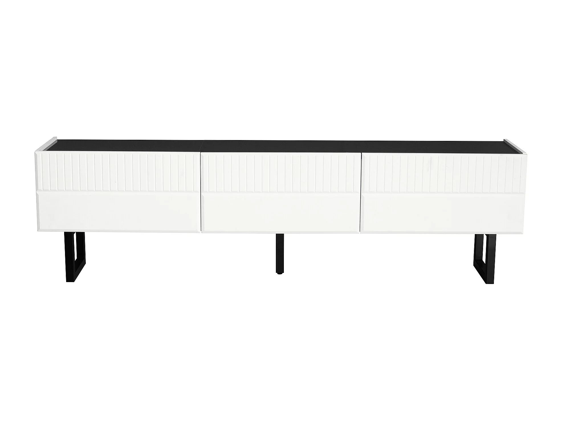 TV-Schrank 170x35x47cm - mit 3 Schubladen - Hochglanzlackierte Platte - Eisenfüße - MDF - Weiß und schwarz