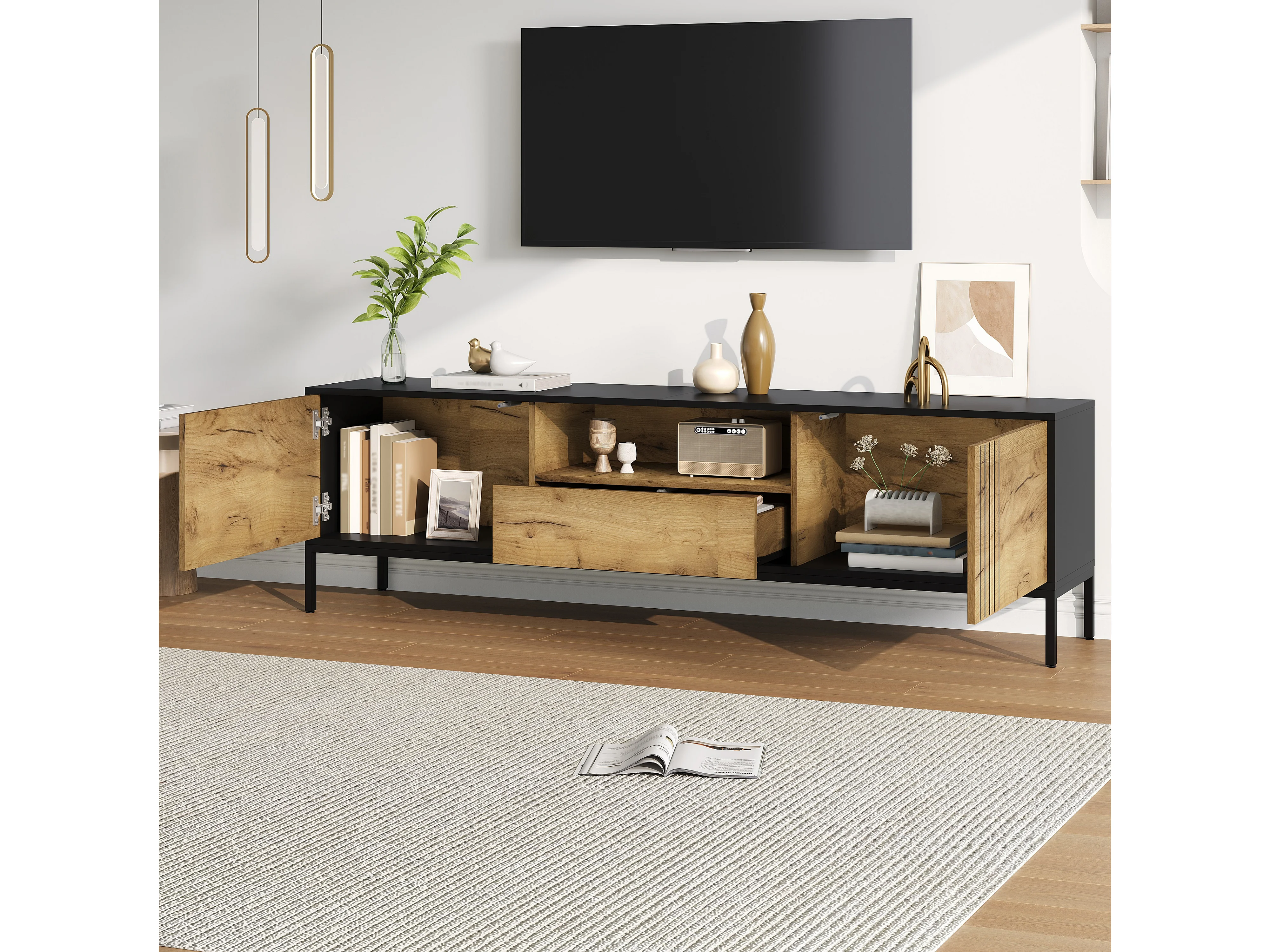 TV-Schrank 170x35x50 cm - 2 Türen und 1 Schublade - TV bis zu 70 Zoll - Spanplatten - Natur und Schwarz