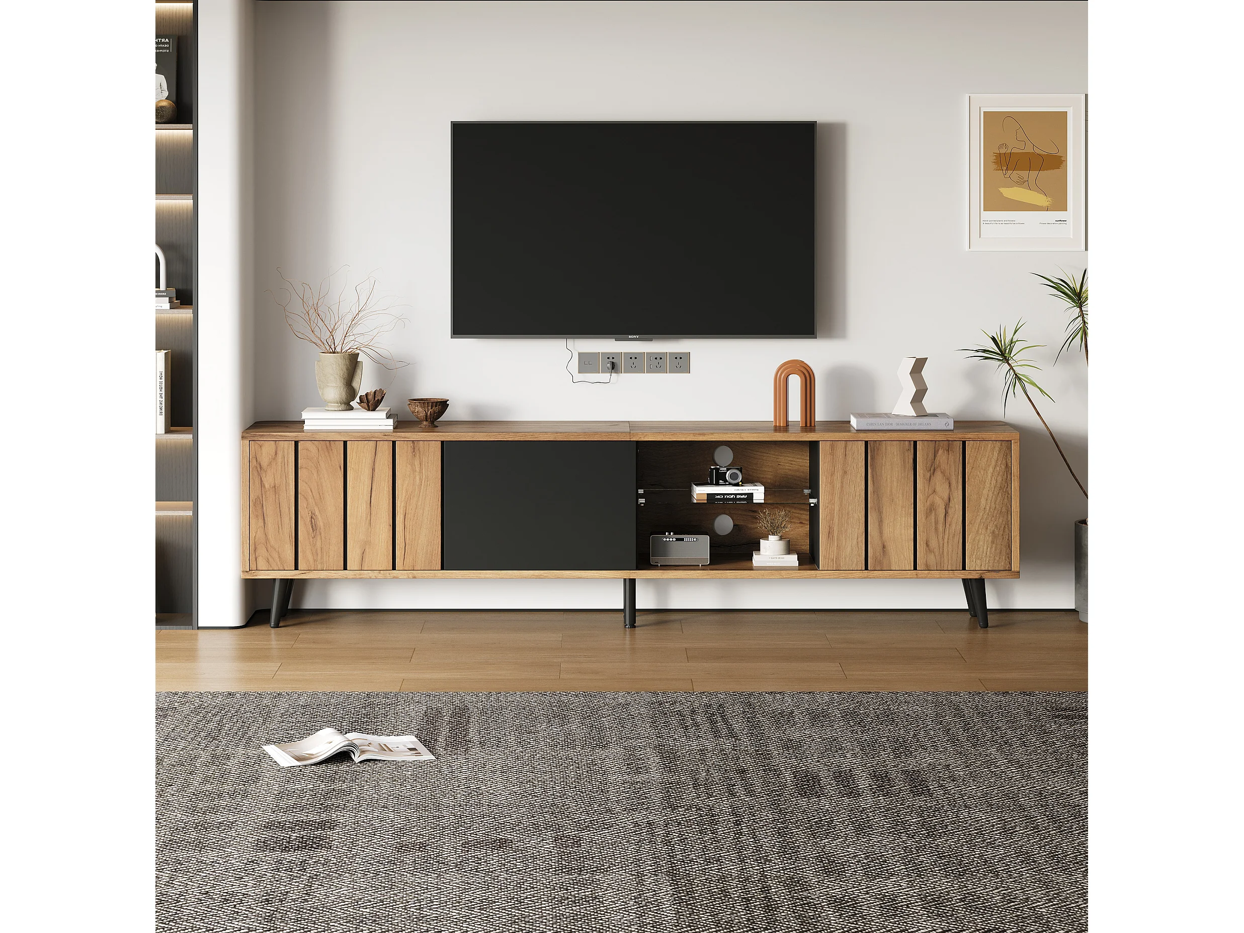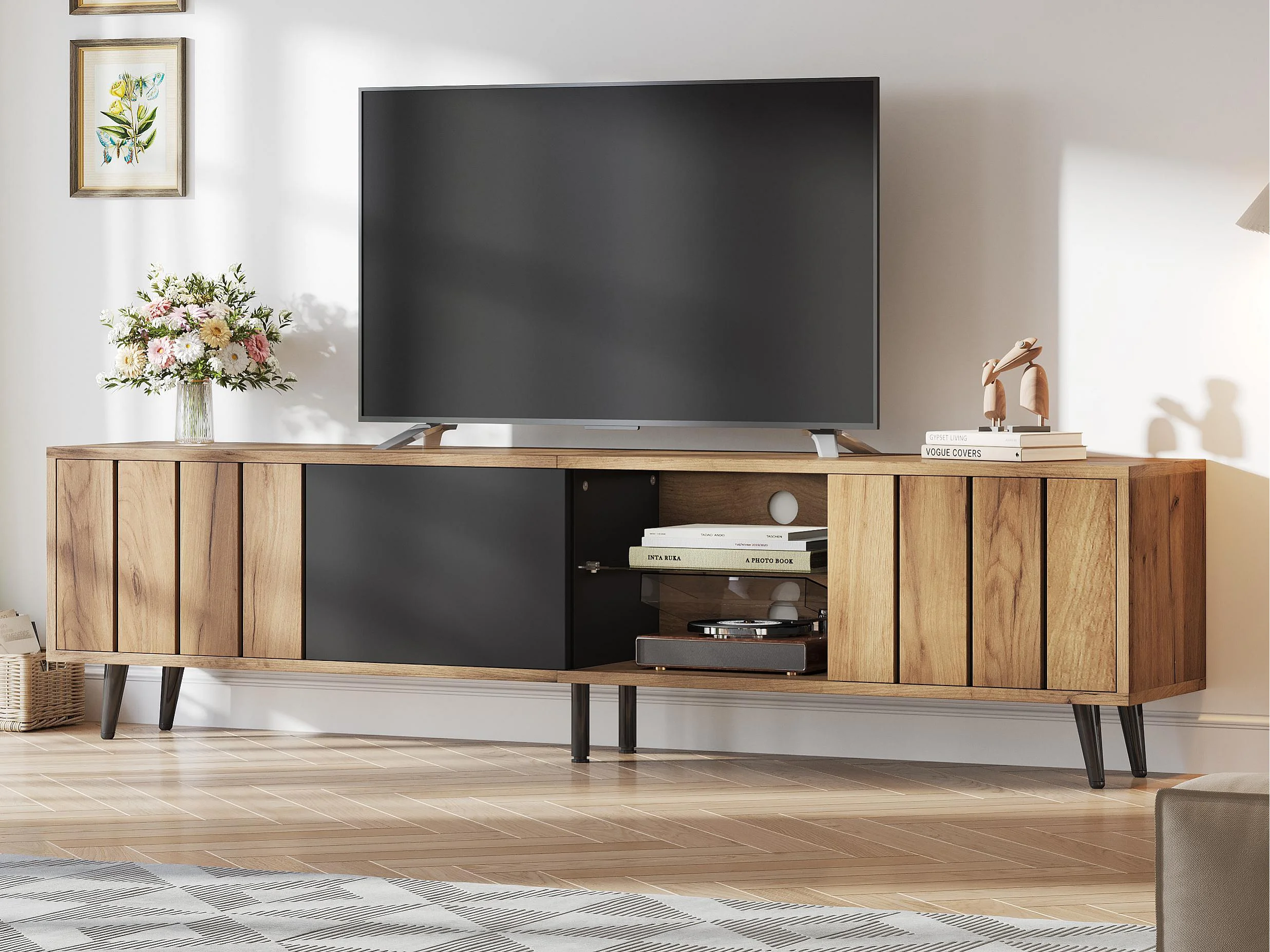 TV-Schrank 175×31,5×45 cm - 3 Türen - Geeignet für 75-Zoll-Fernseher - natur + schwarz