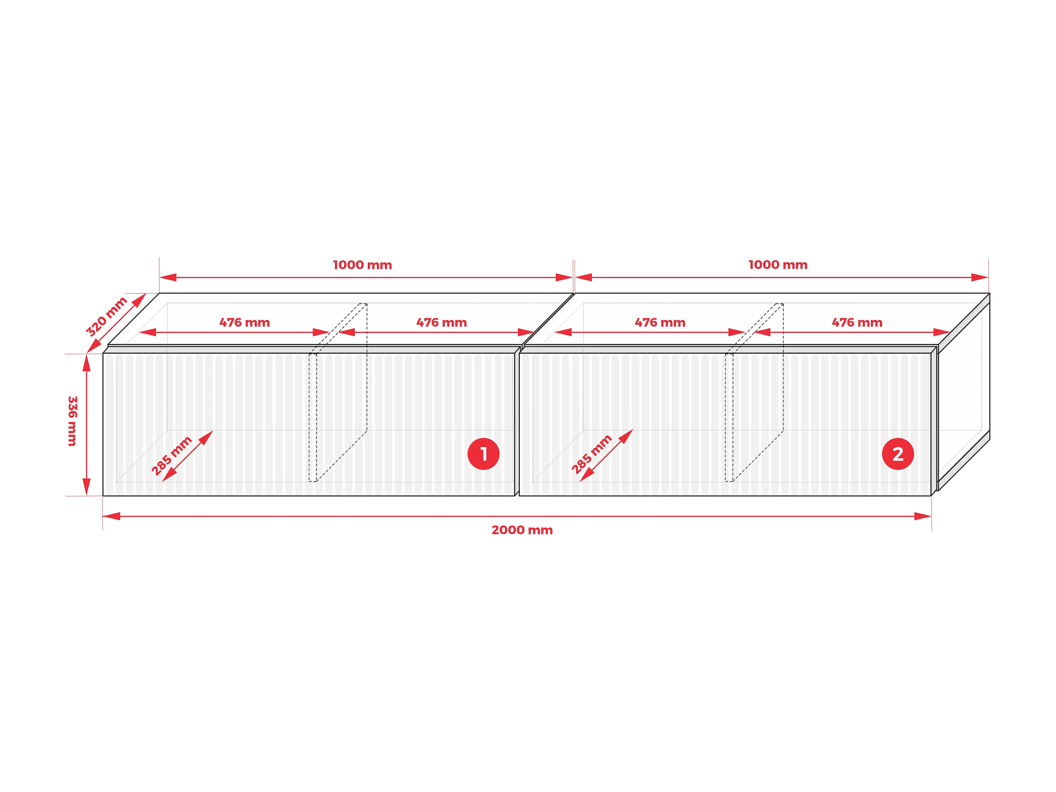 TV-Schrank (2 x 100 cm), geriffelte Fronten, Mattweiß, 200 × 32 × 33,6 cm