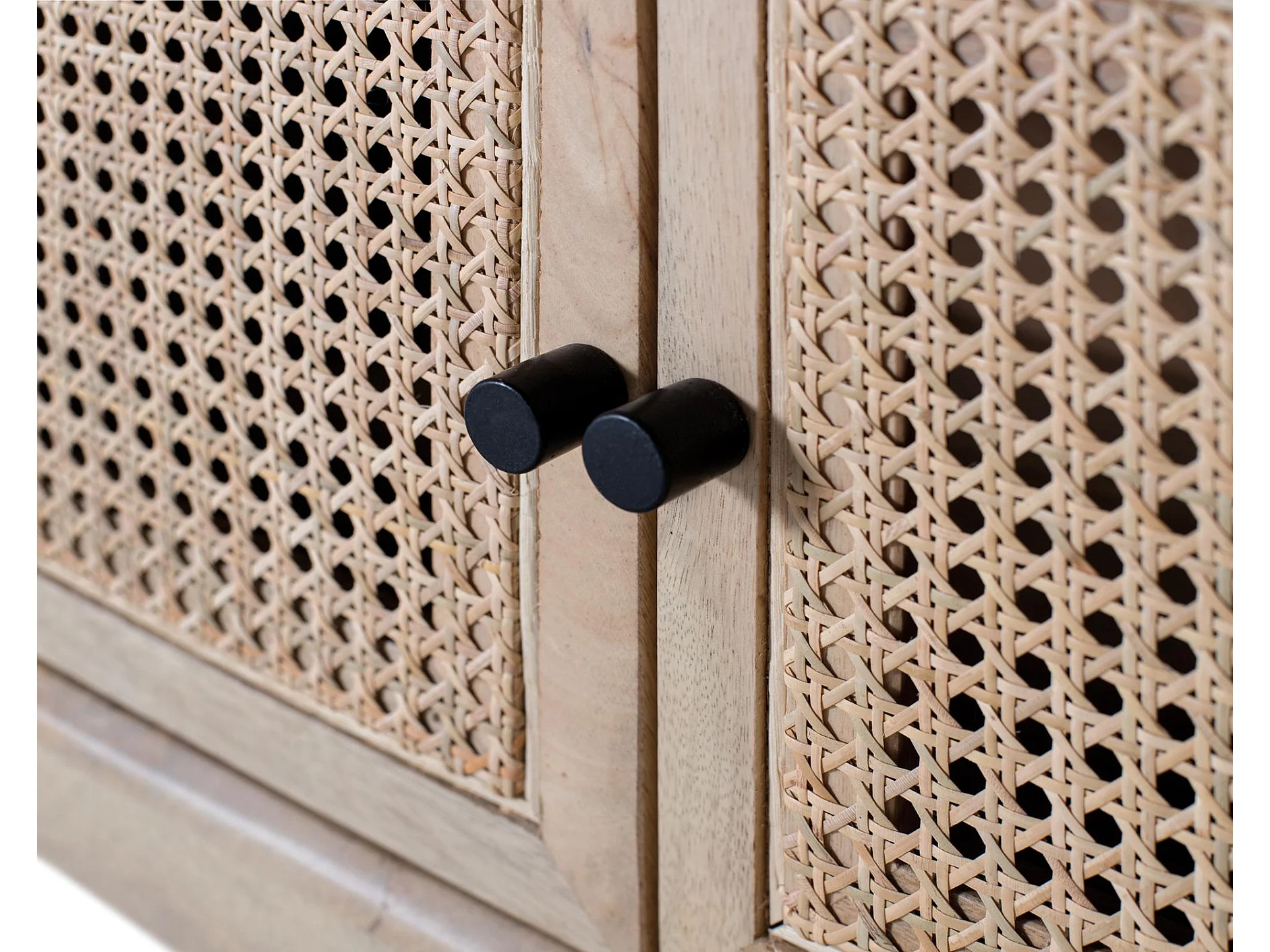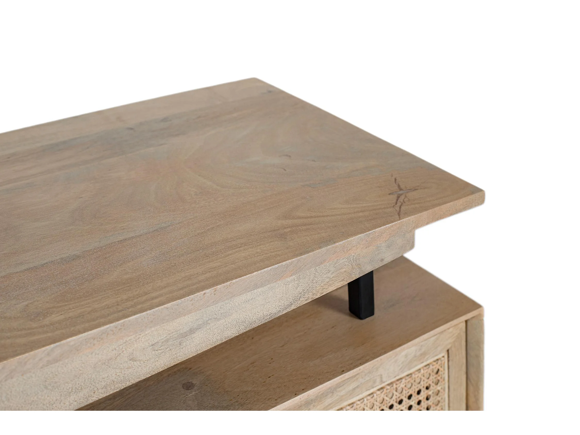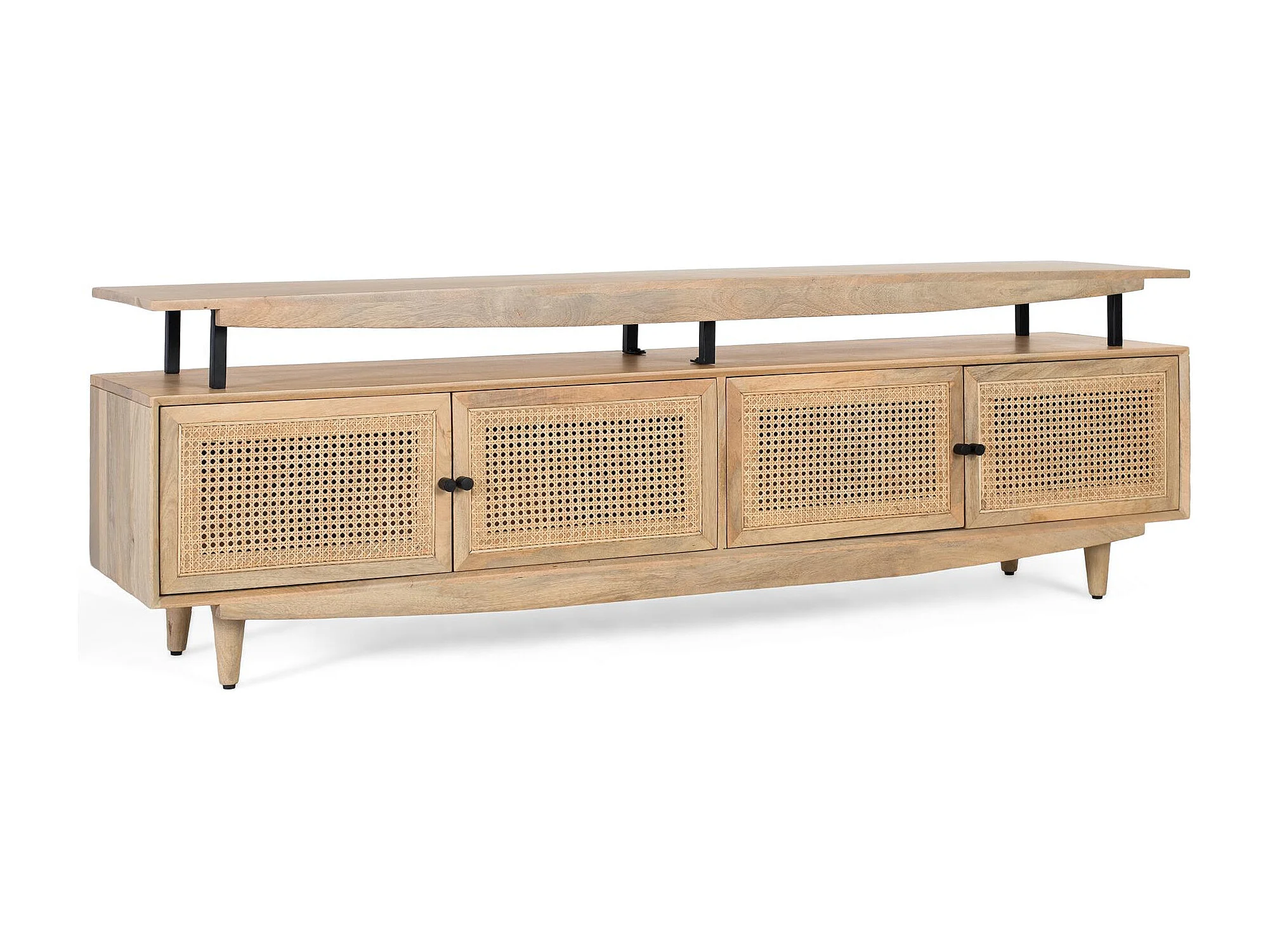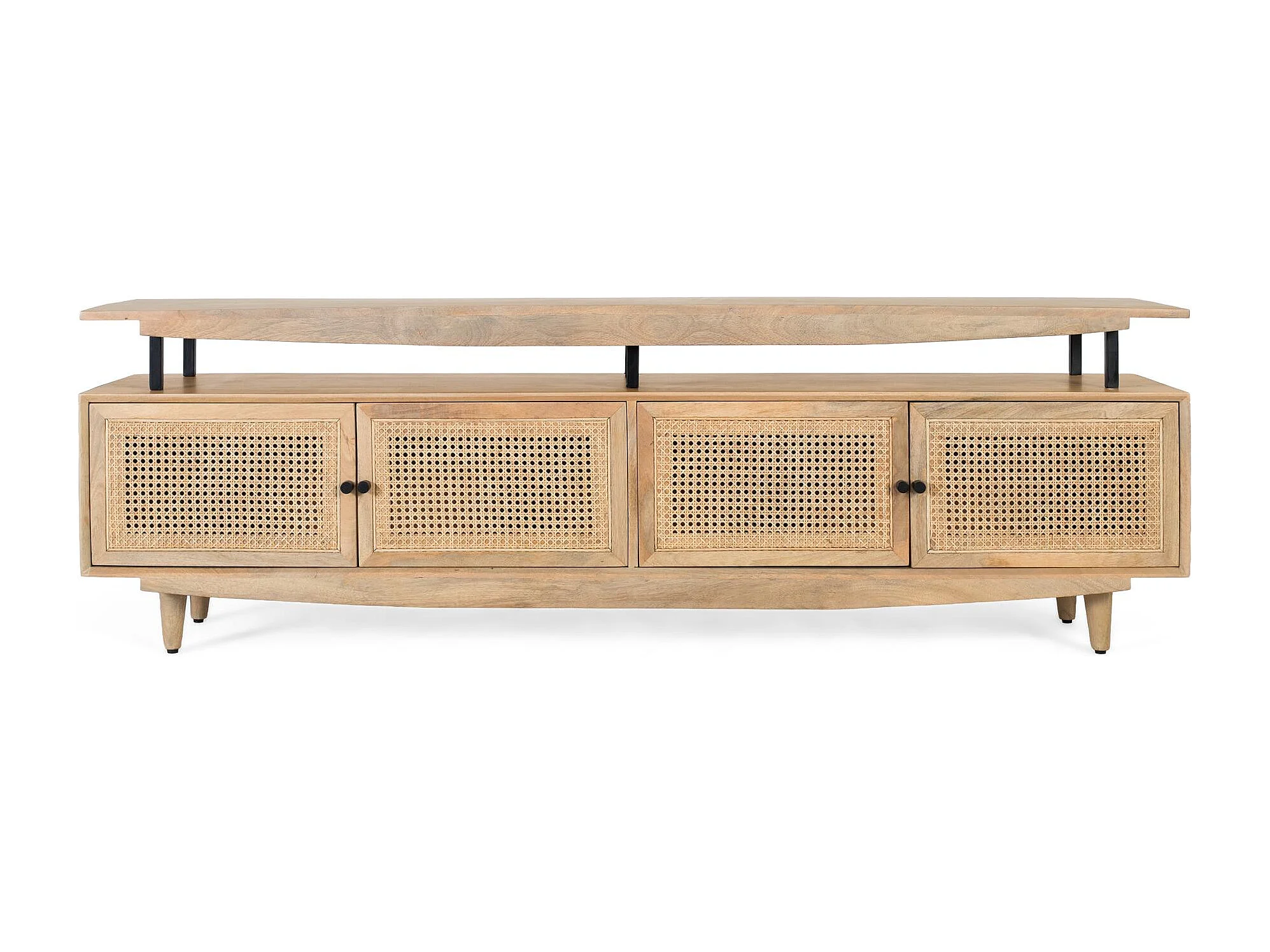 TV-Schrank aus Mangoholz mit 4 gerahmten Türen mit Drahtgeflecht.