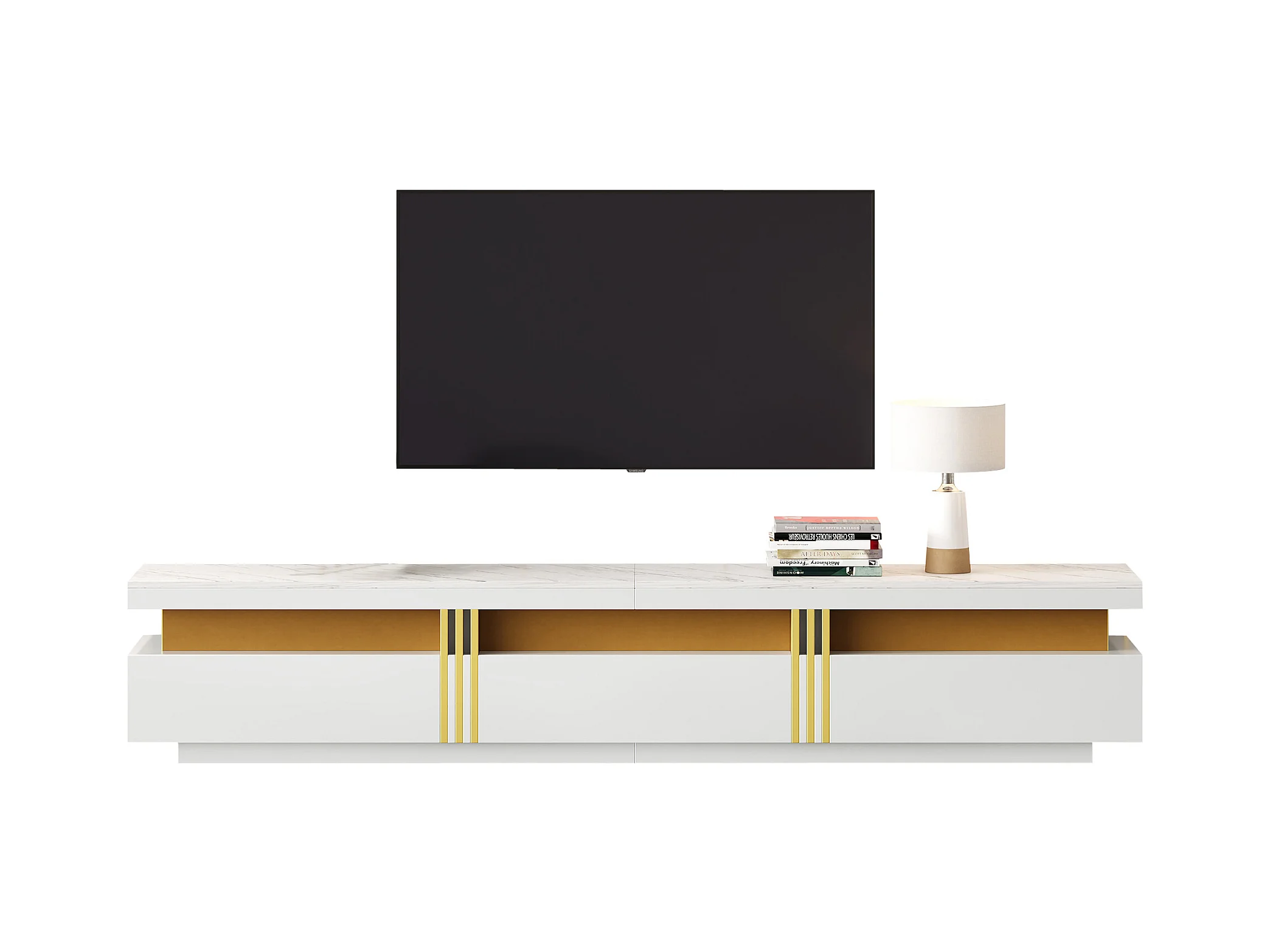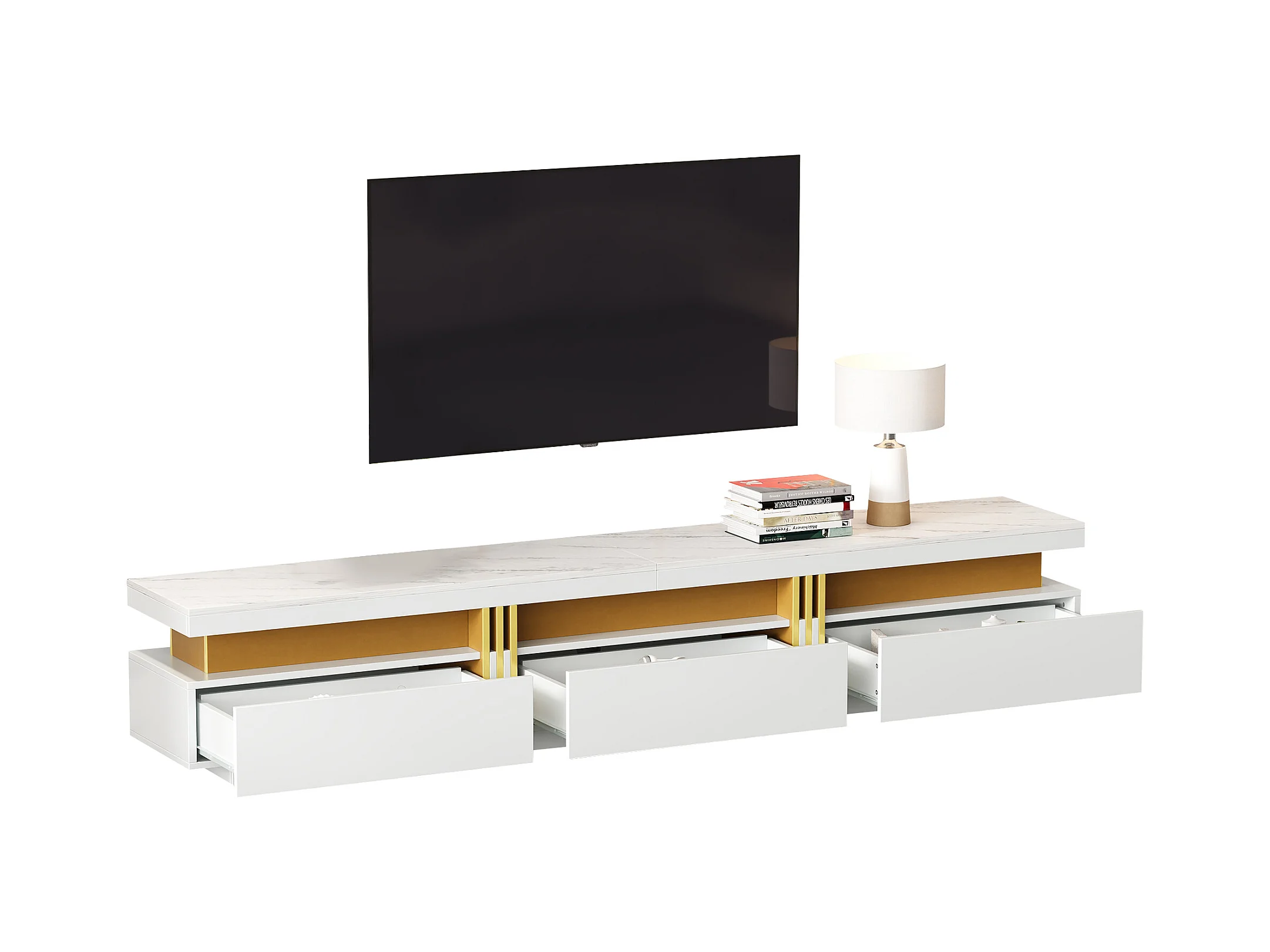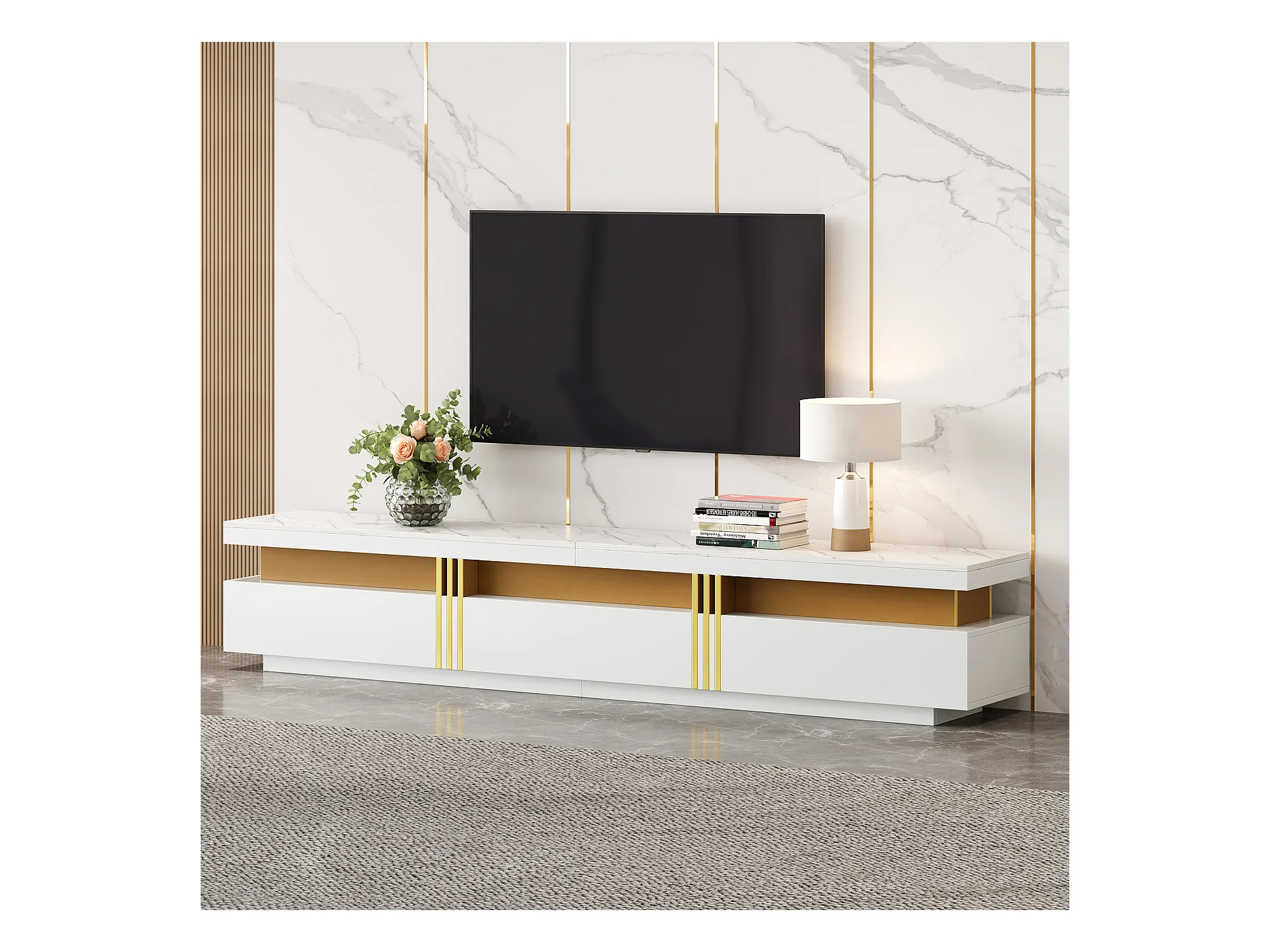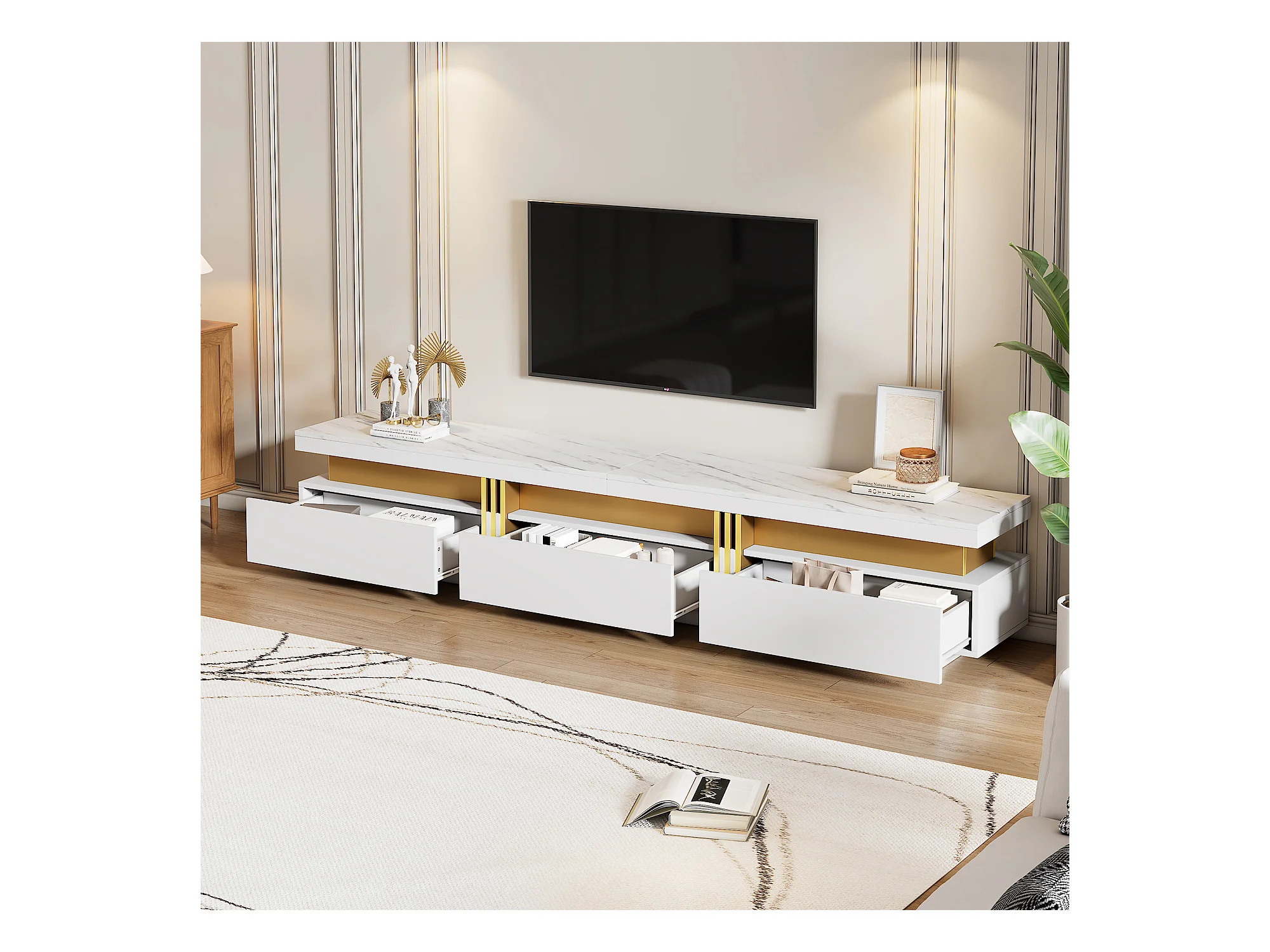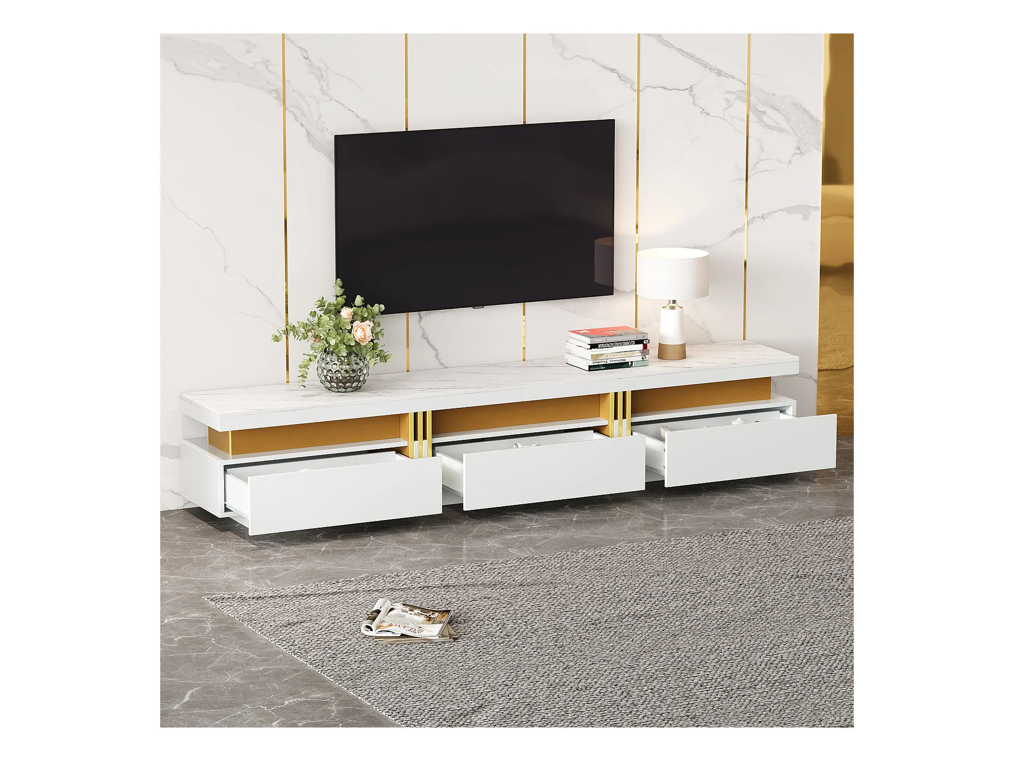 TV-Schrank mit 3 Schubladen – 200 x 40 x 42 cm – Spanplatte – Marmoroptik – Weiß