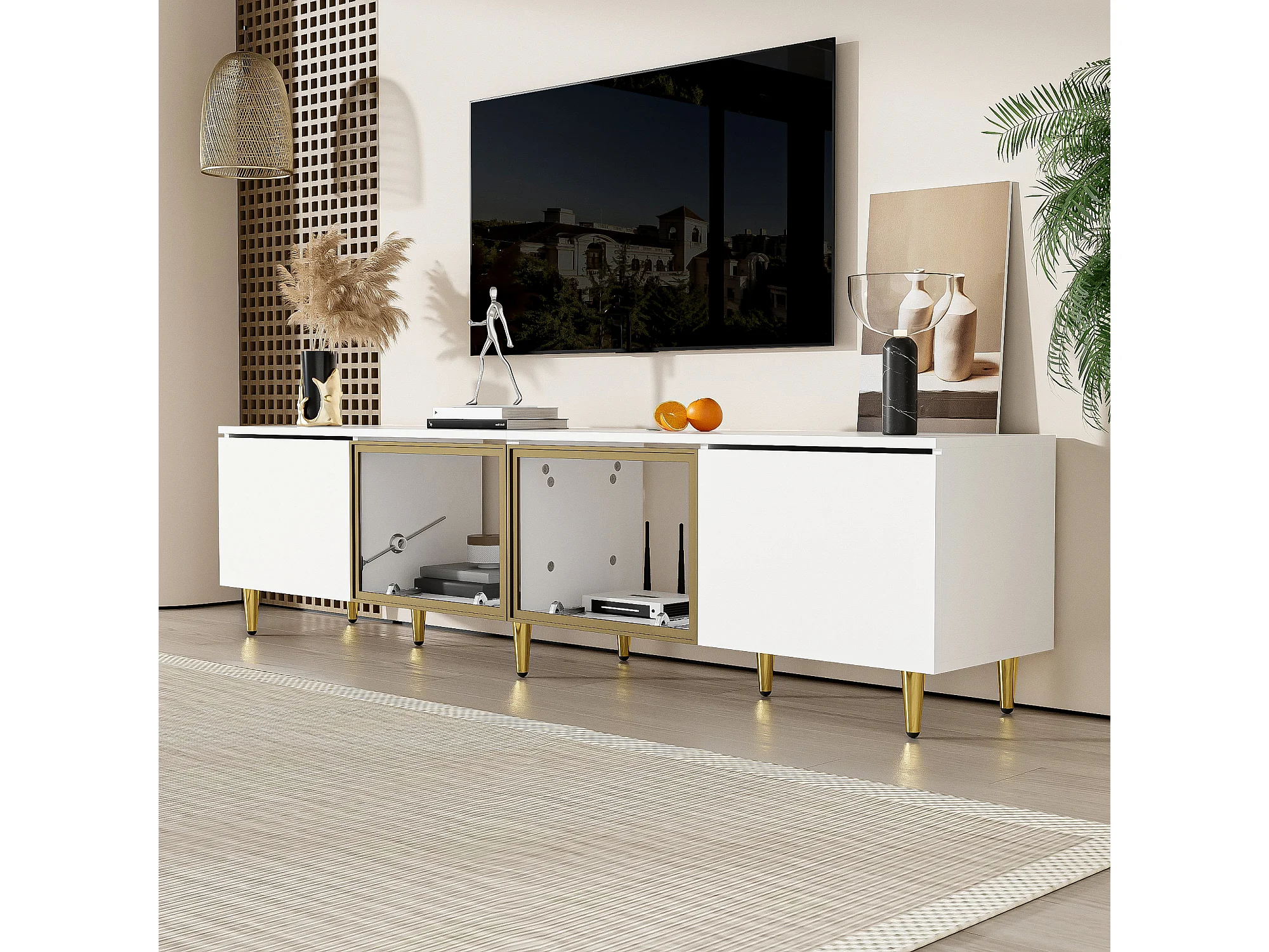 180-cm-TV-Schrank für 80-Zoll-Fernseher – 2 Türen und 2 Schubladen – Weiß