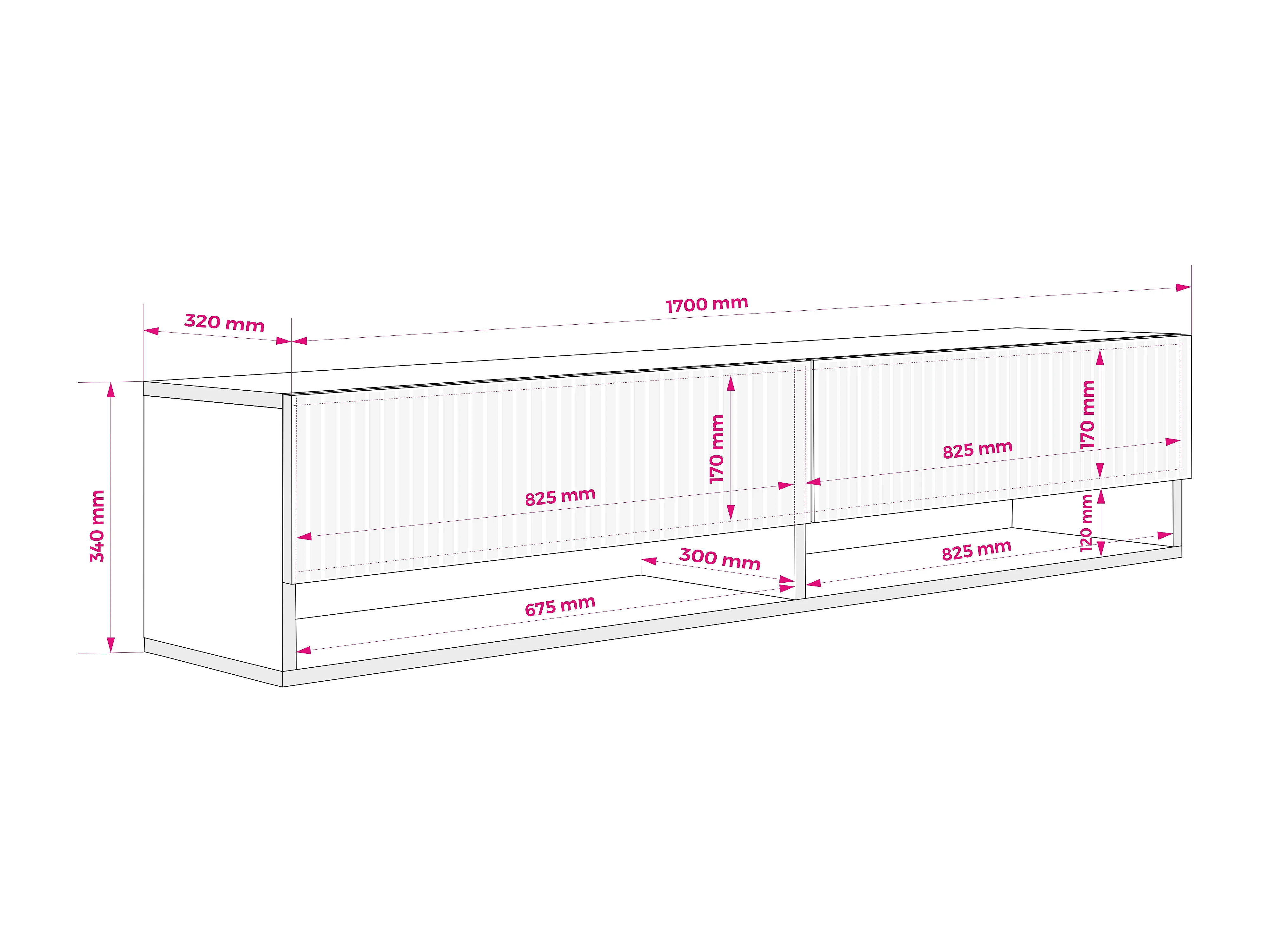 TV-Schrank mit geriffelte Fronten, Eiche Craft, 170 × 32 × 33,6 cm