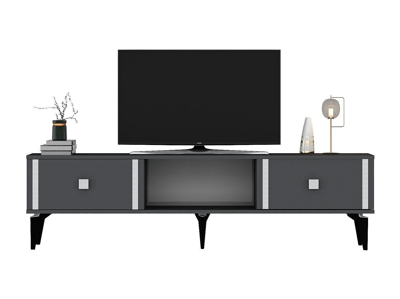 TV-Ständer – 150 cm – Anthrazit und Silber – Holz