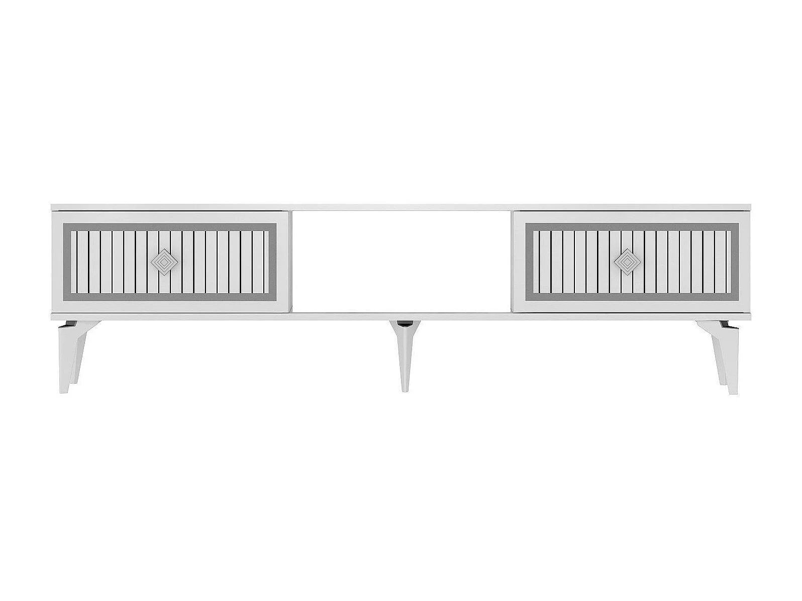 TV-Ständer – 150 cm x 44,6 cm x 29,6 cm – Weiß und Silber – Melaminbeschichtete Spanplatte