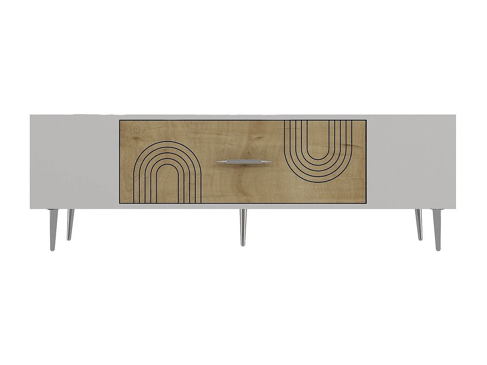 TV-Ständer – 150 cm x 48,2 cm x 29,6 cm – Saphir-Eiche, Weiß, Silber – Melaminbeschichtete Spanplatte