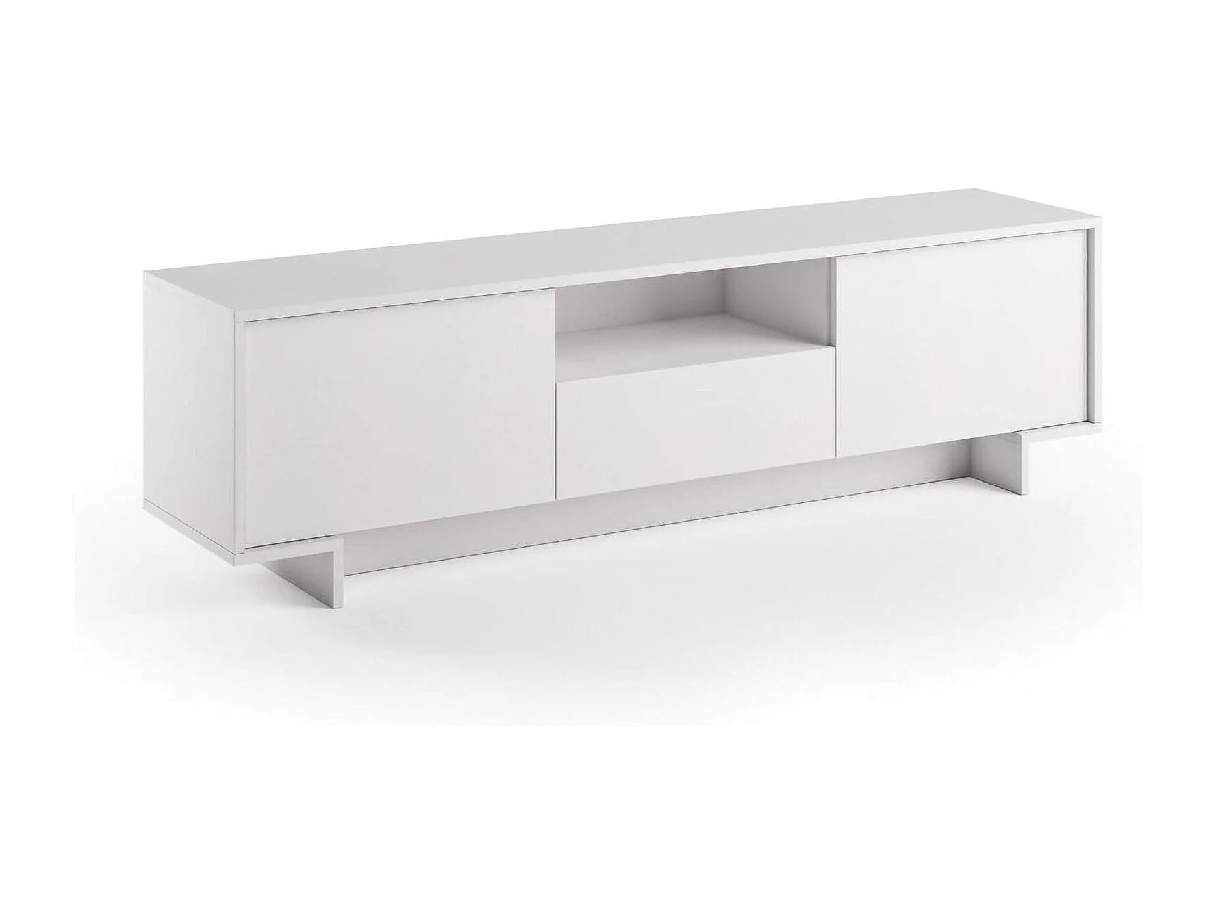 TV-Ständer Darrighin, TV-Ständer für das Wohnzimmer, niedriges Wohnzimmer-Sideboard mit 2 Türen und 1 Schublade, 100 % Made in Italy, 170 x 42 x 48 cm, Weiß
