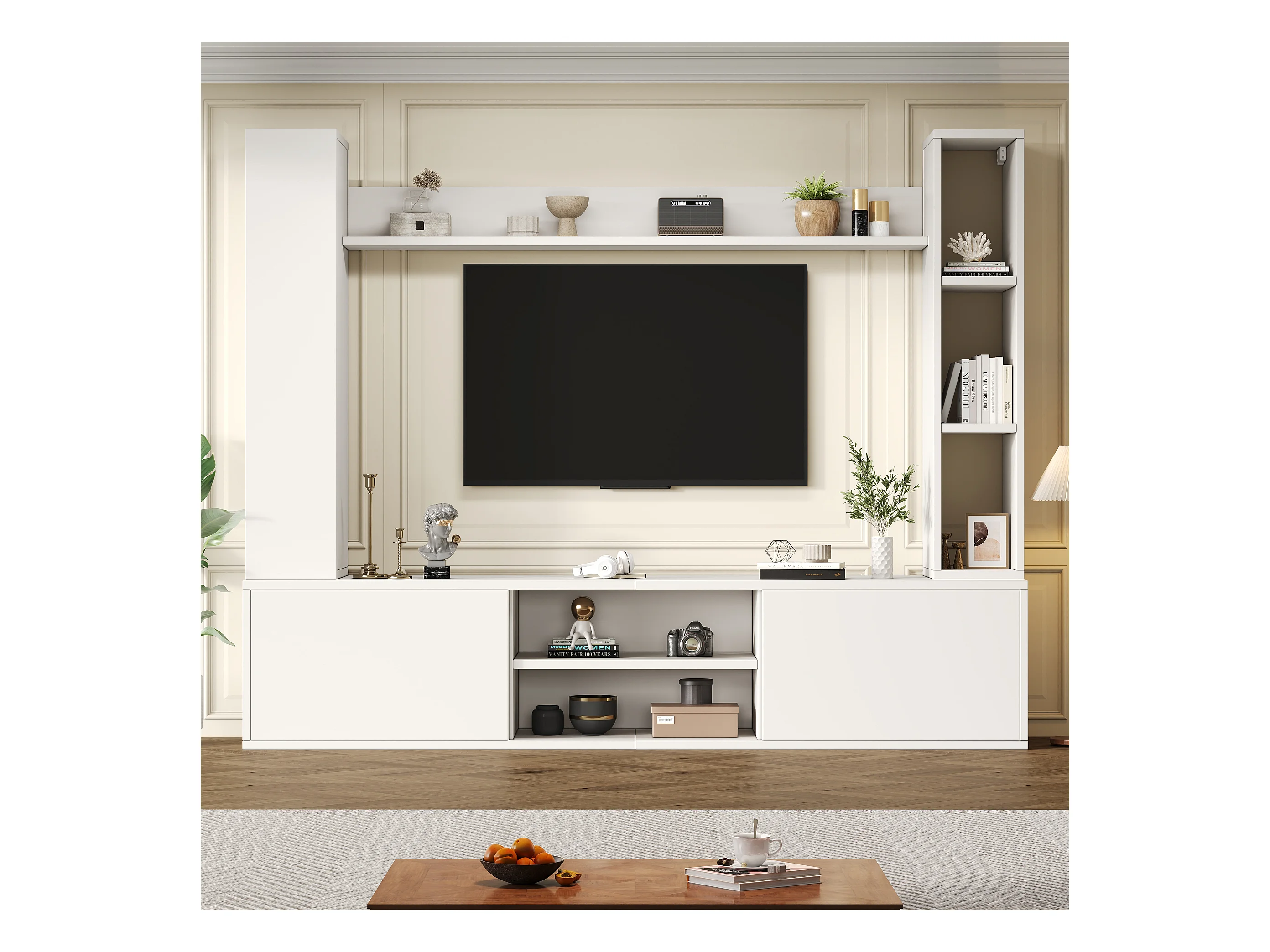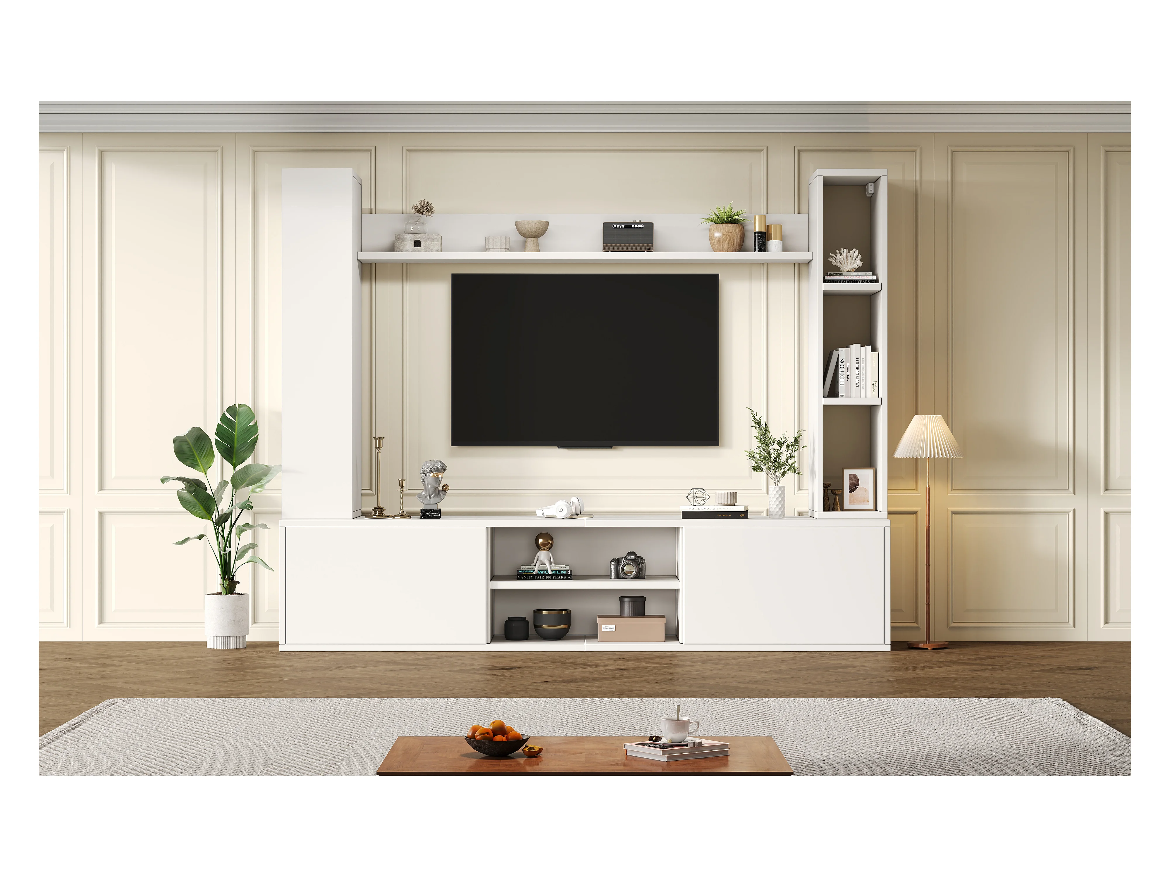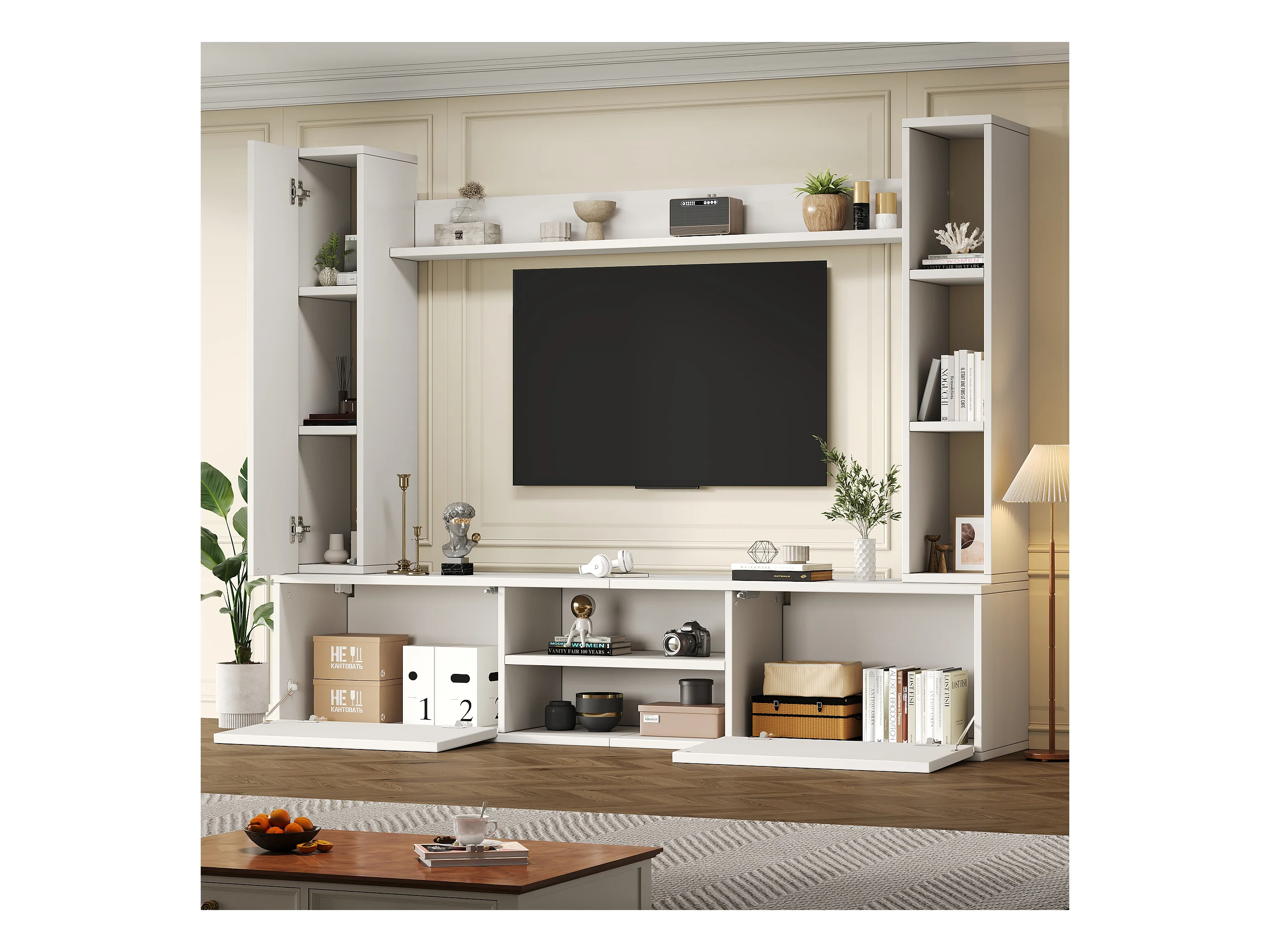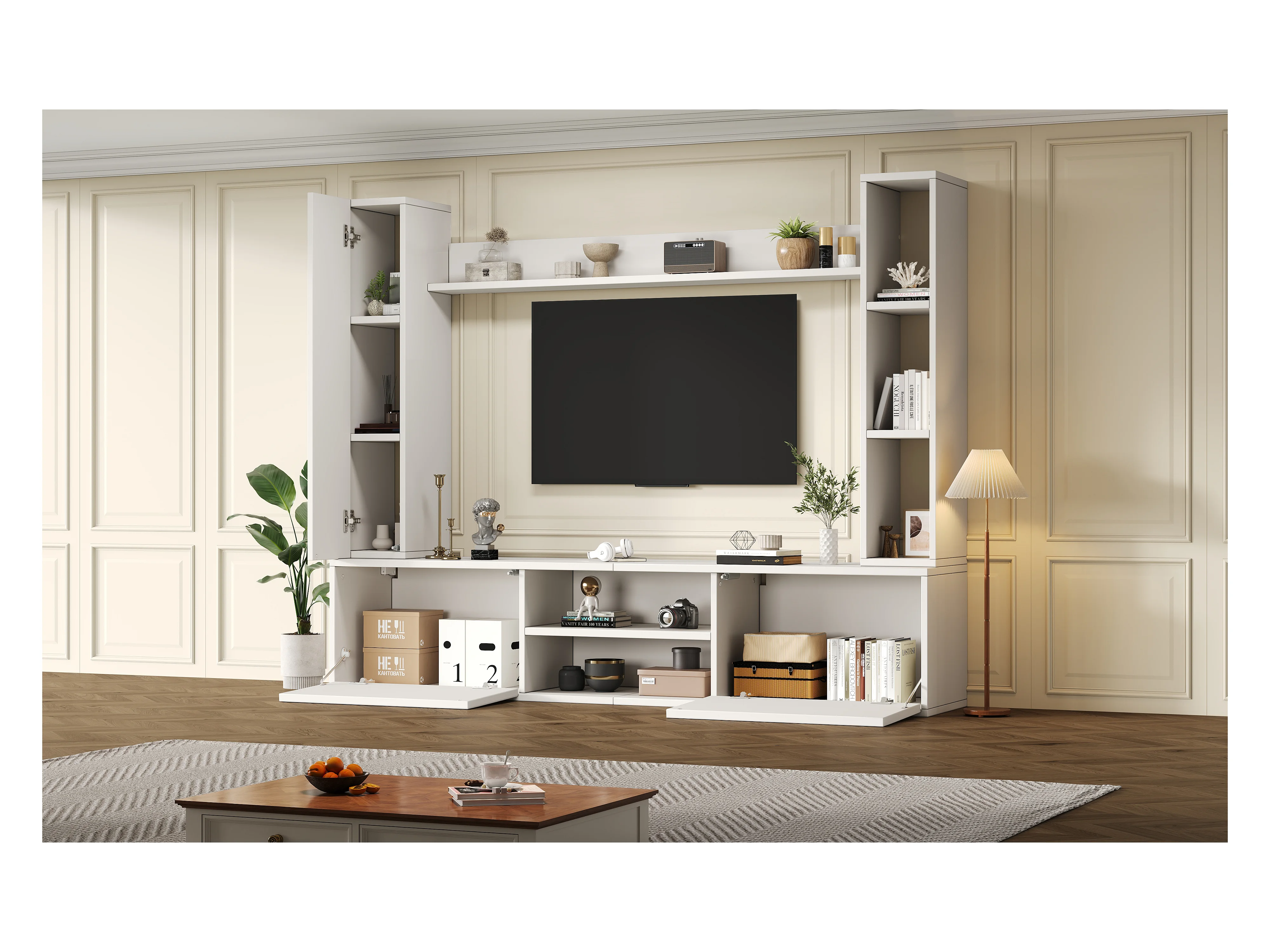 TV-Wandschrank-Set - 180 x 35 x 123,5 cm - mit Standregal und 2 Wandregalen - Spanplatte - Weiß