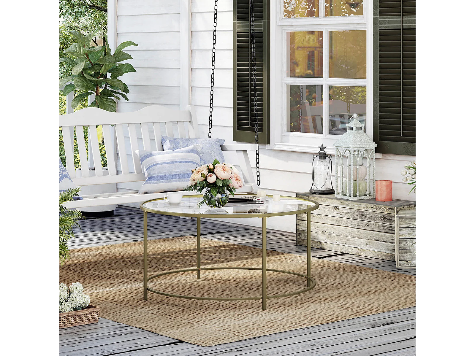 VASAGLE Runder Couchtisch, Glastisch mit Stahlgestell, Wohnzimmertisch, Sofatisch, gehärtetes Glas, Gold LGT21G