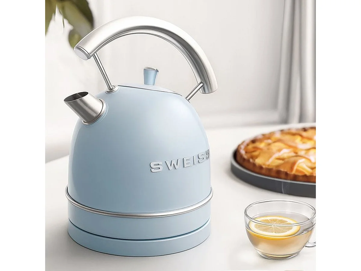 Vintage elektrischer Wasserkocher SWEISS KTL6 1,8 L mattblauer Edelstahl, 2200 W, abnehmbare 360° drehbare Basis