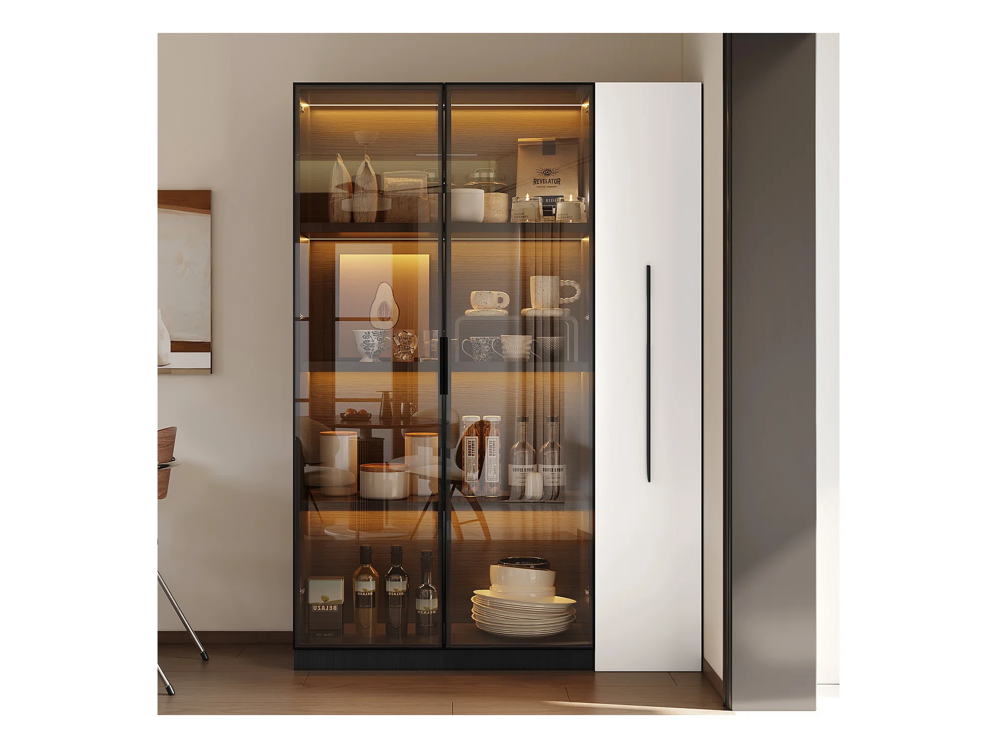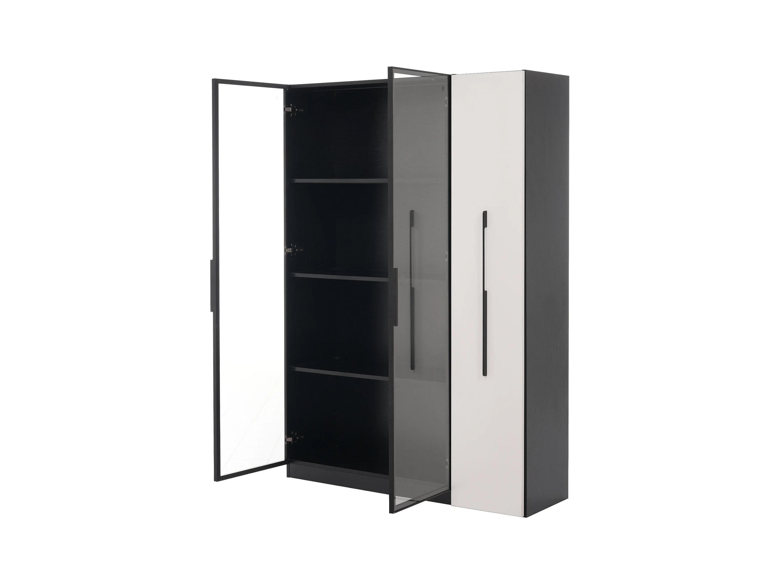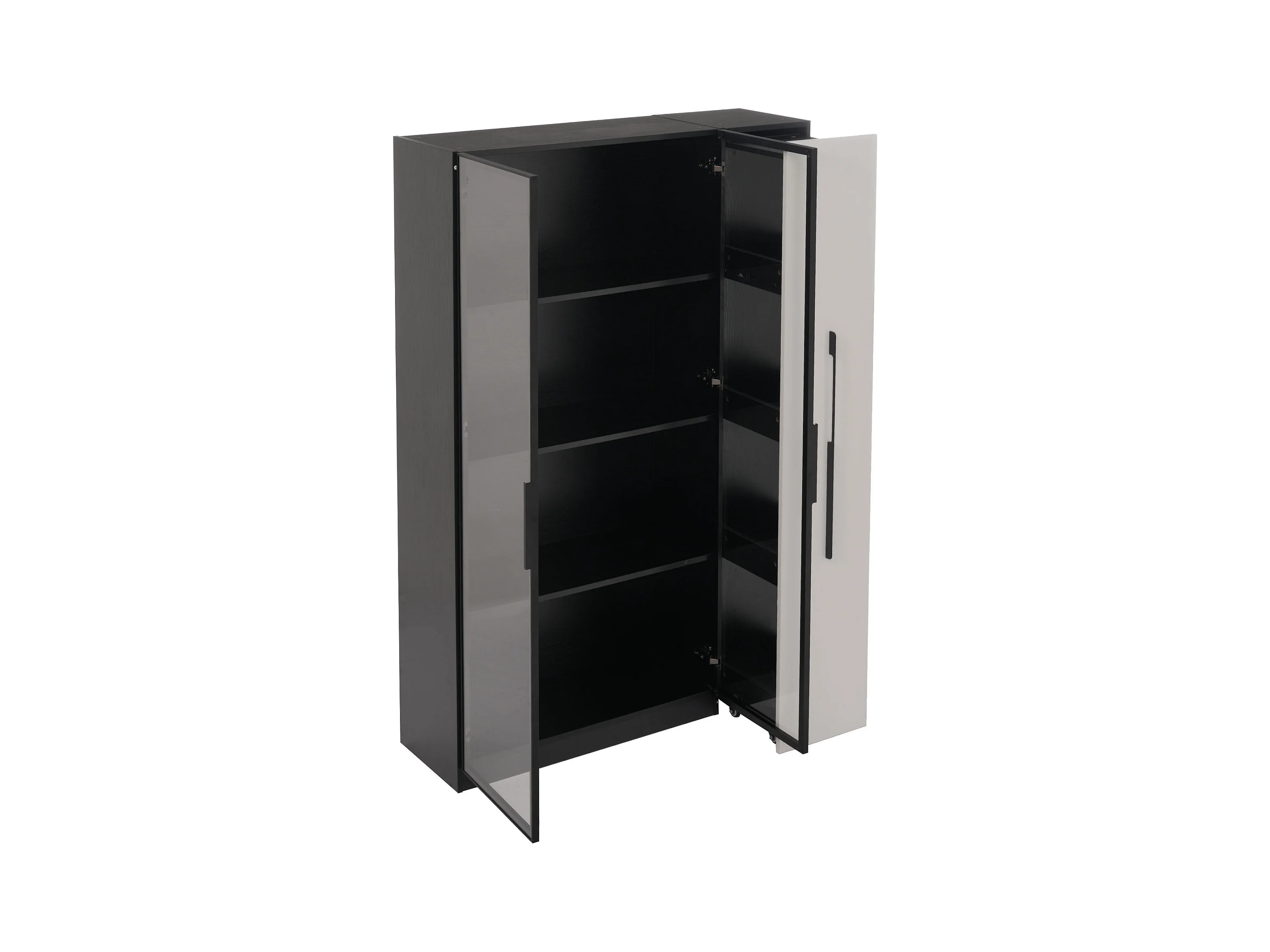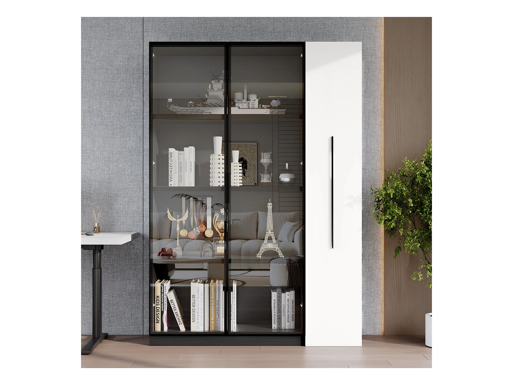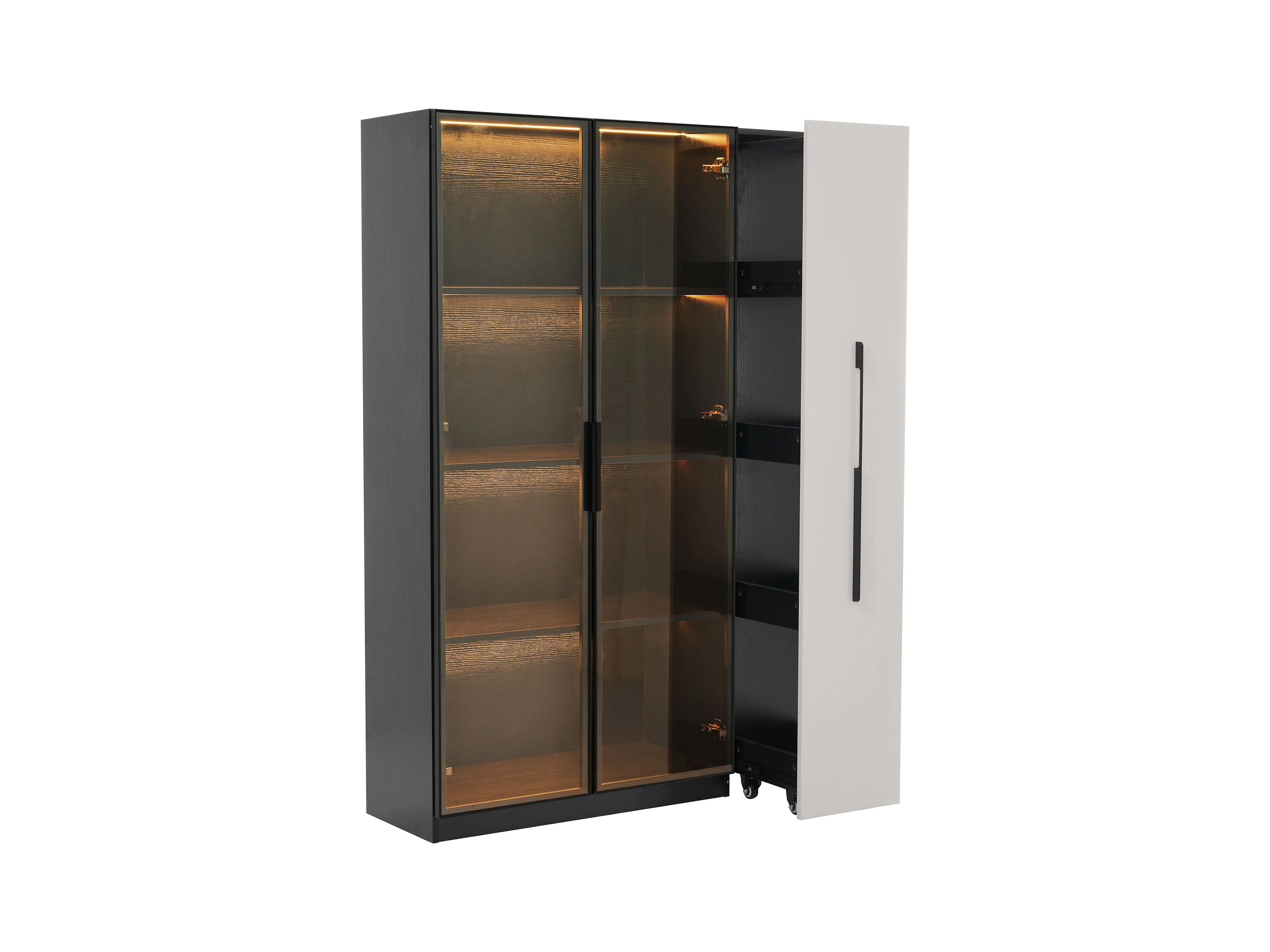 Vitrine 110,5×35×160 cm - mit 2 Glastüren - 1 Seiten-Schublade - mit LED-Beleuchtung - schwarz + weiß