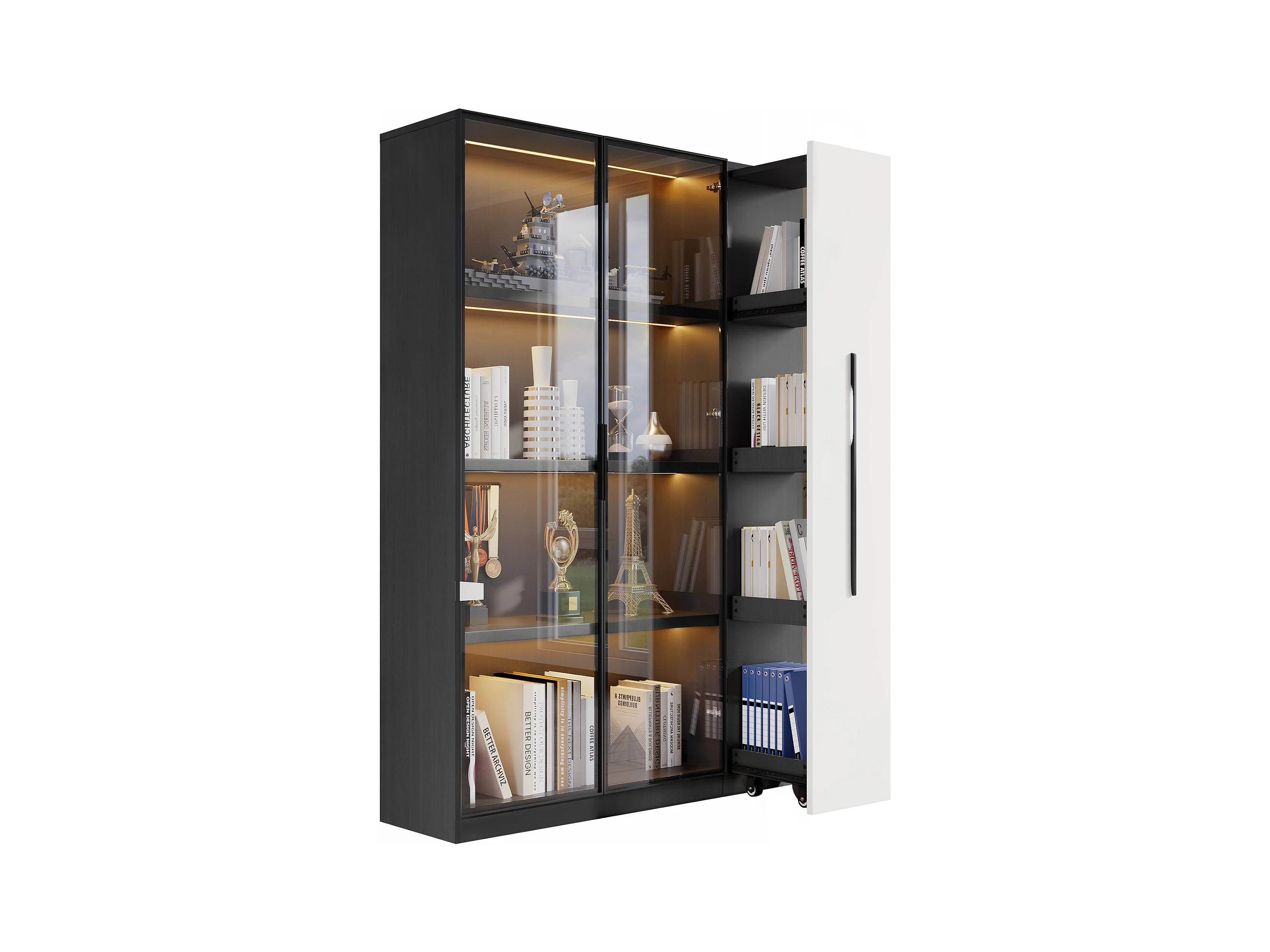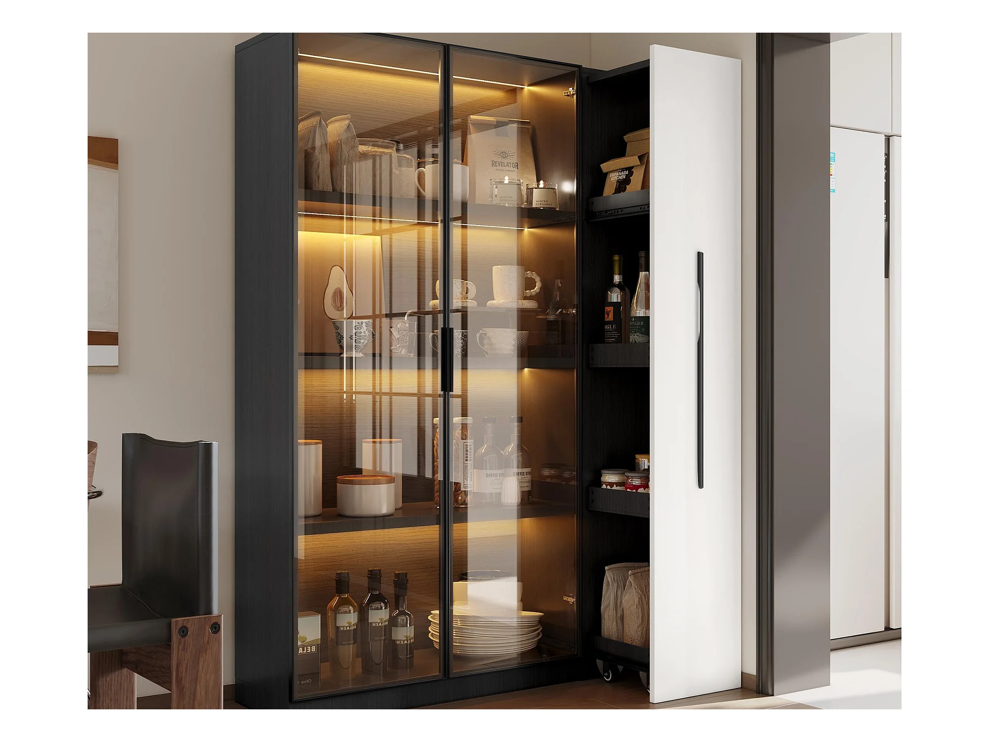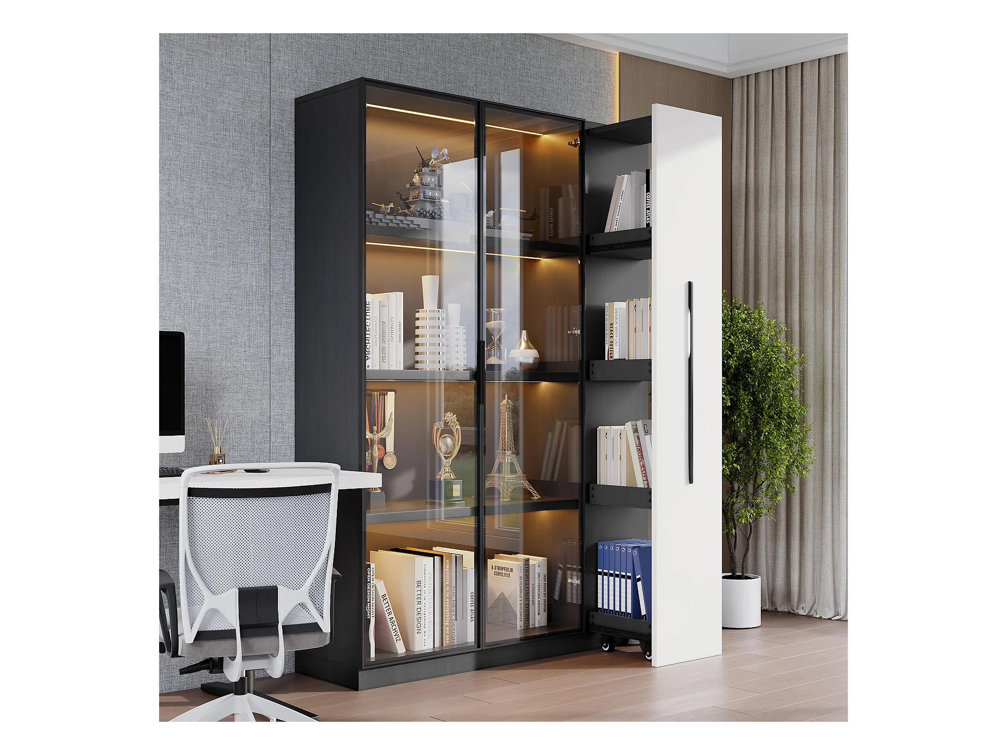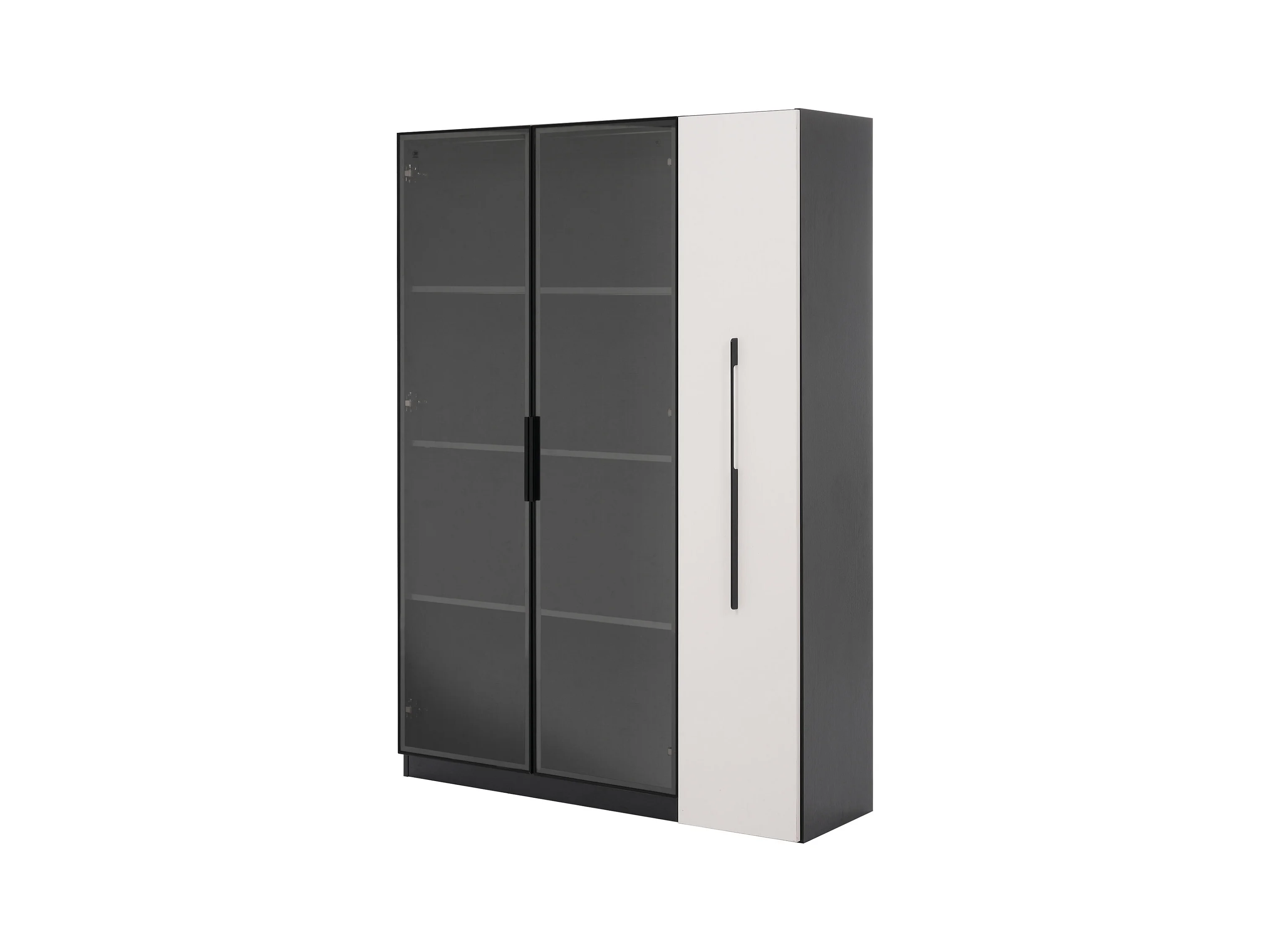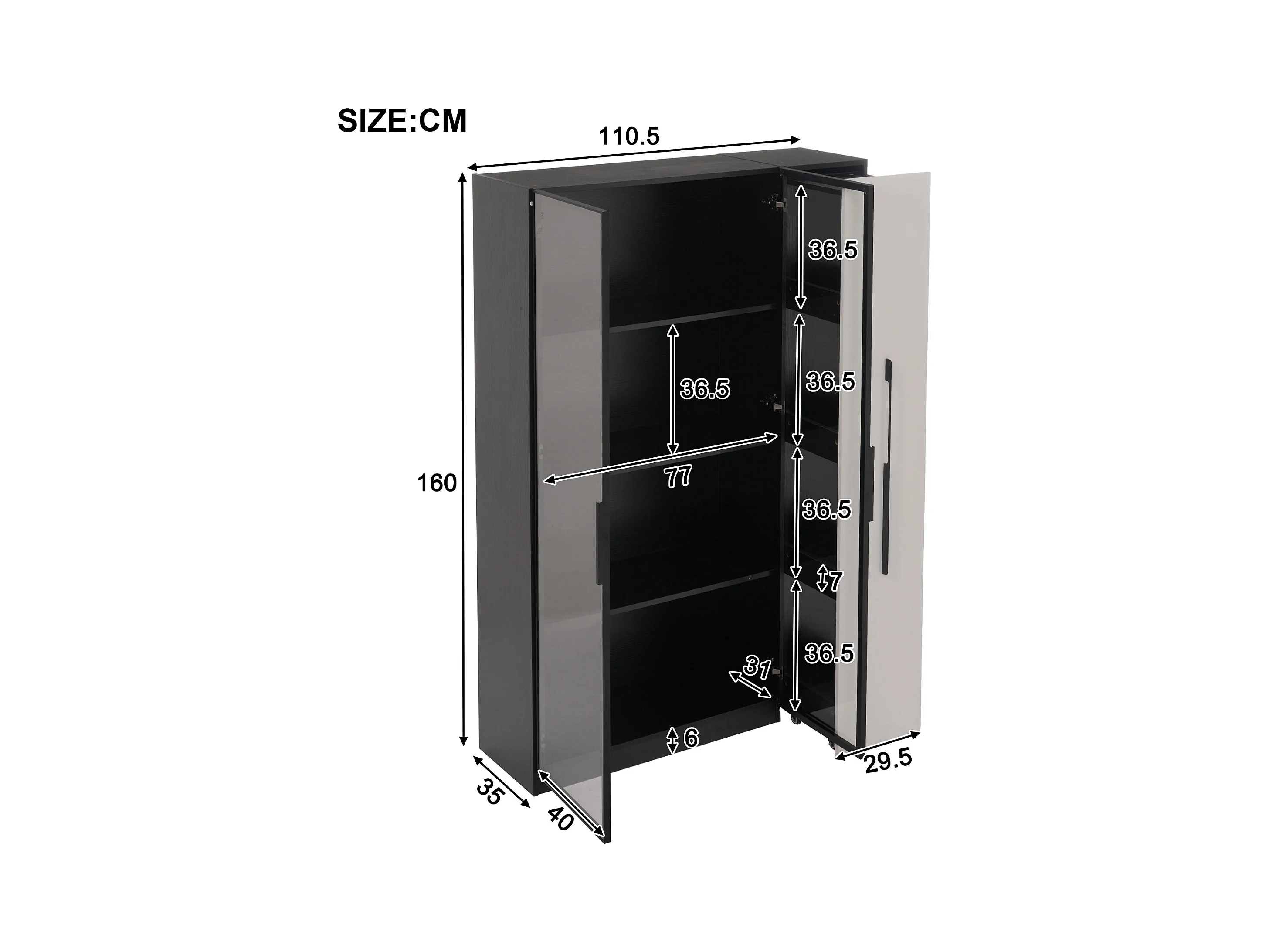 Vitrine 110,5×35×160 cm - mit 2 Glastüren - 1 Seiten-Schublade - mit LED-Beleuchtung - schwarz + weiß