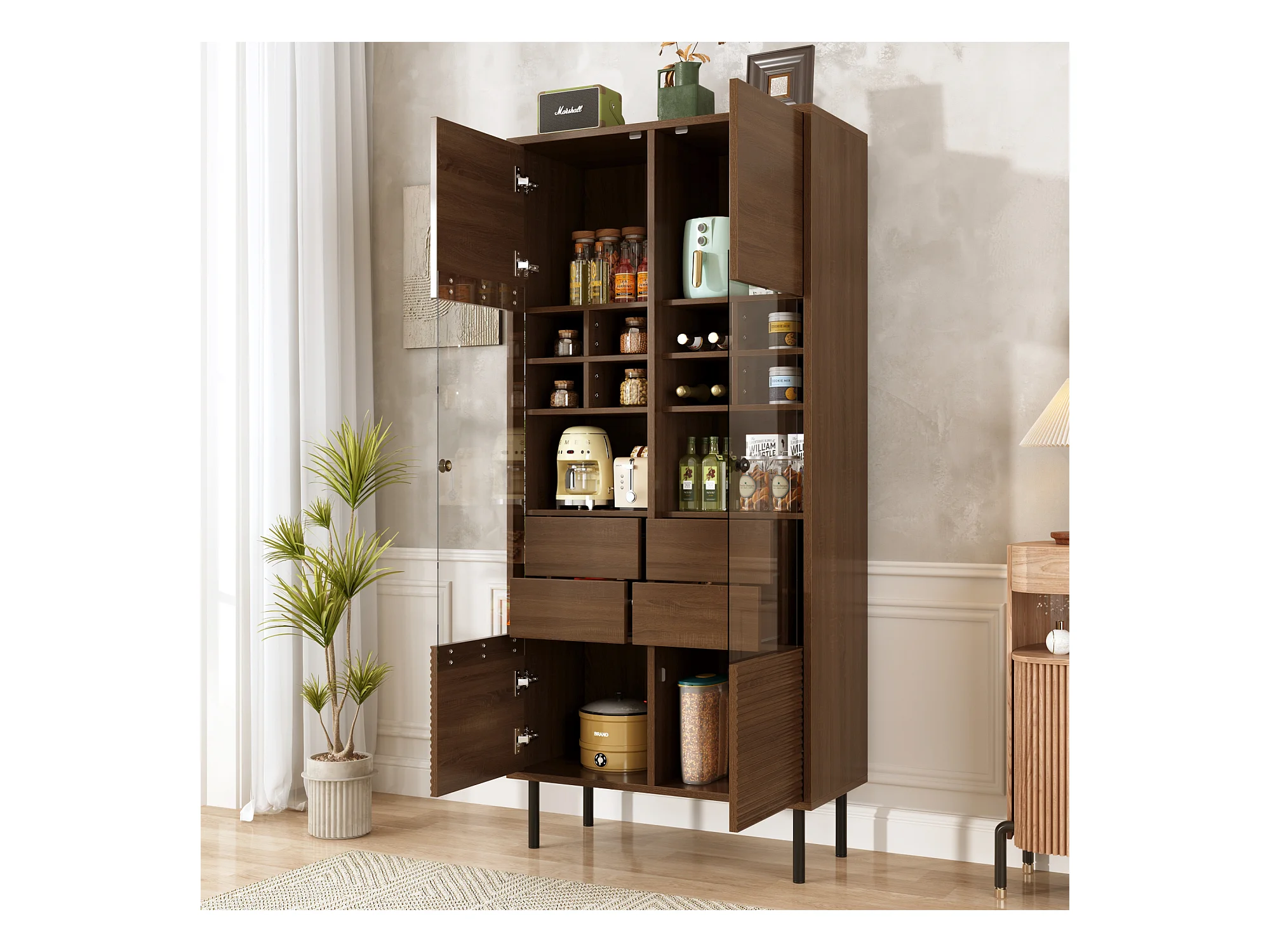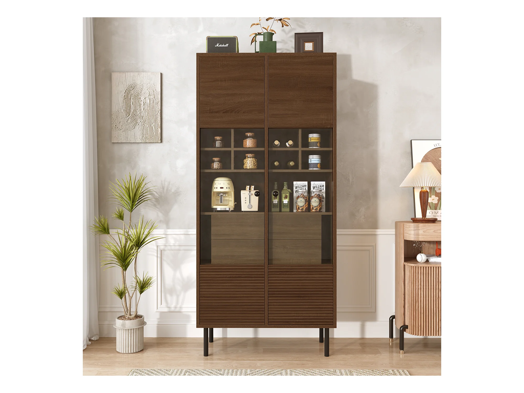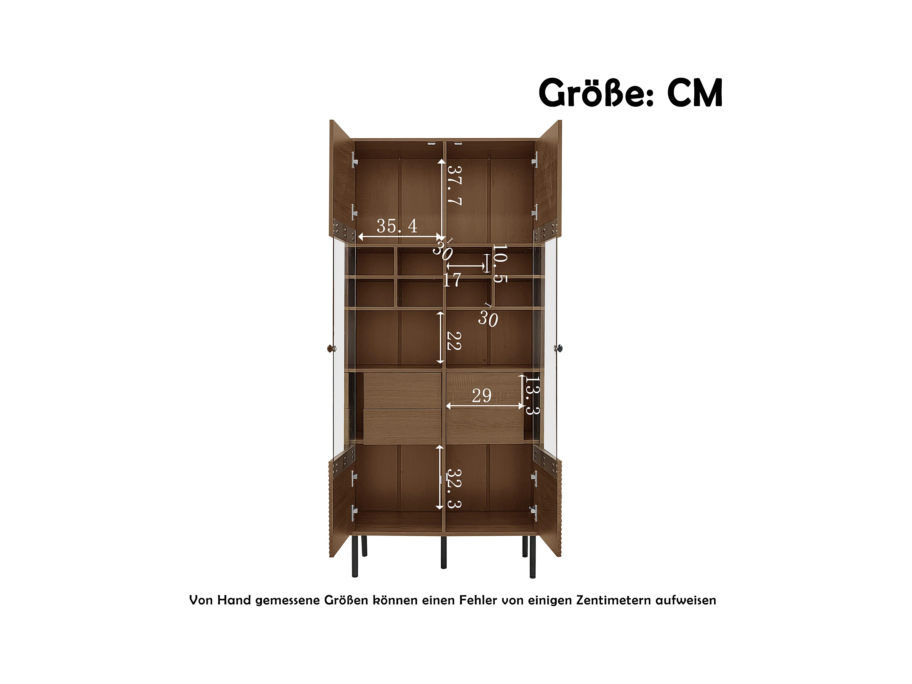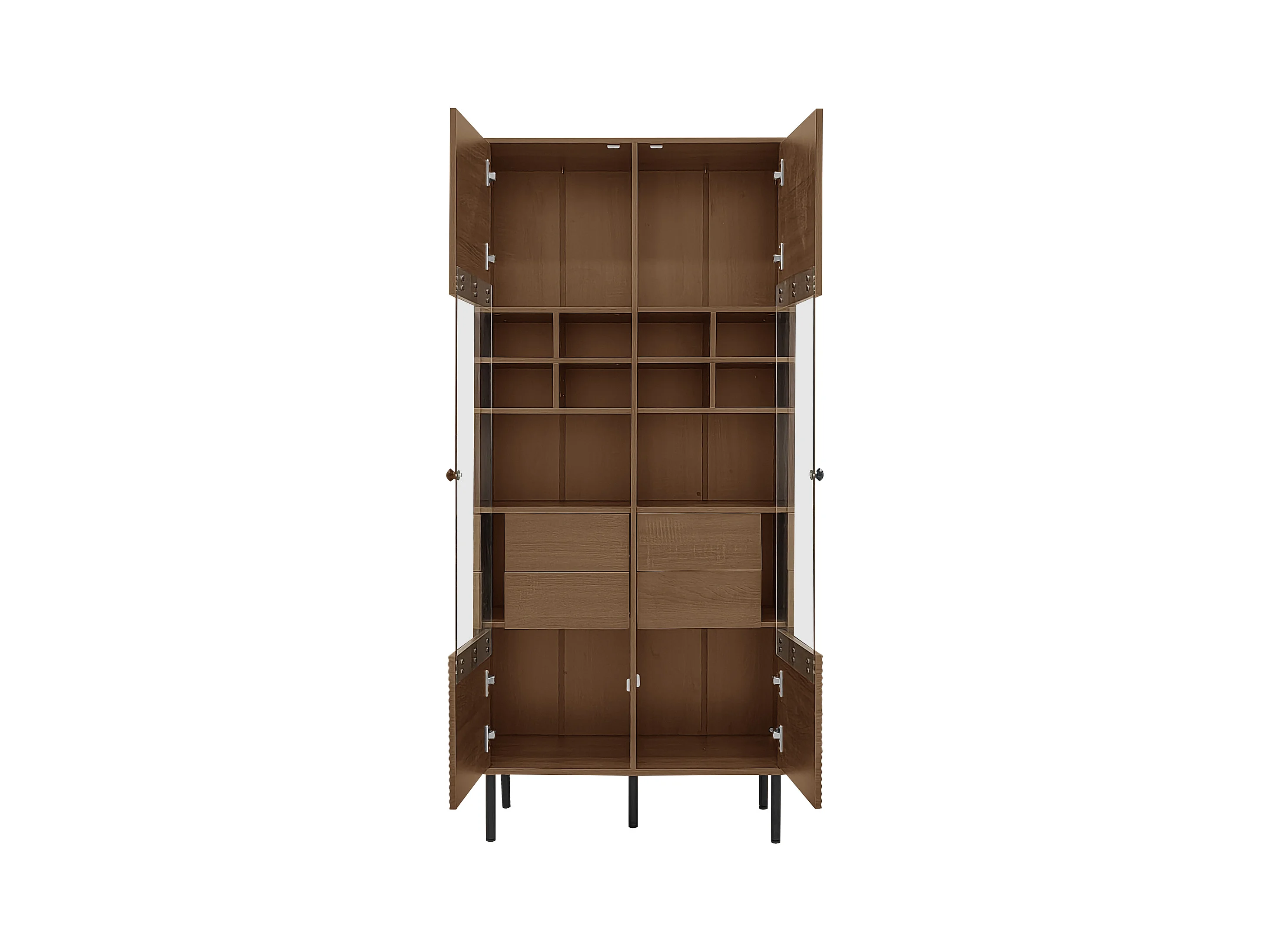 Vitrine 75x35x164.5 cm - 2 Türen - Glasfront + mehrlagiges Regalbrett + Geheimschublade - Nussbaum