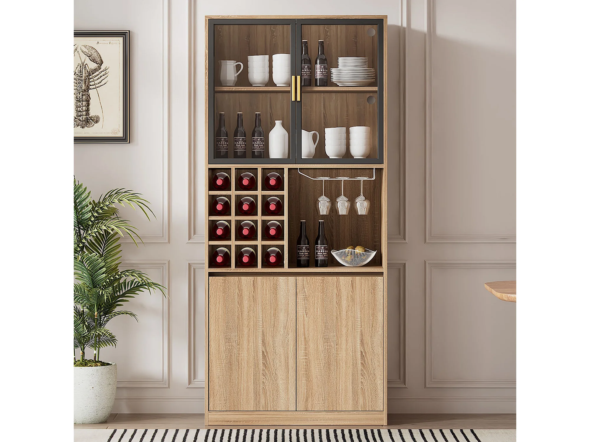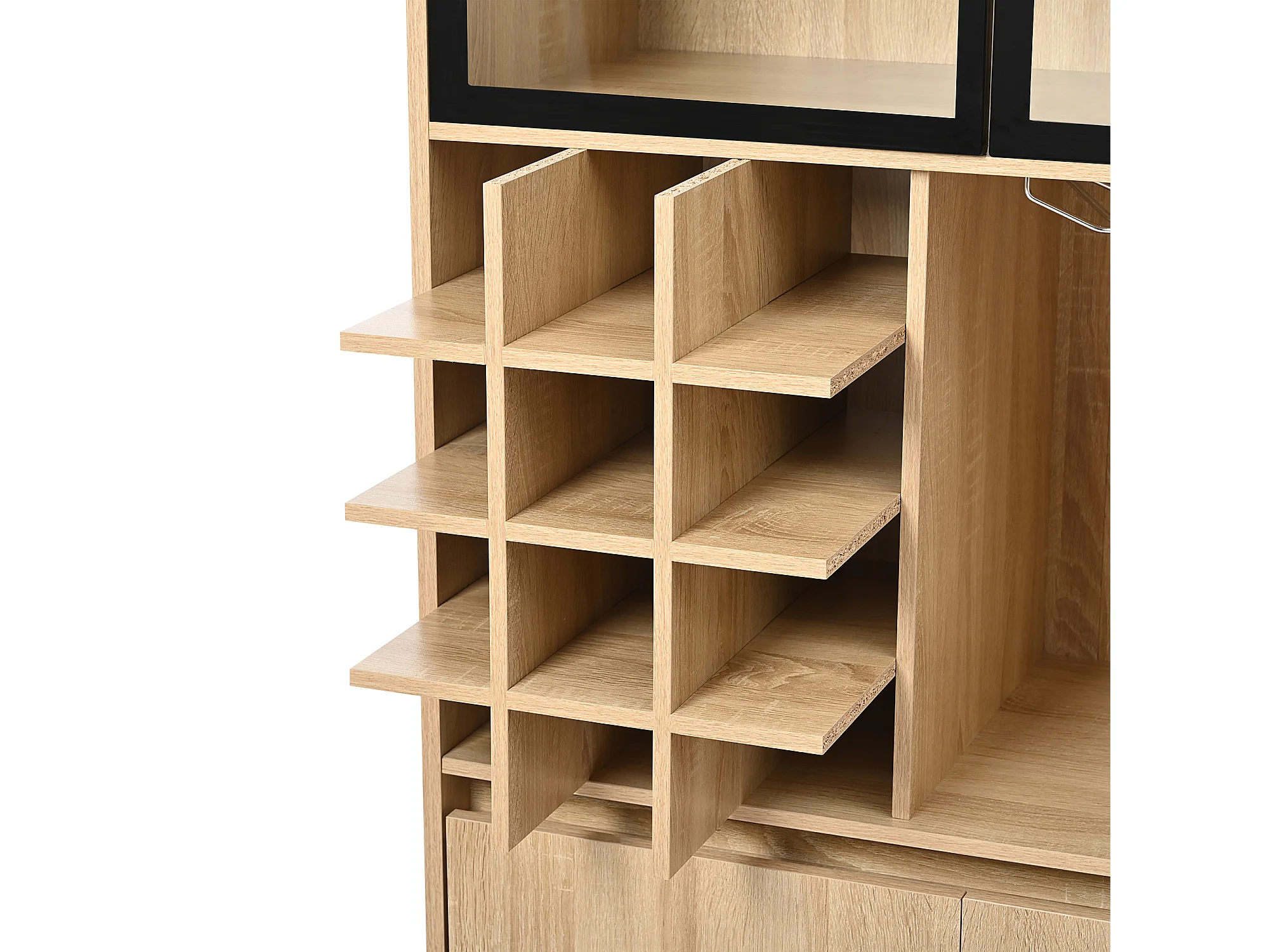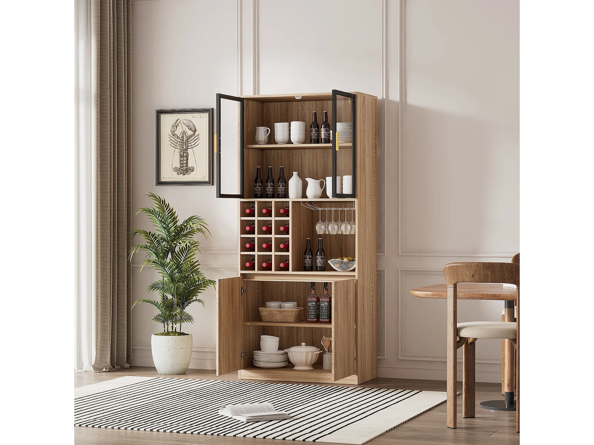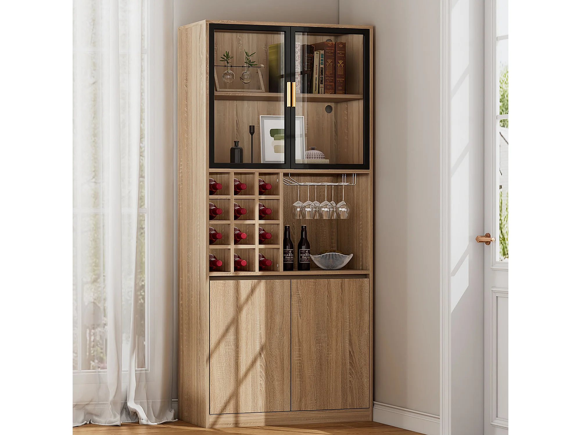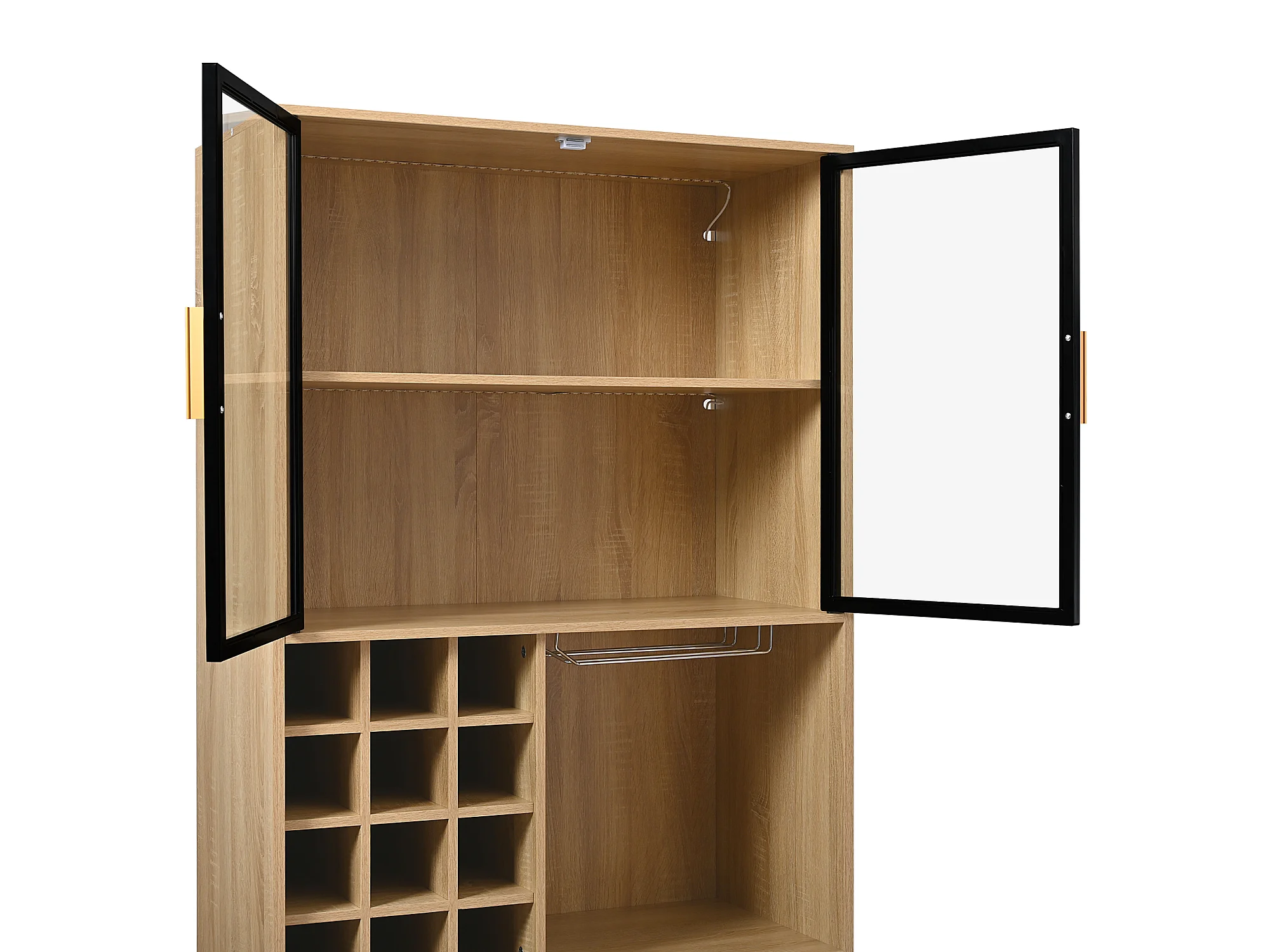 Vitrine 80x40x180 cm mit LED - 4 Türen und offenen Regalen - Natur