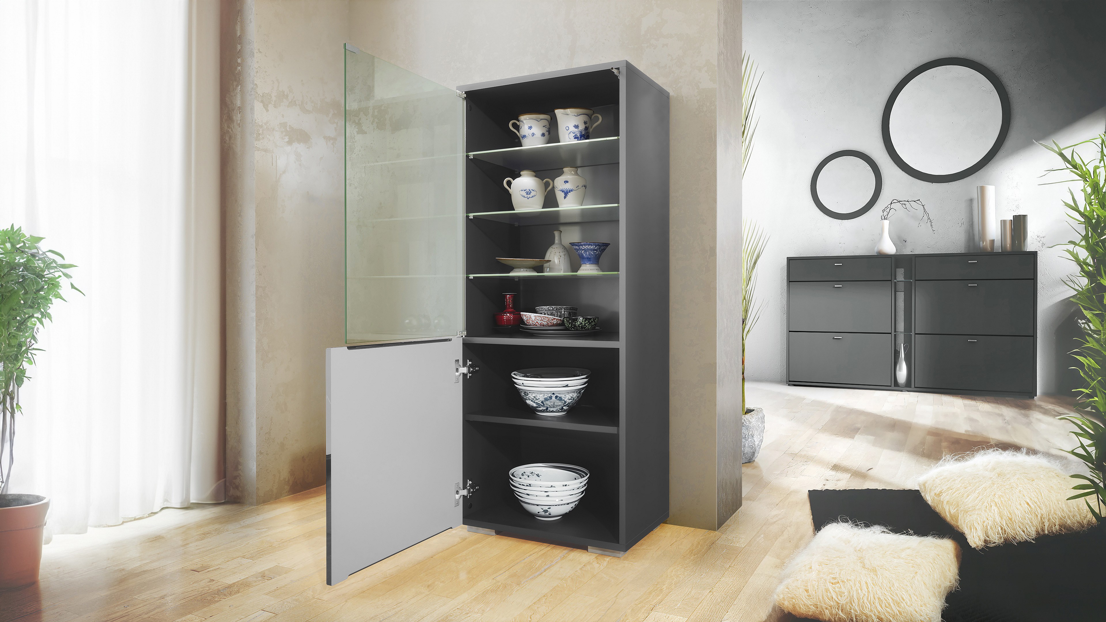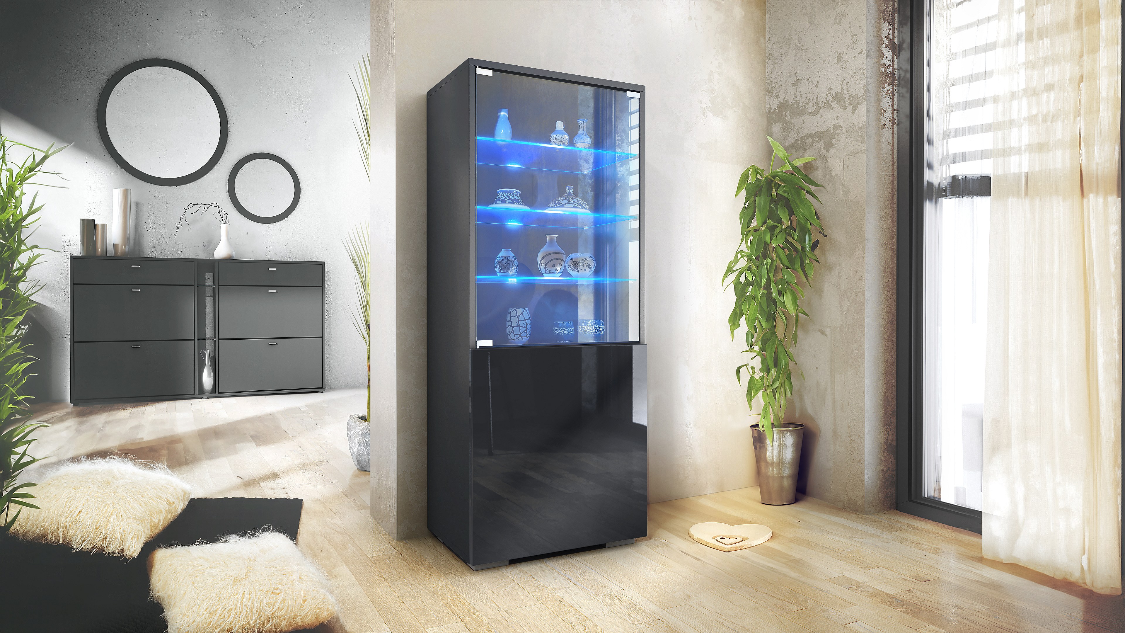 VITRINE Denjo Tür in Schwarz Hochglanz