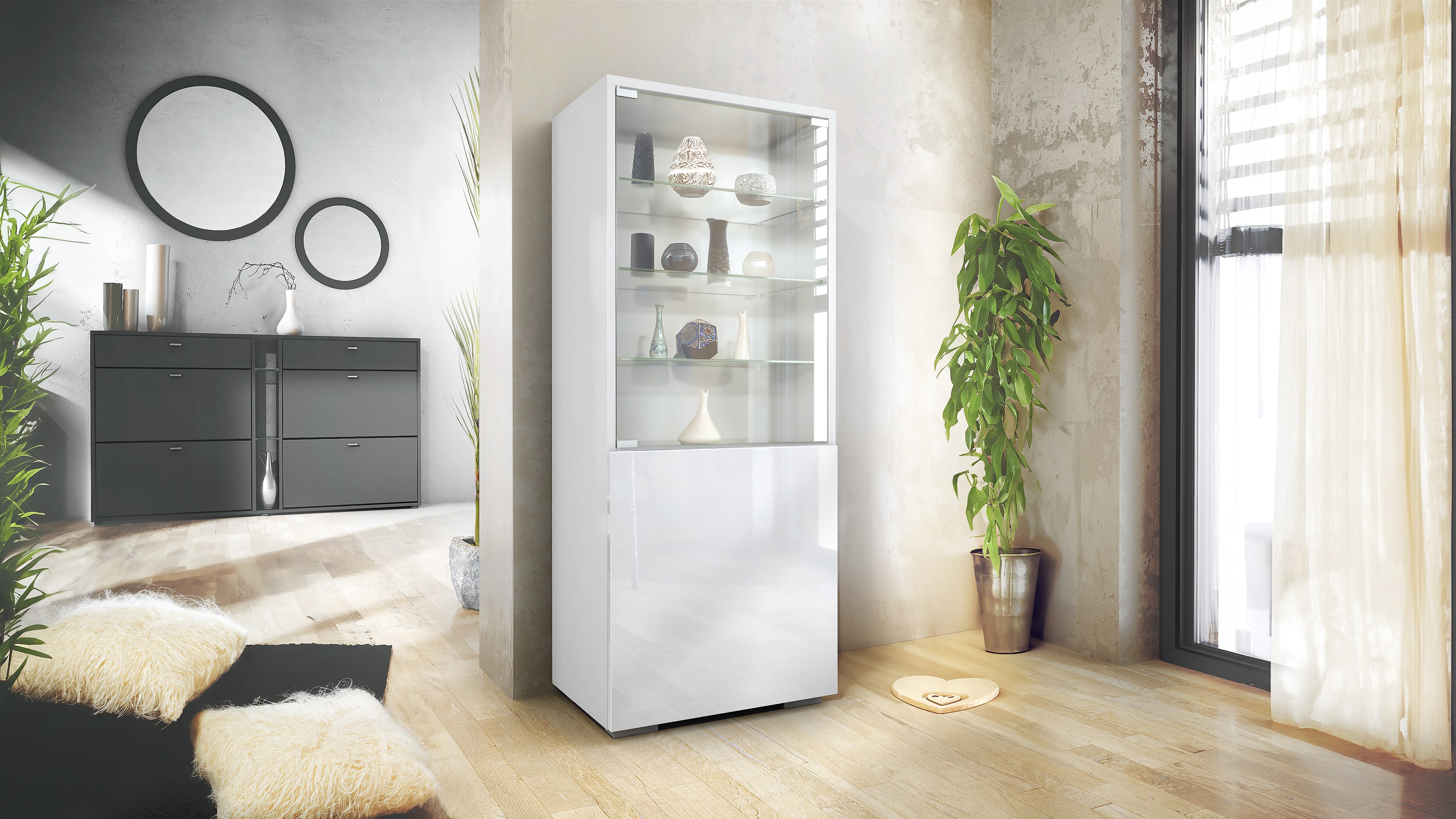 VITRINE Morena Tür und Einsatz in Weiß matt