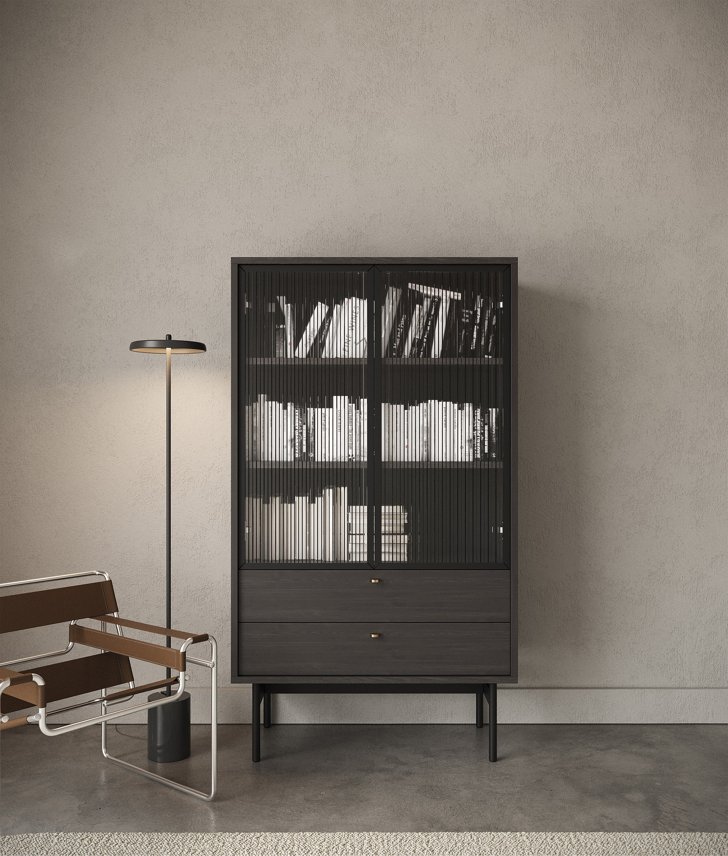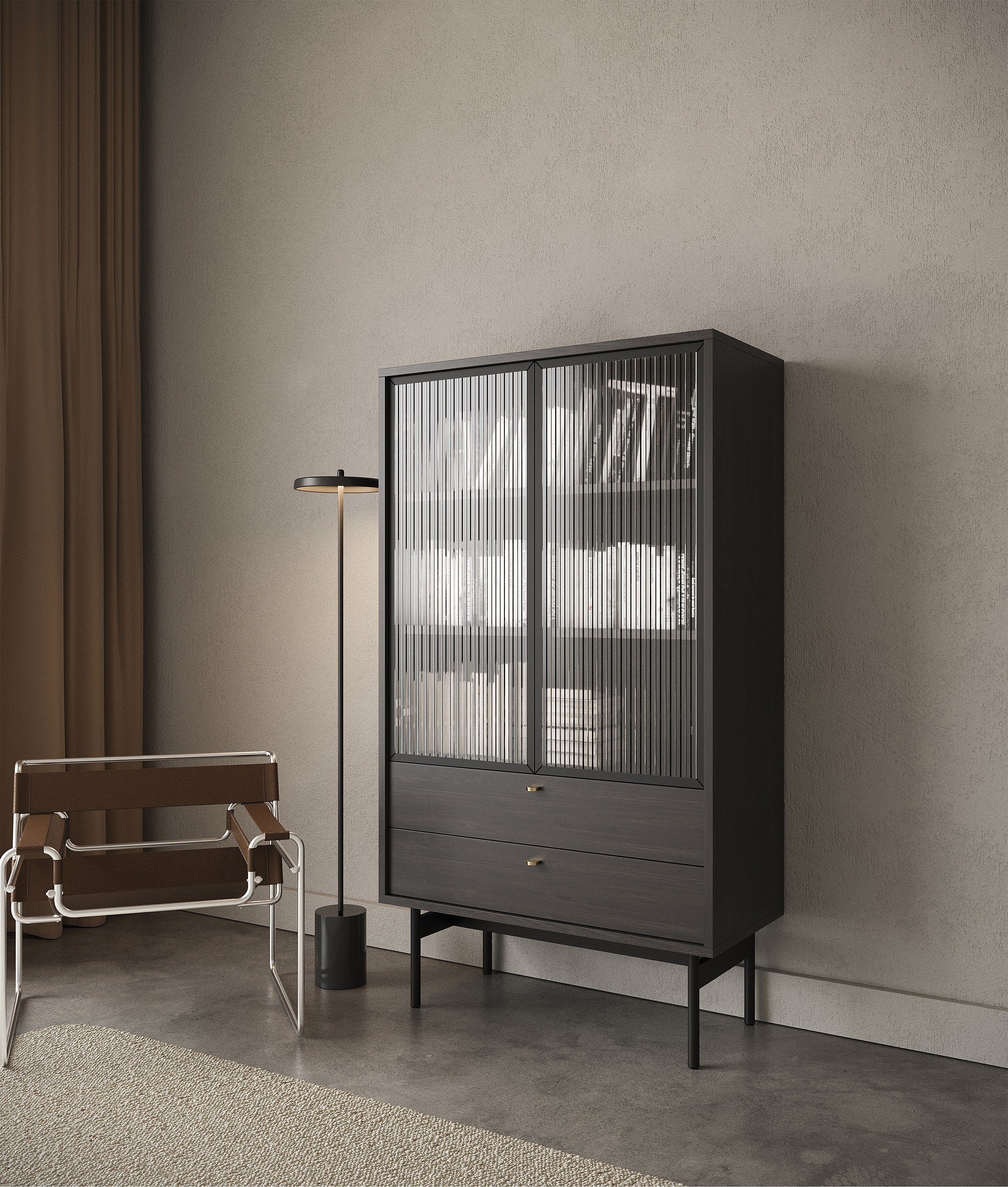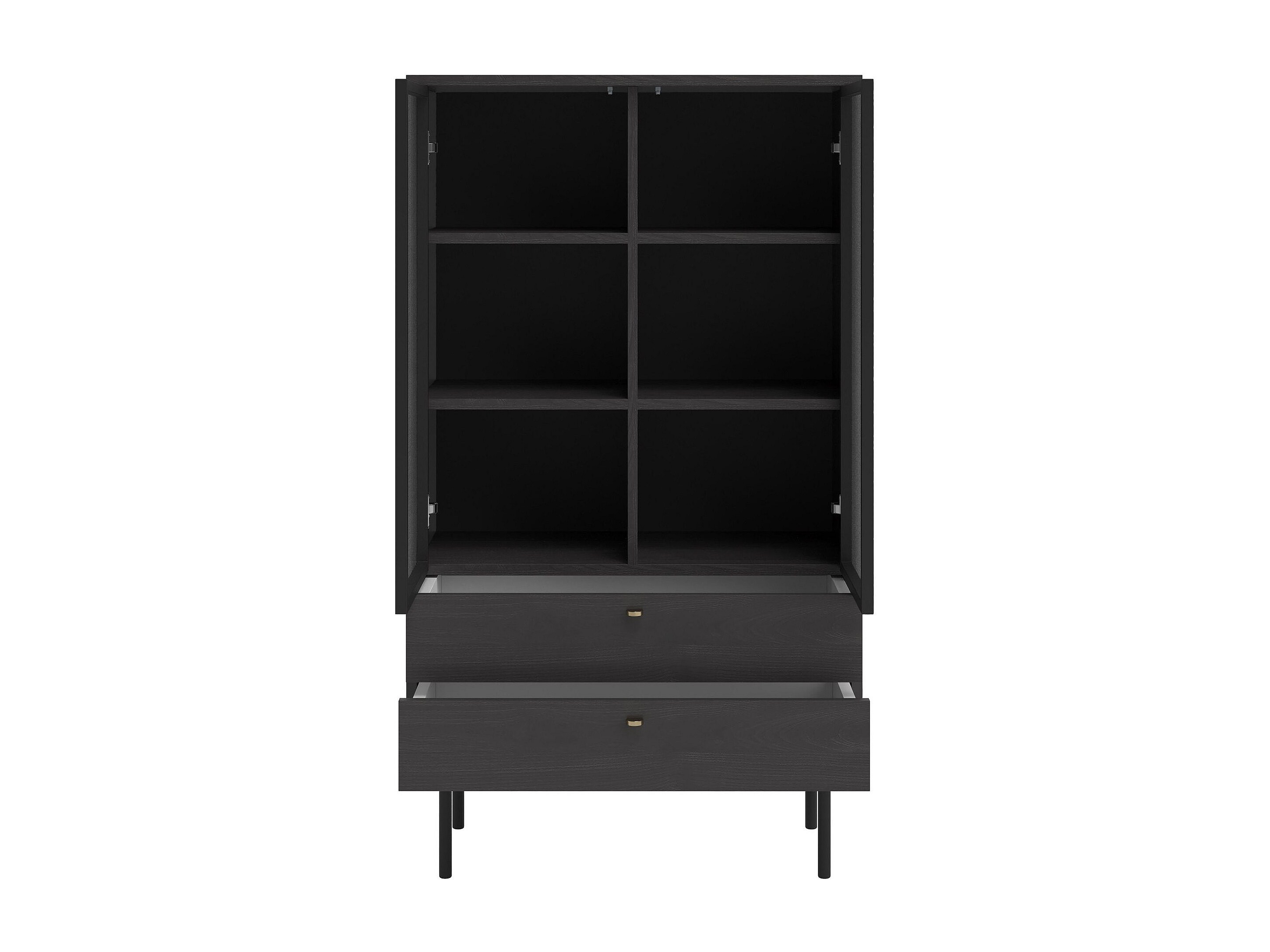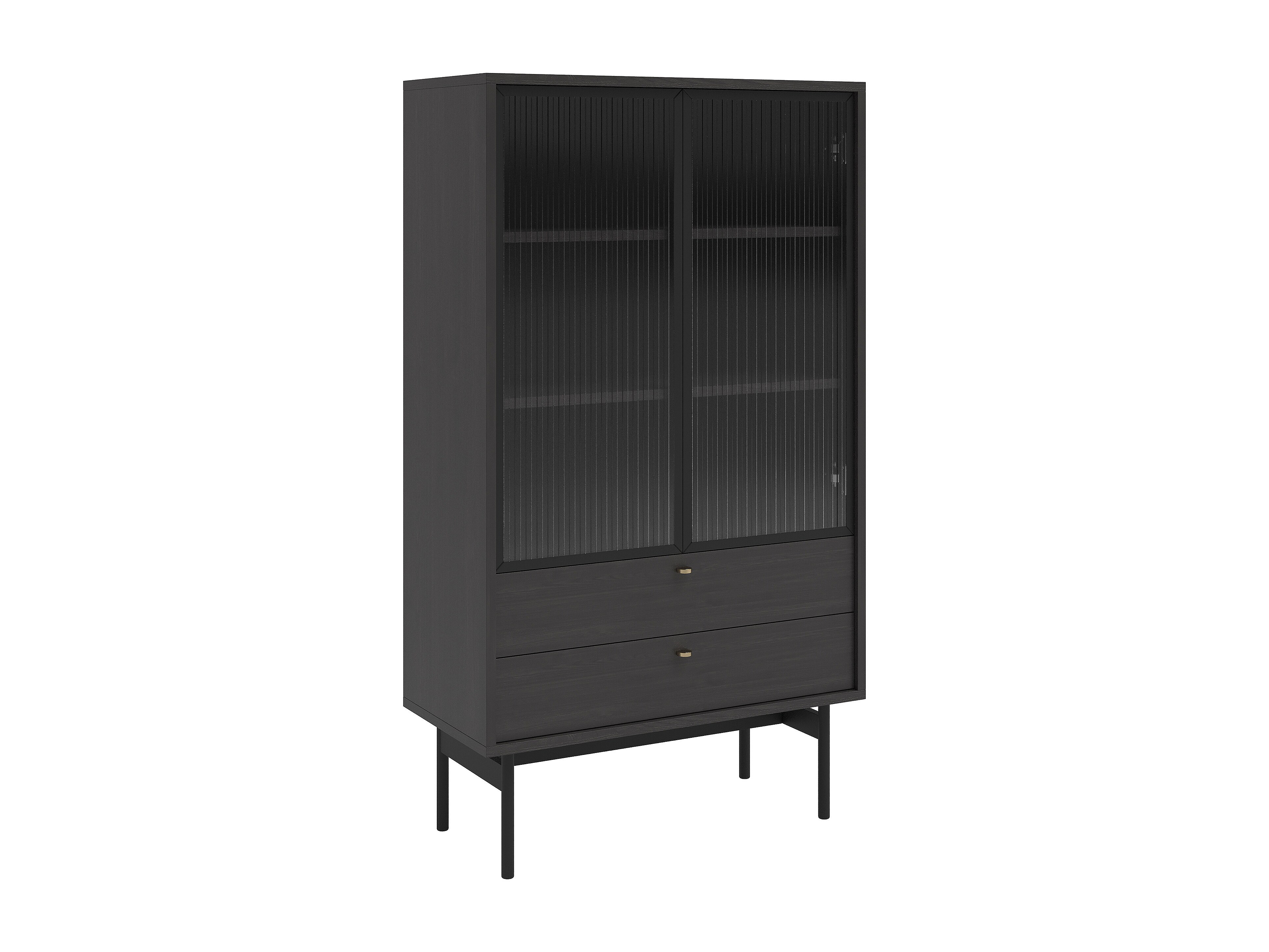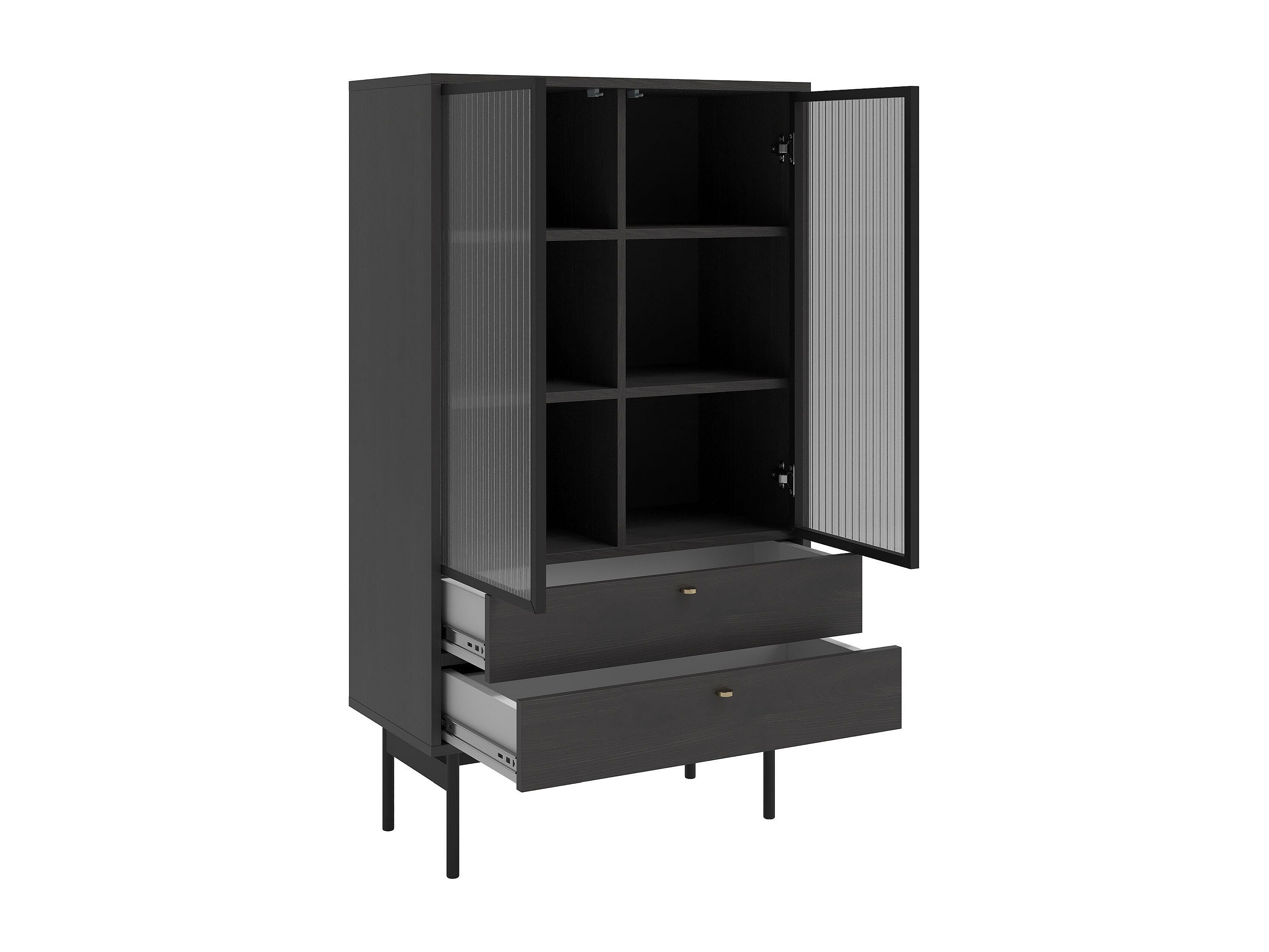 Vitrine 4-türig - geriffelt mit Glastür - schwarz - 112 cm - Zante