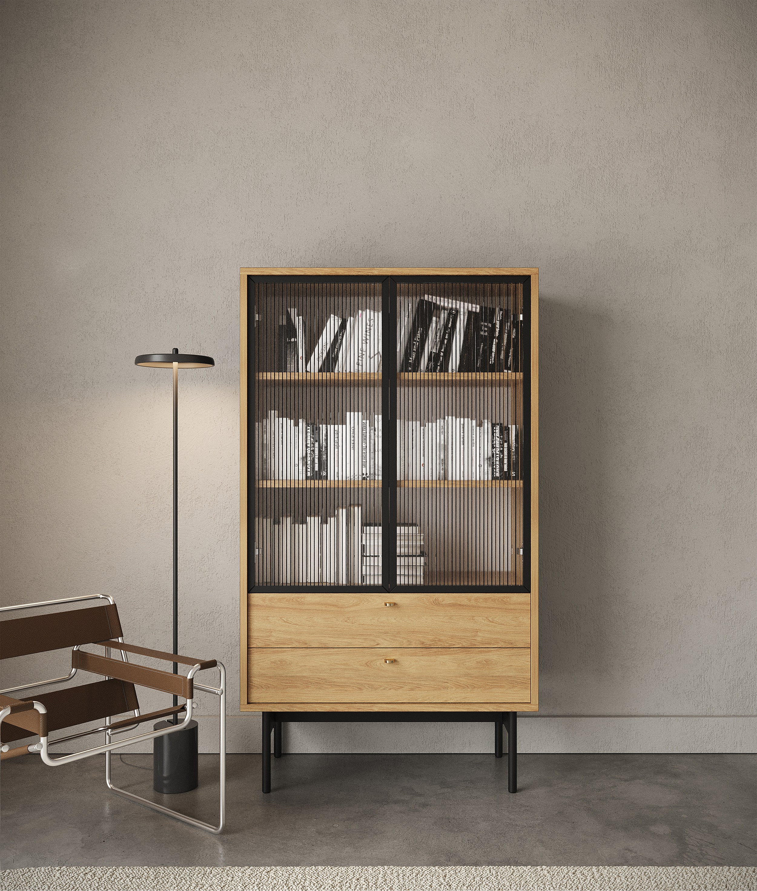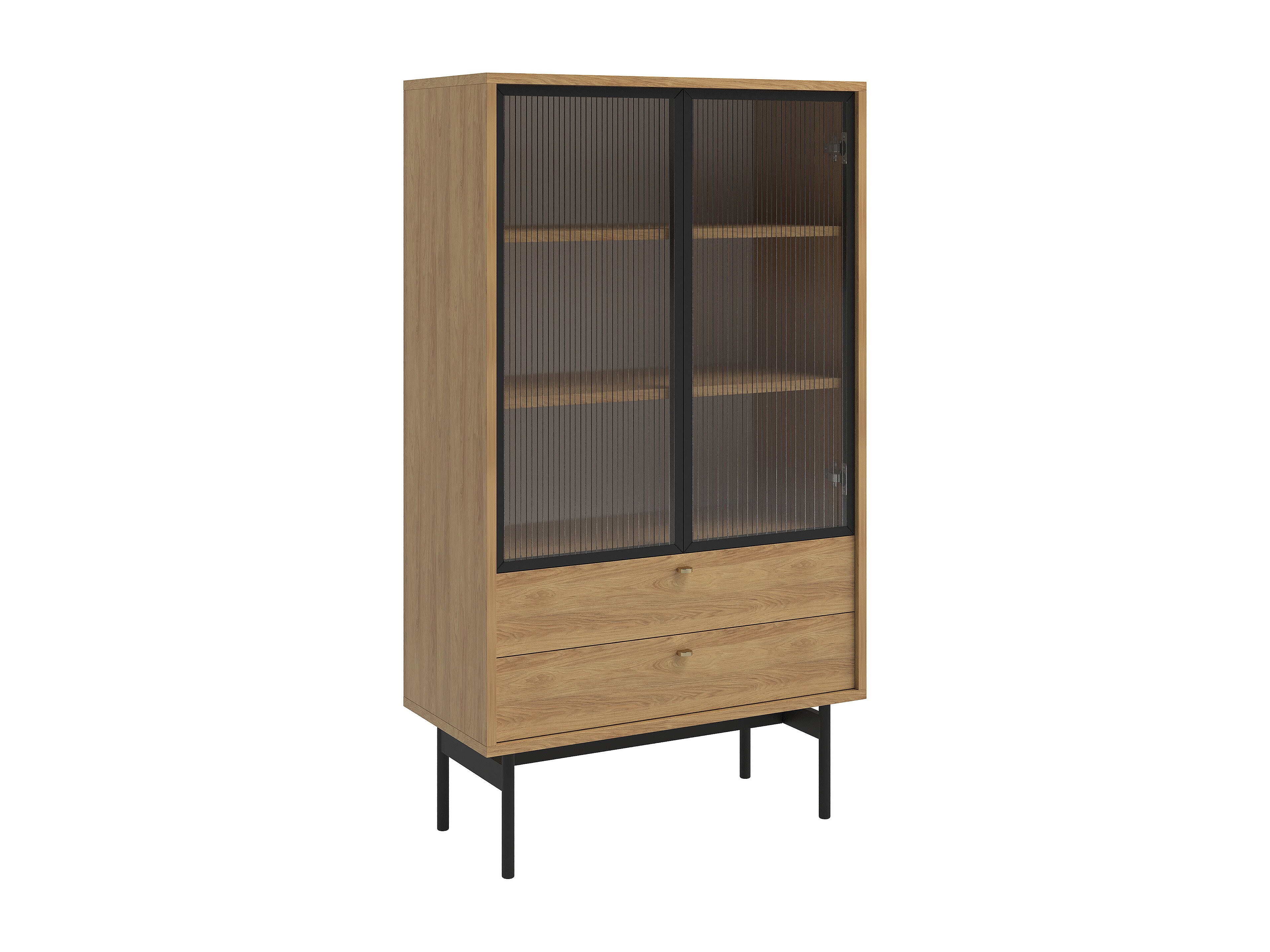 Vitrine 2-türig mit geriffelter Front - Eichenholzoptik Evoke - 56 cm - OSAKA