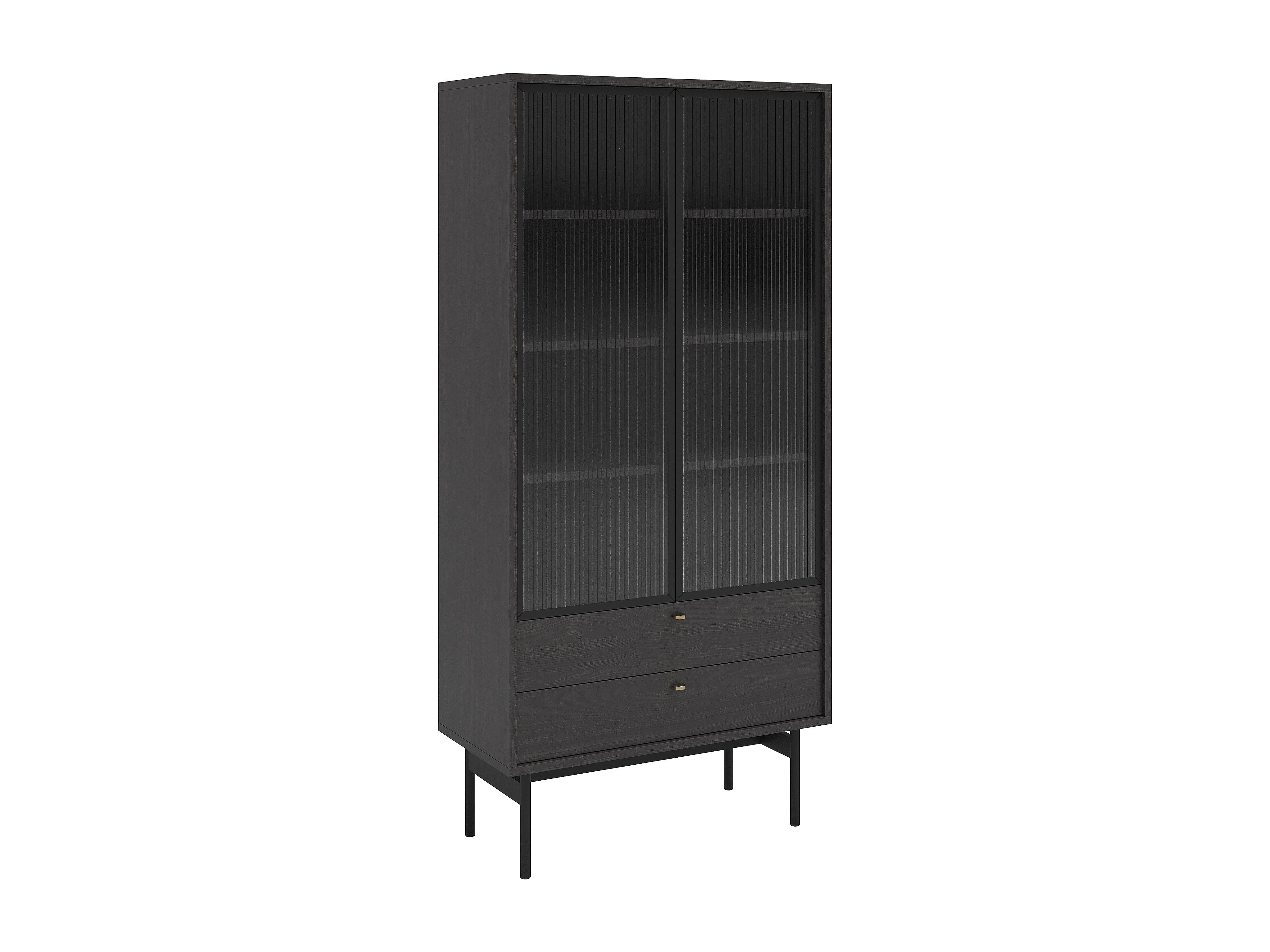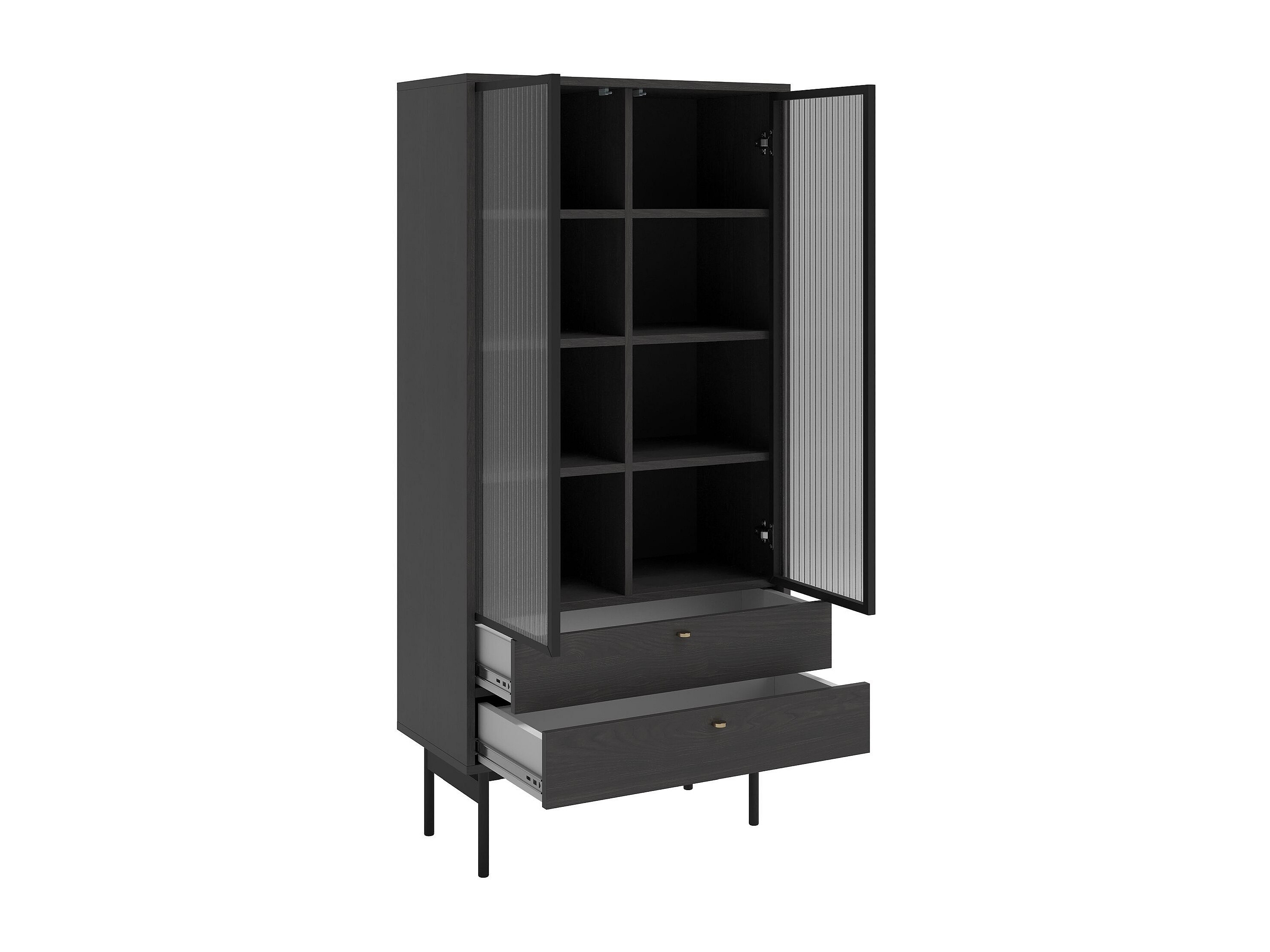 Zweitürige Vitrine - Schwarz/Eiche Evoke Fischgrätenmuster - BOULIA