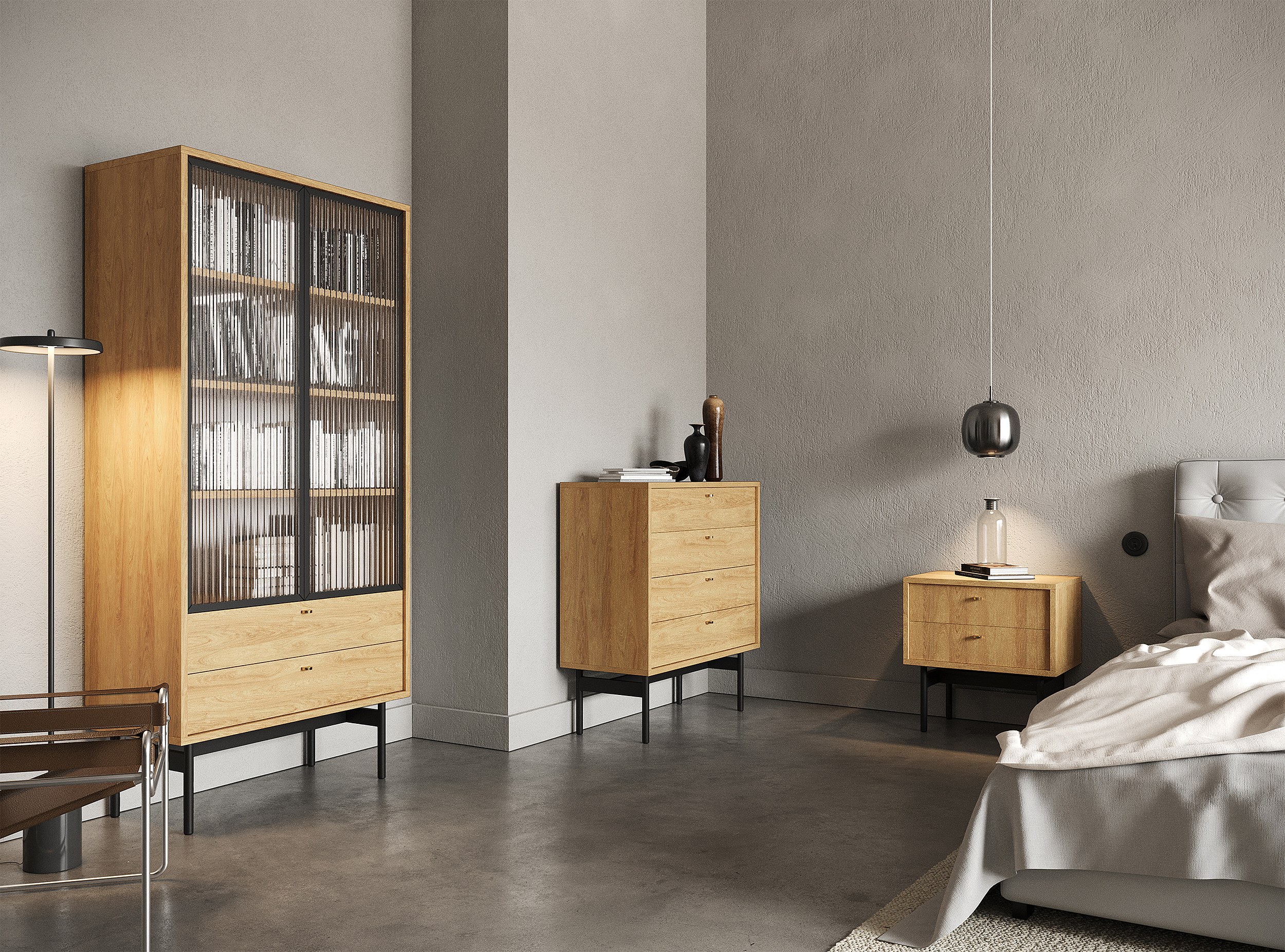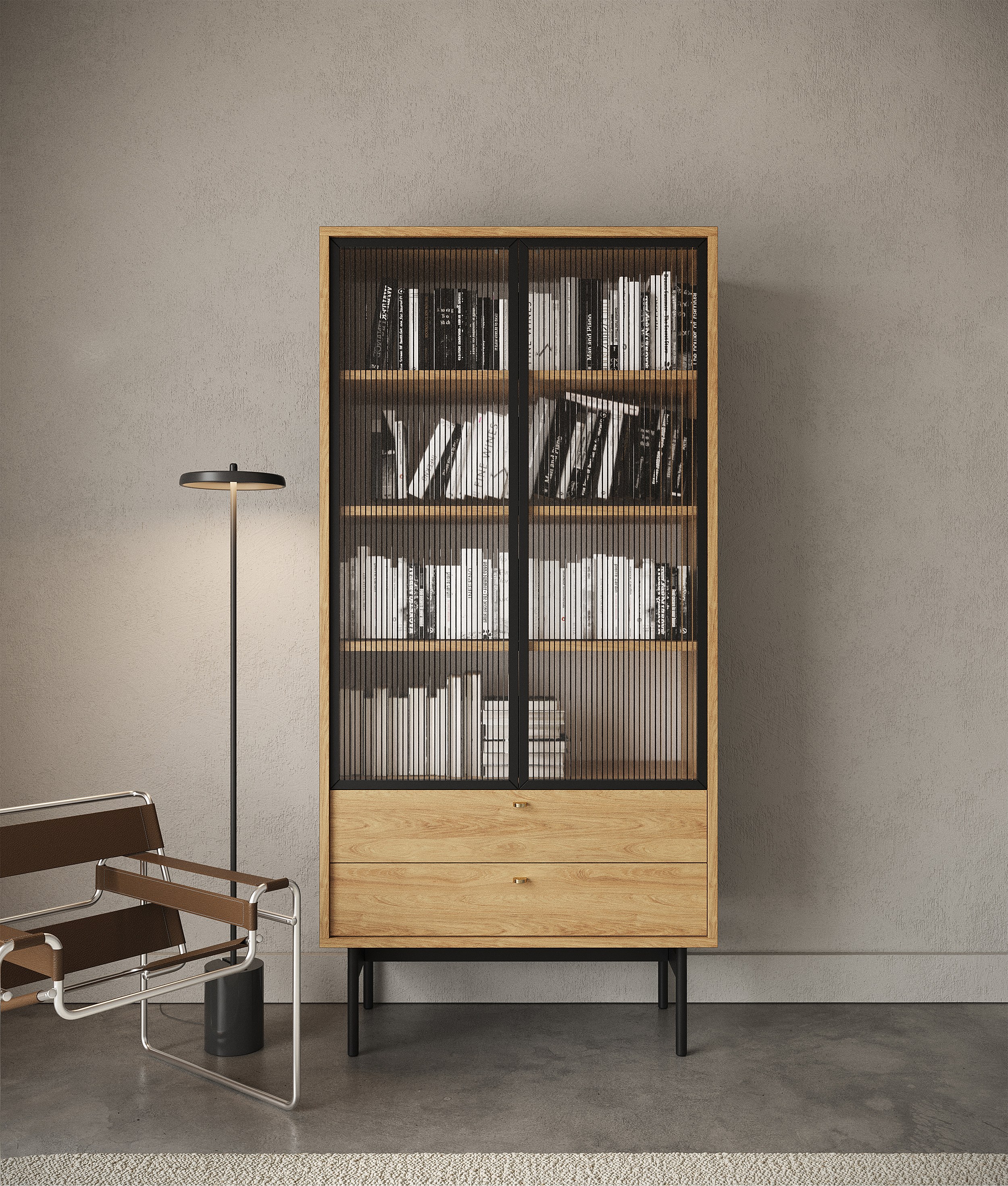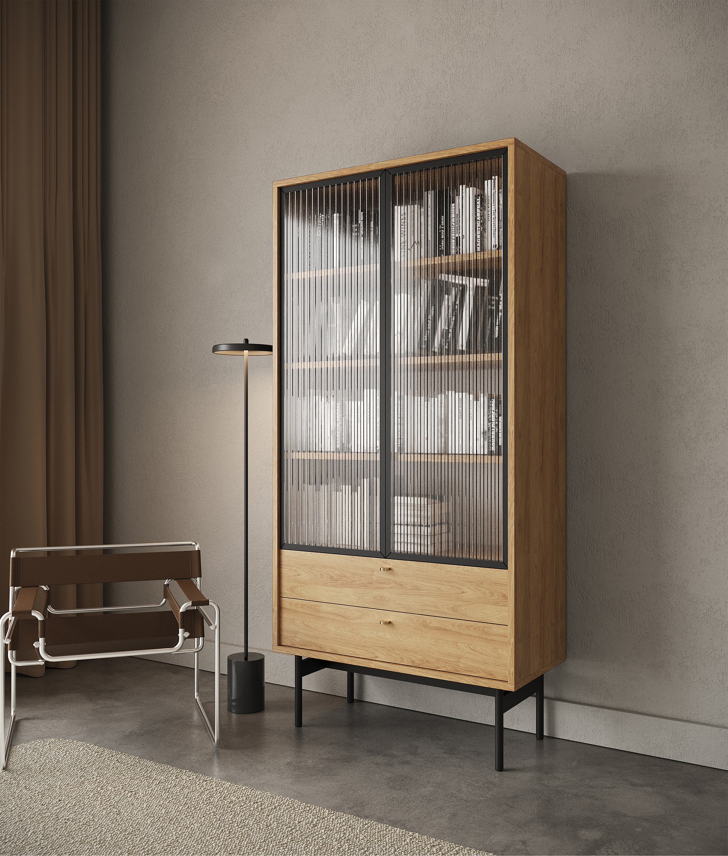 Vitrine 2-türig mit geriffelter Front - Eichenholzoptik Evoke - 56 cm - OSAKA
