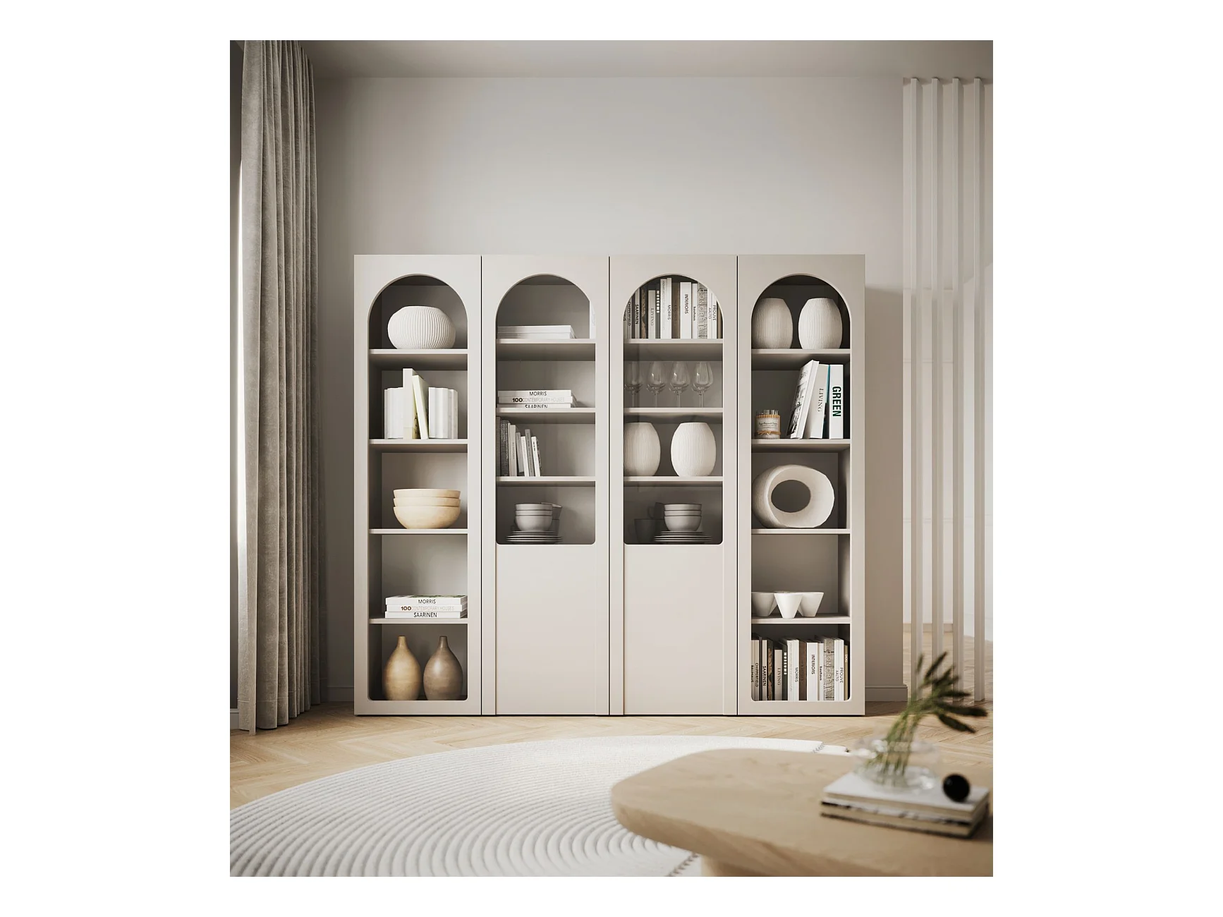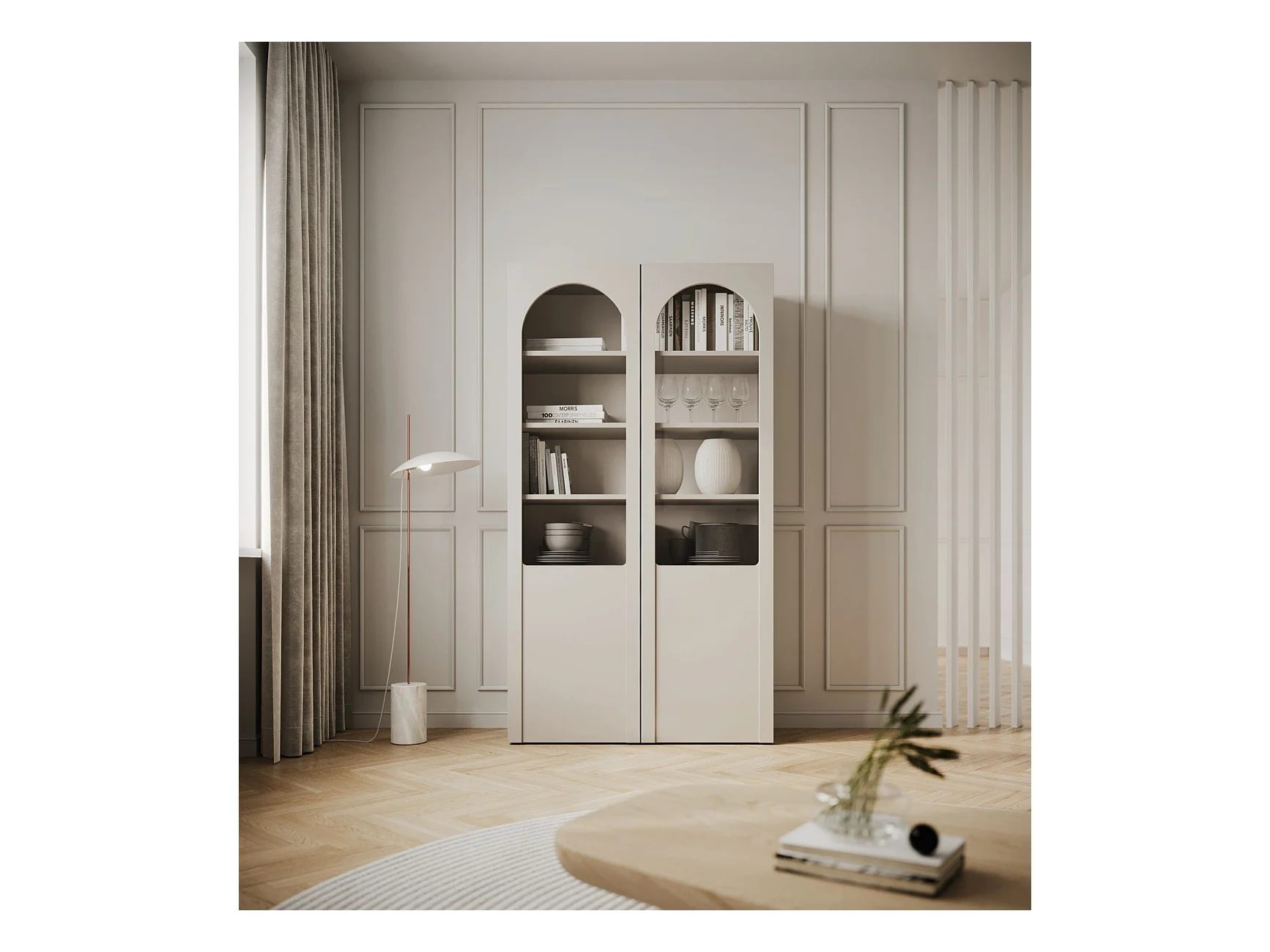 Vitrine mit Bogentüren und Glasfronten - Kaschmirgrau - 100 cm - ARKADIA