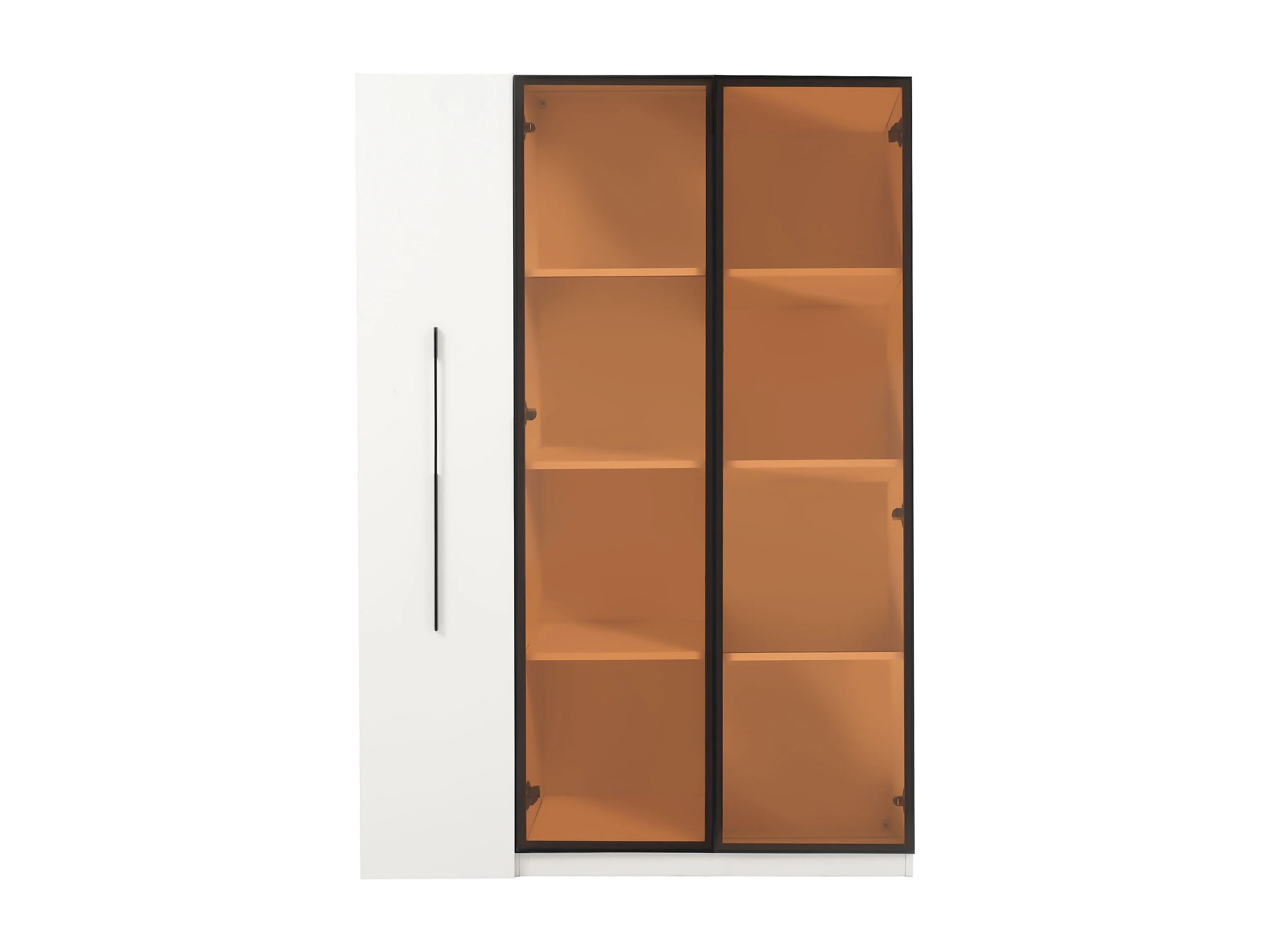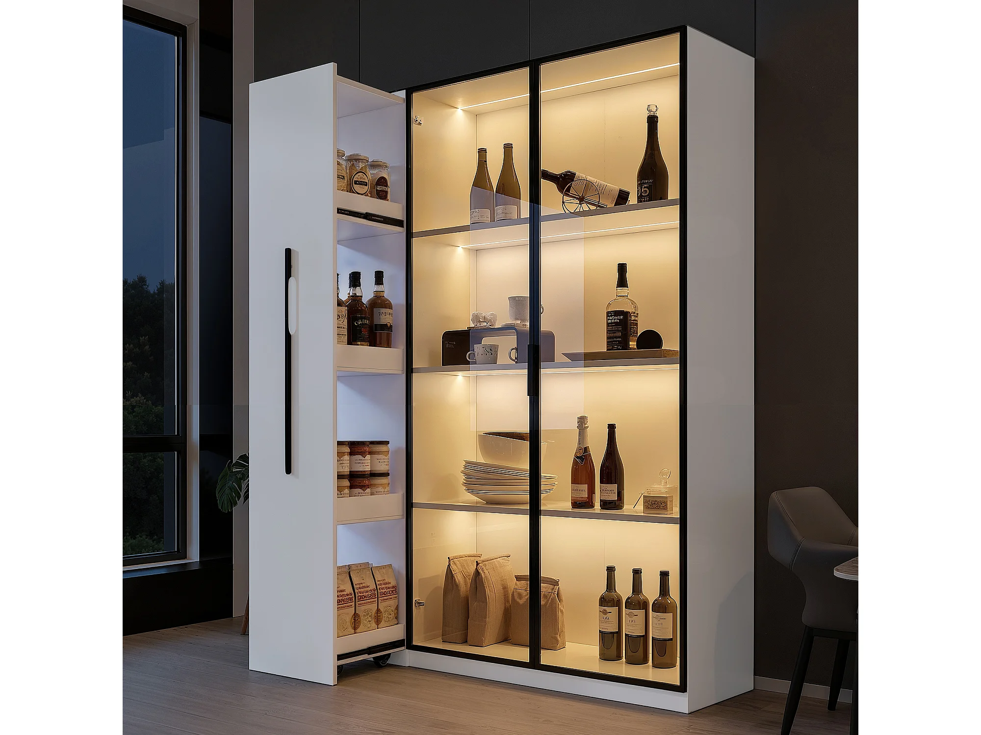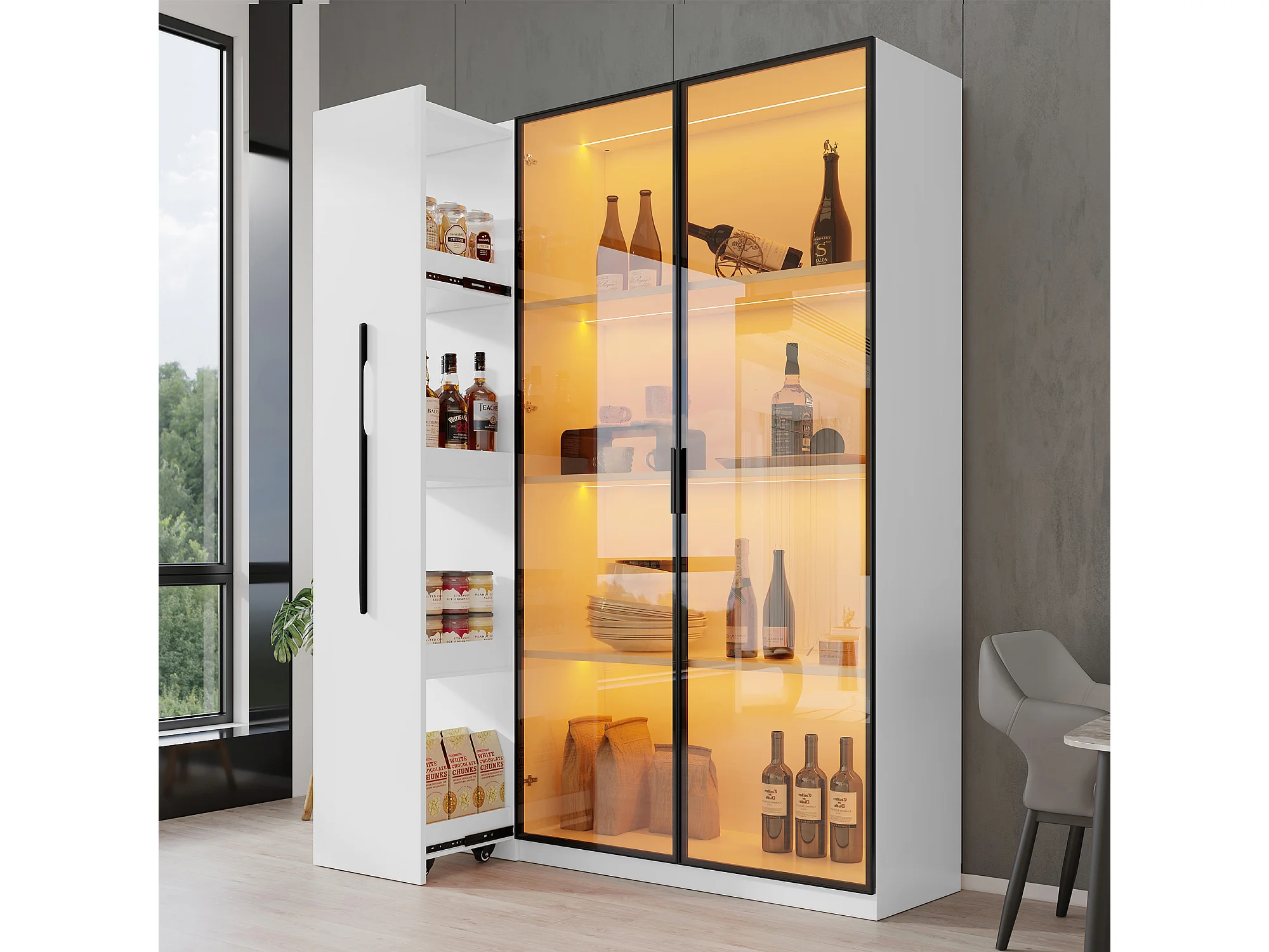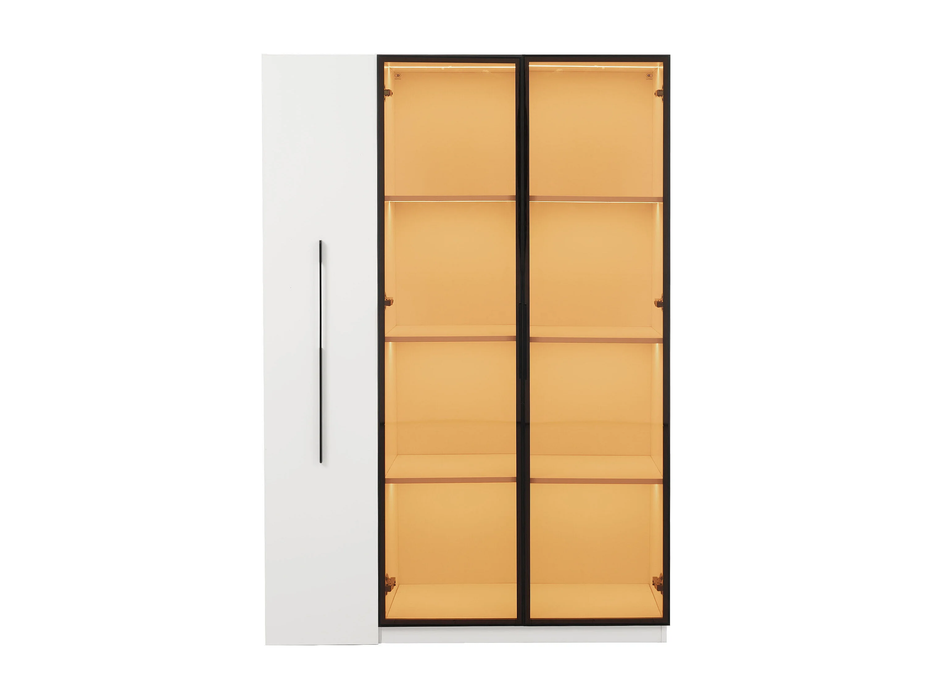 Vitrine mit Glastür und LED-Beleuchtung – 110,5 x 35 x 160 cm – mit ausziehbarem Seitenboden – MDF – weiß