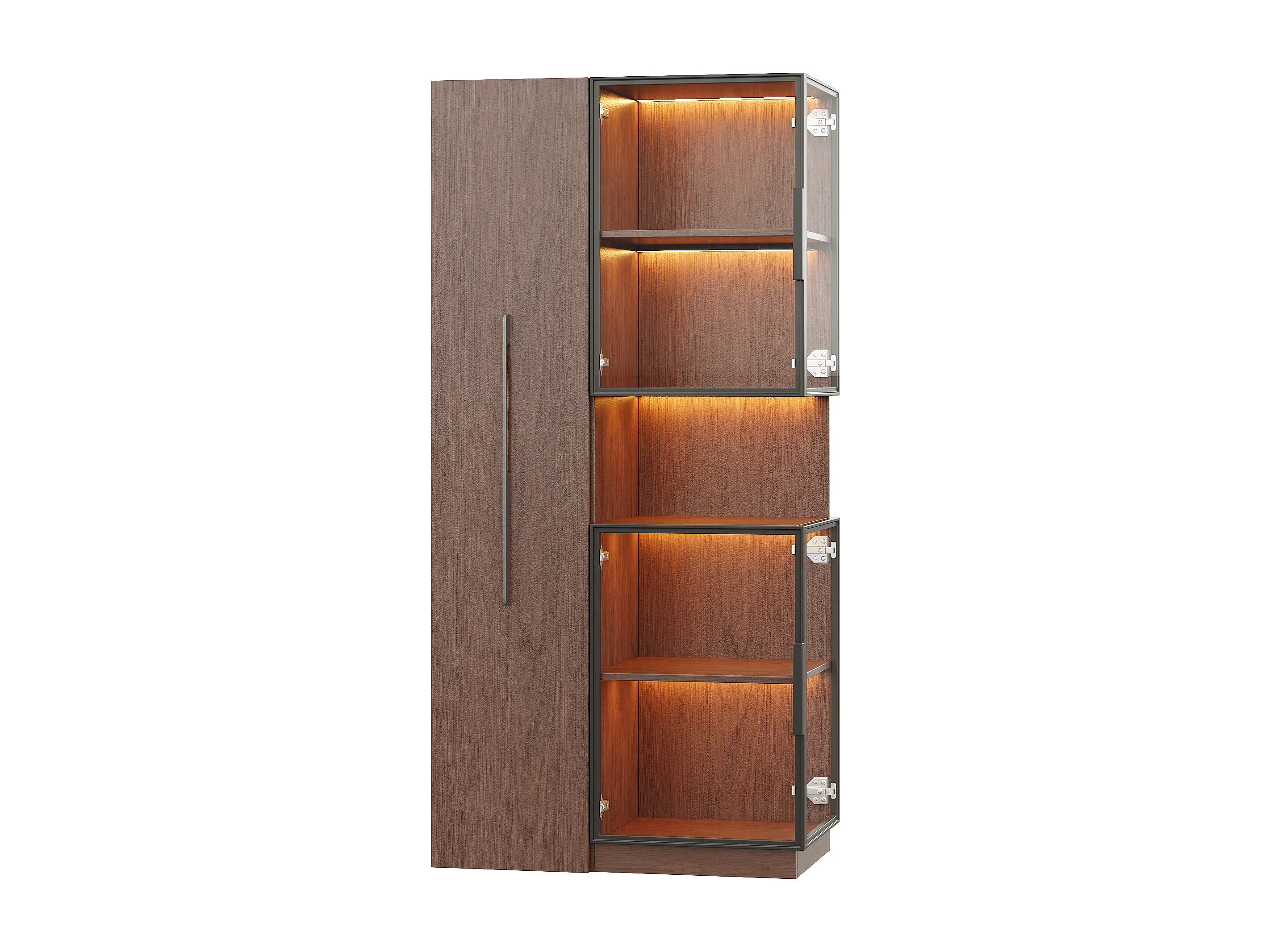 Vitrine mit Glastüren und LED-Beleuchtung – 70 x 38 x 160 cm – mit ausziehbarem Seitenboden – MDF – braun