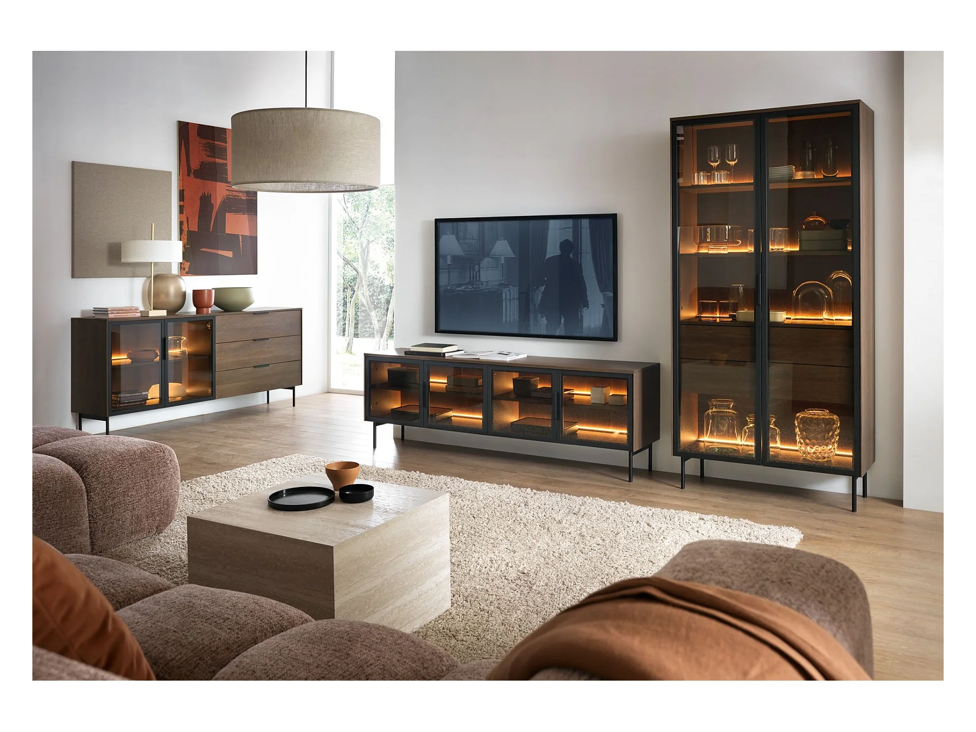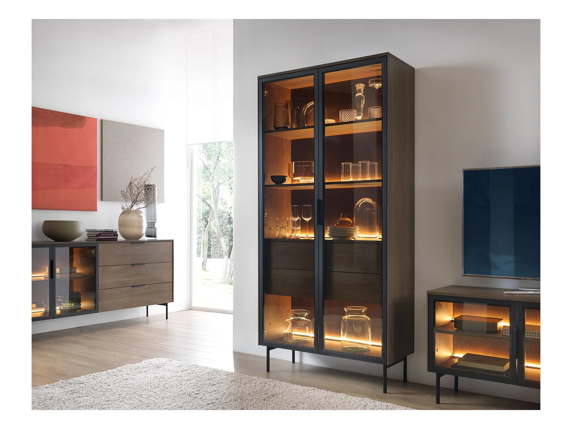 Vitrine mit zwei Schubladen und LED - Eiche Dunin - 91 cm - LUMI