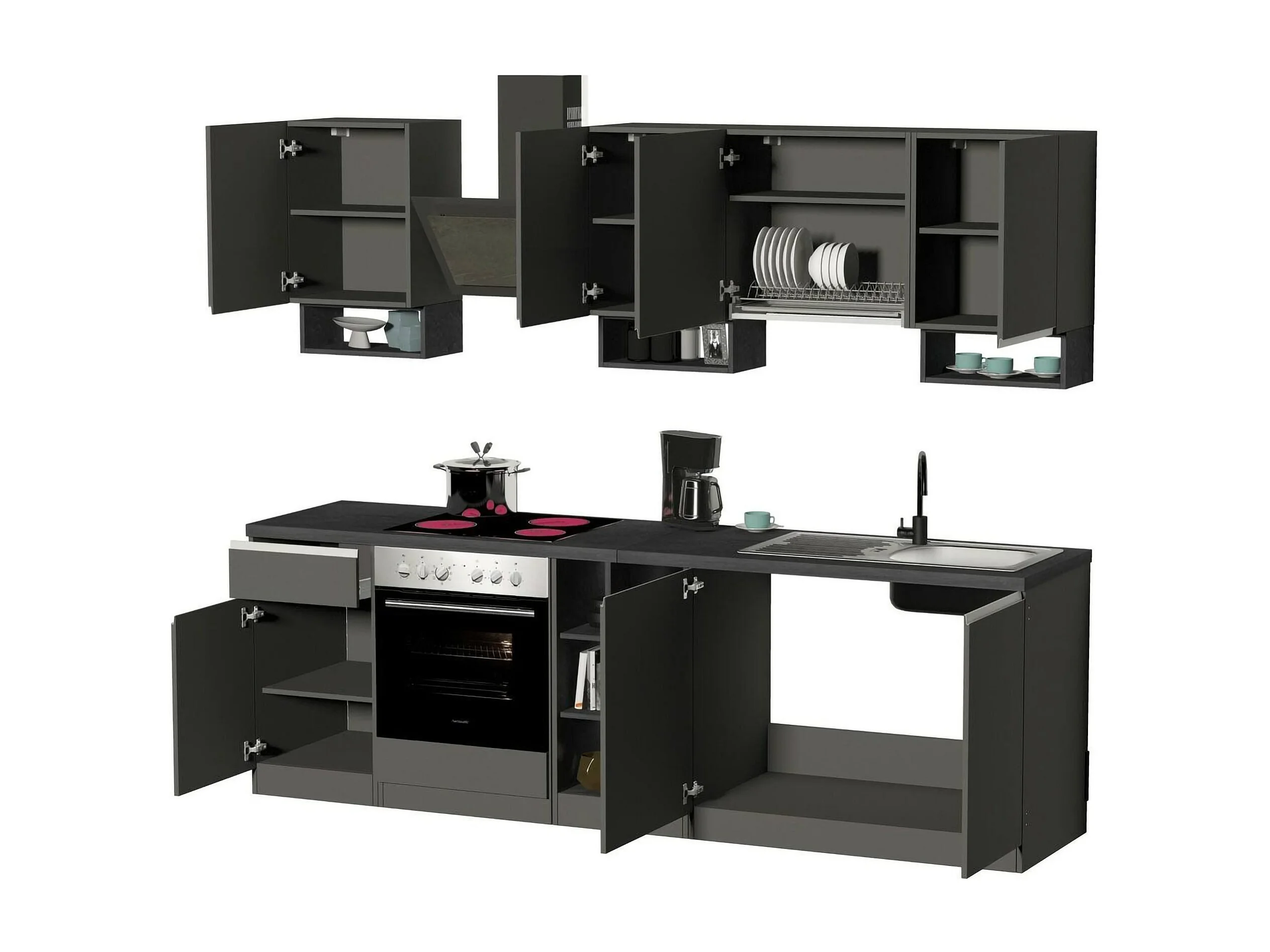 Vollständige Küche Dcelient, Set mit Speisekammer, Küchenzeile Schrank, Linearer Blocksatz, 100 % Made in Italy, 255 x 60 x 85 cm, Anthrazit und Schiefer