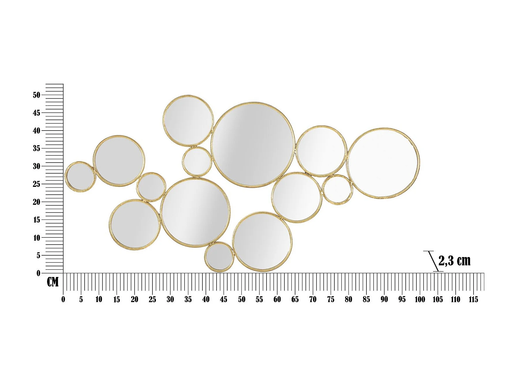 Wanddekoration mit goldenen runden Spiegeln Mirrors