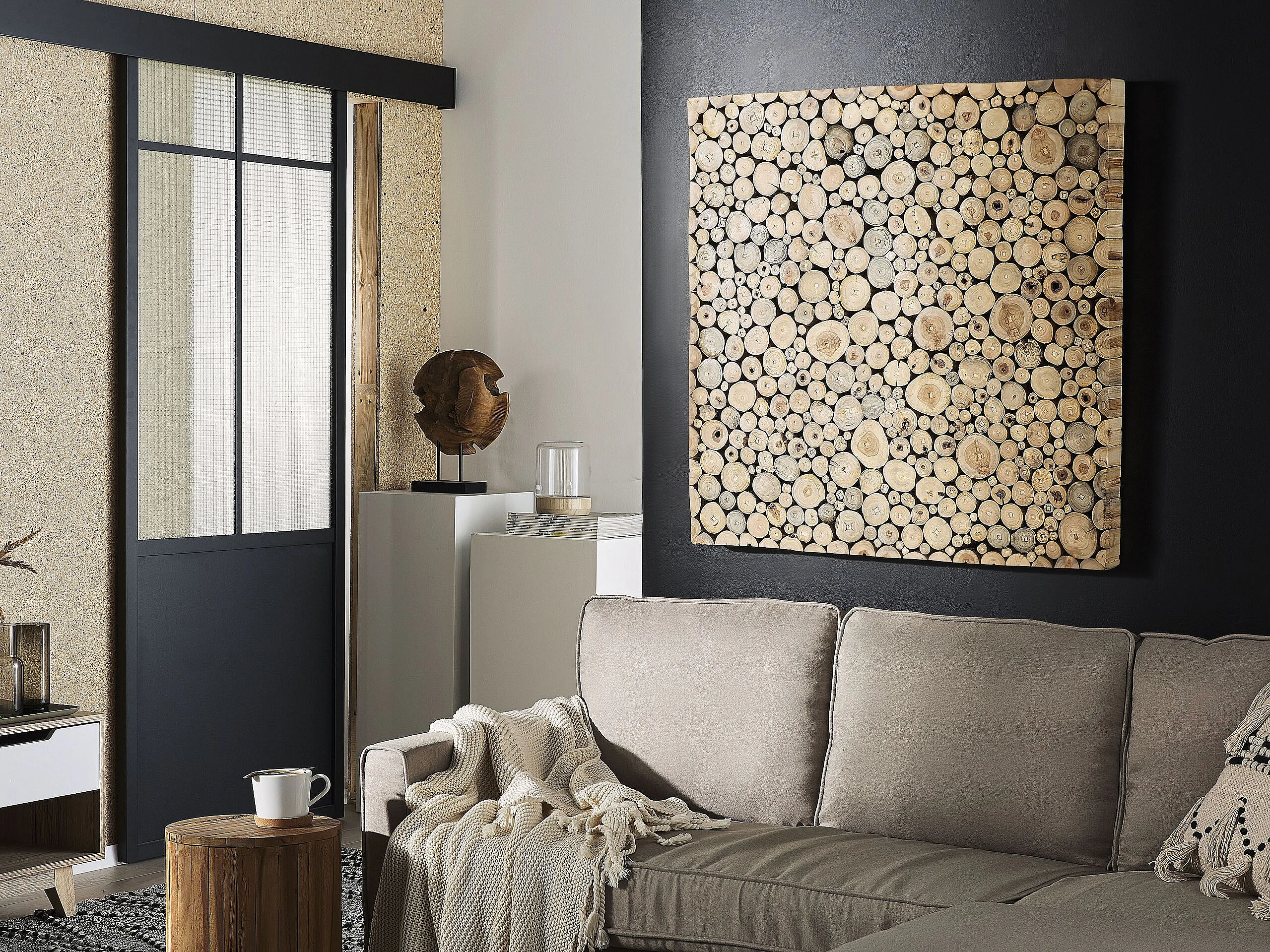 Stilvolle Wanddekoration Natur-Motiv Teakholz hellbraun 85 x 85 cm Twig