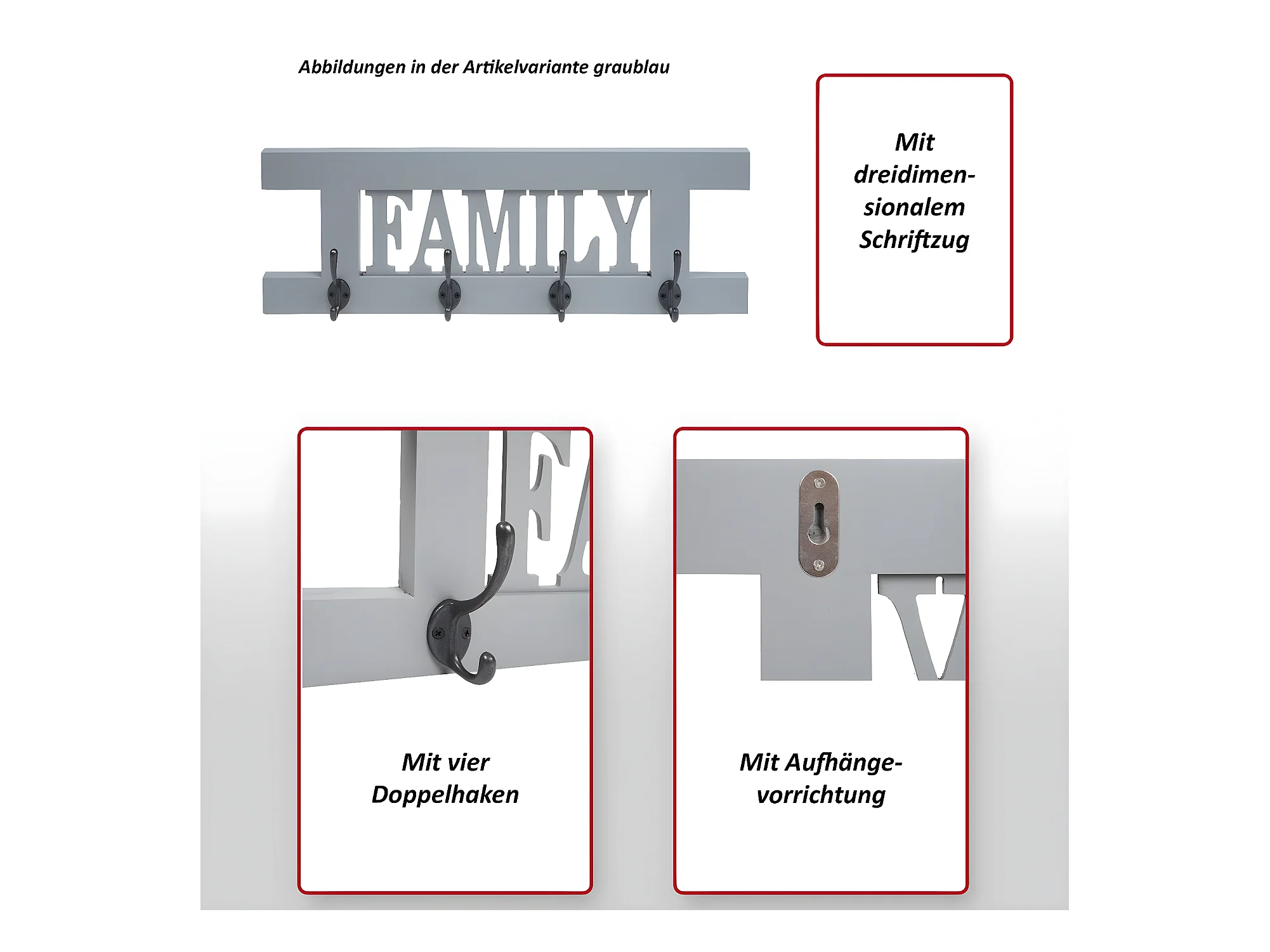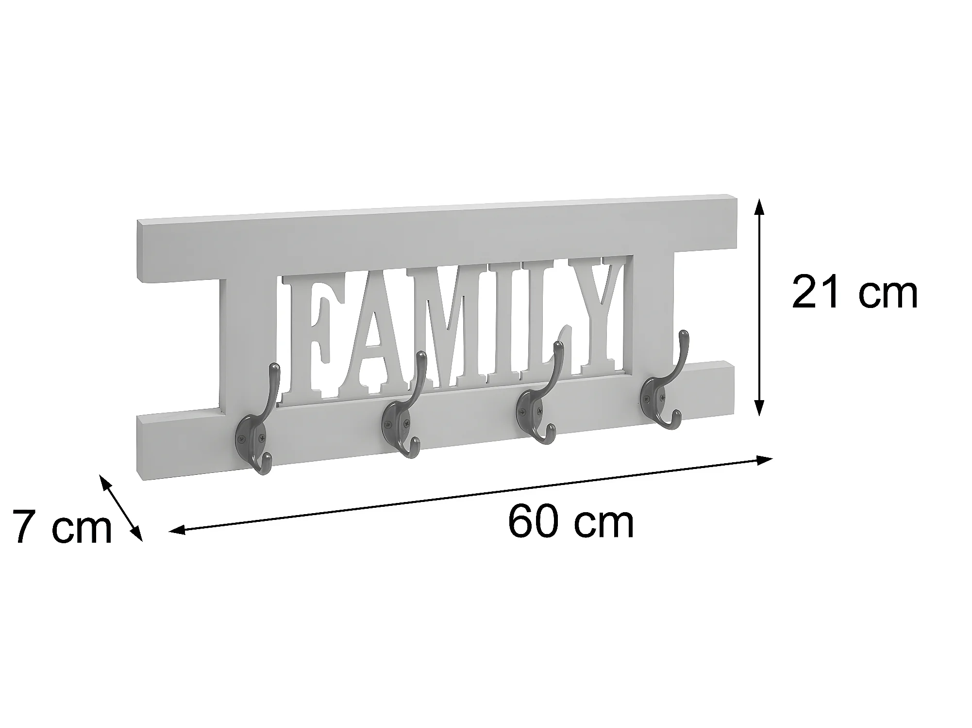 Wandgarderobe MCW-D41 Willkommen 4 Haken, Weiß