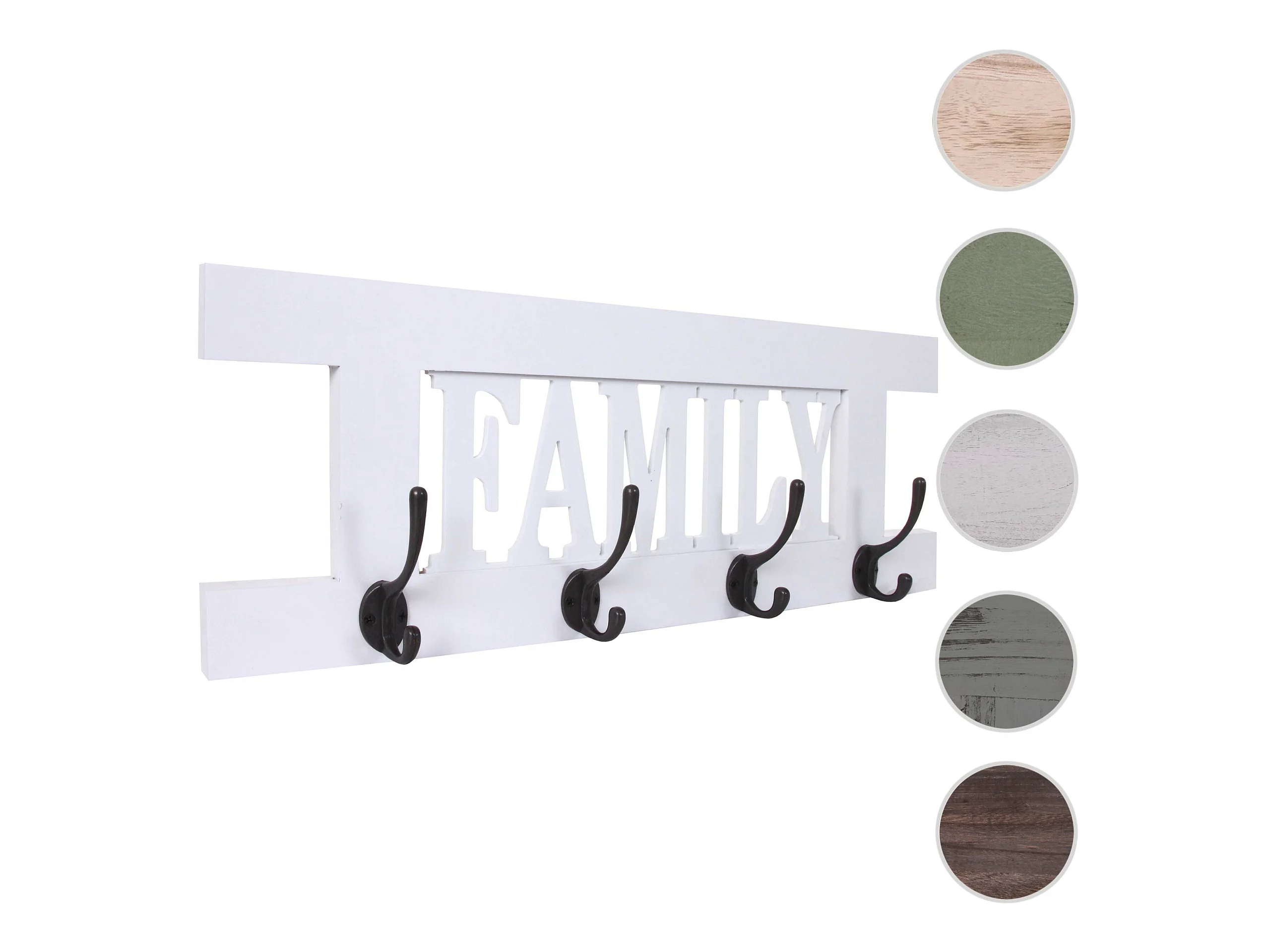 Wandgarderobe MCW-D41 Sweet Home 4 Haken, Weiß