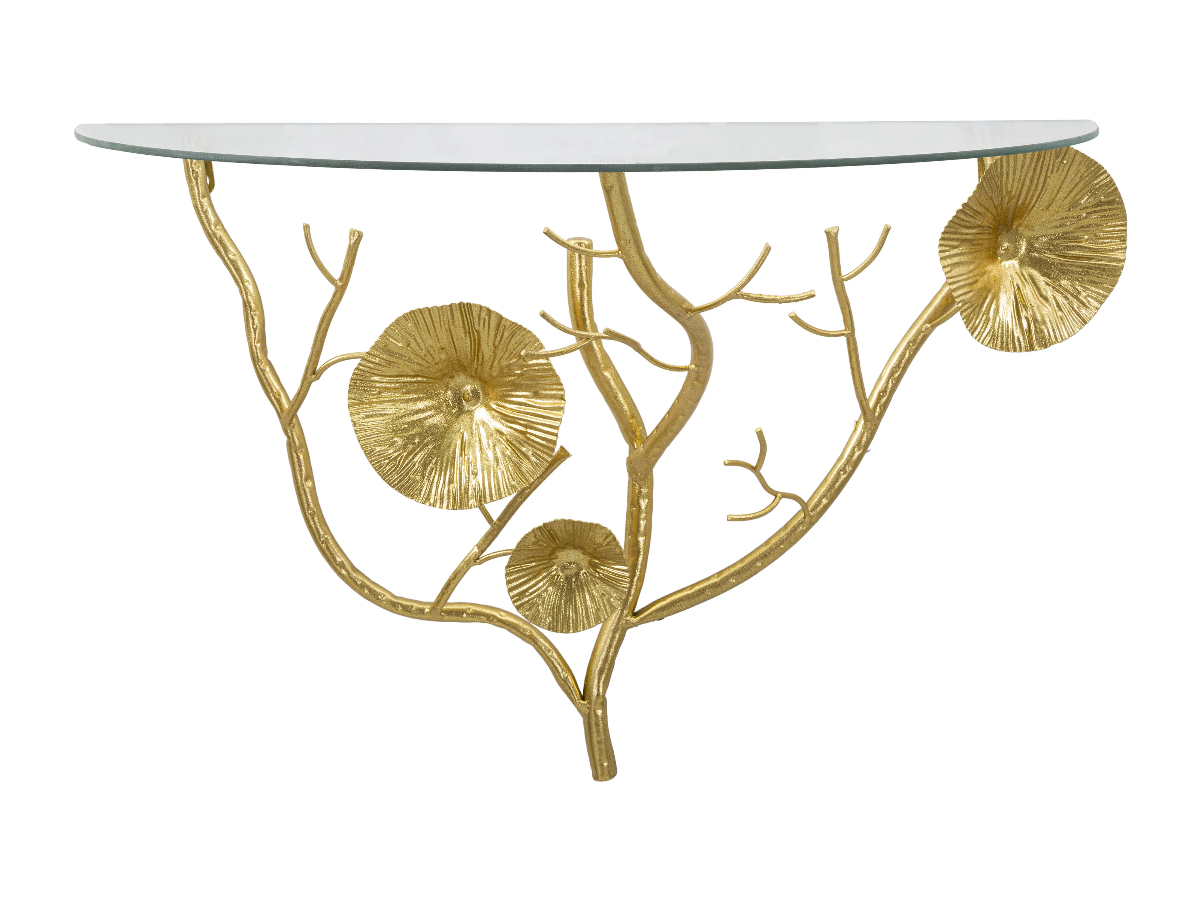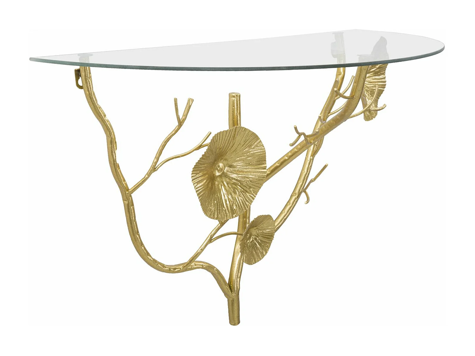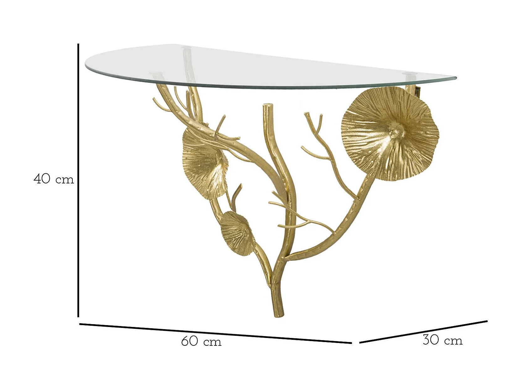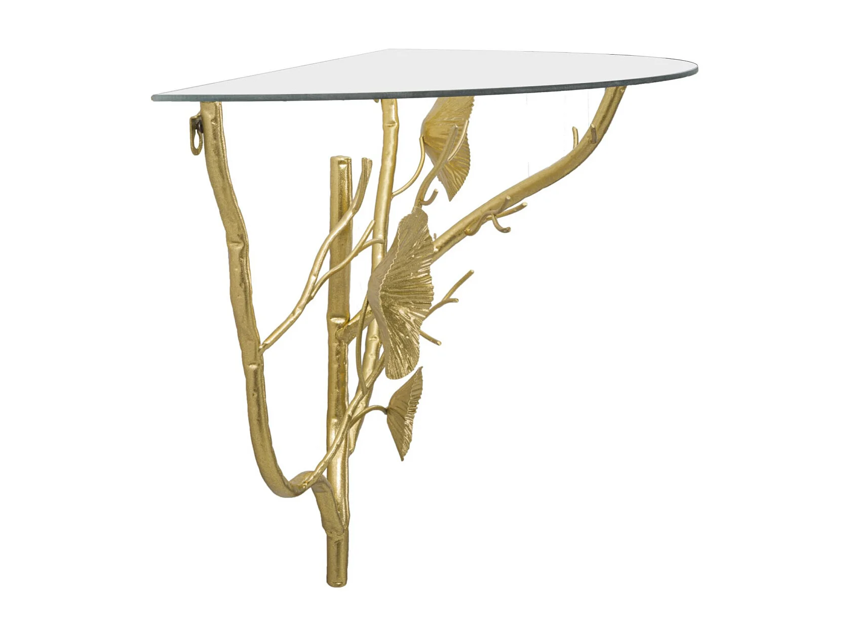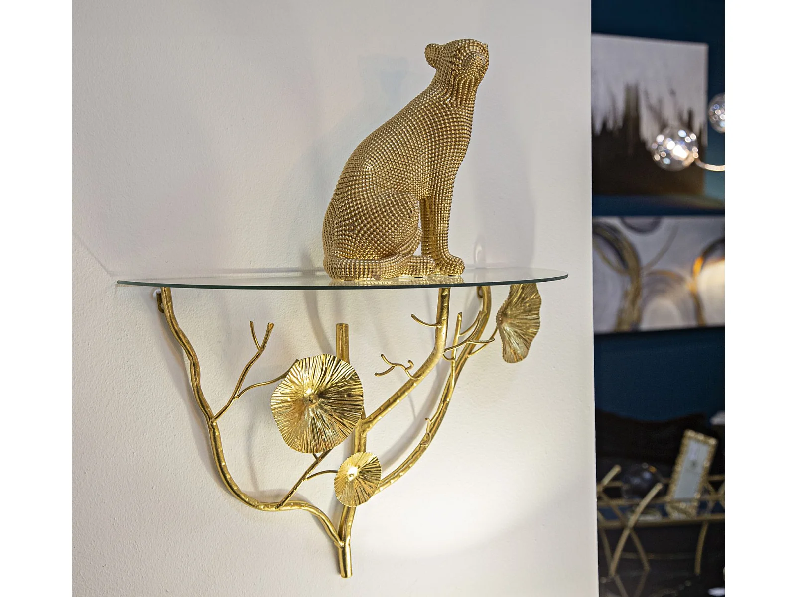 Wandregal aus goldfarbenem Metall mit Glasablage Tisty