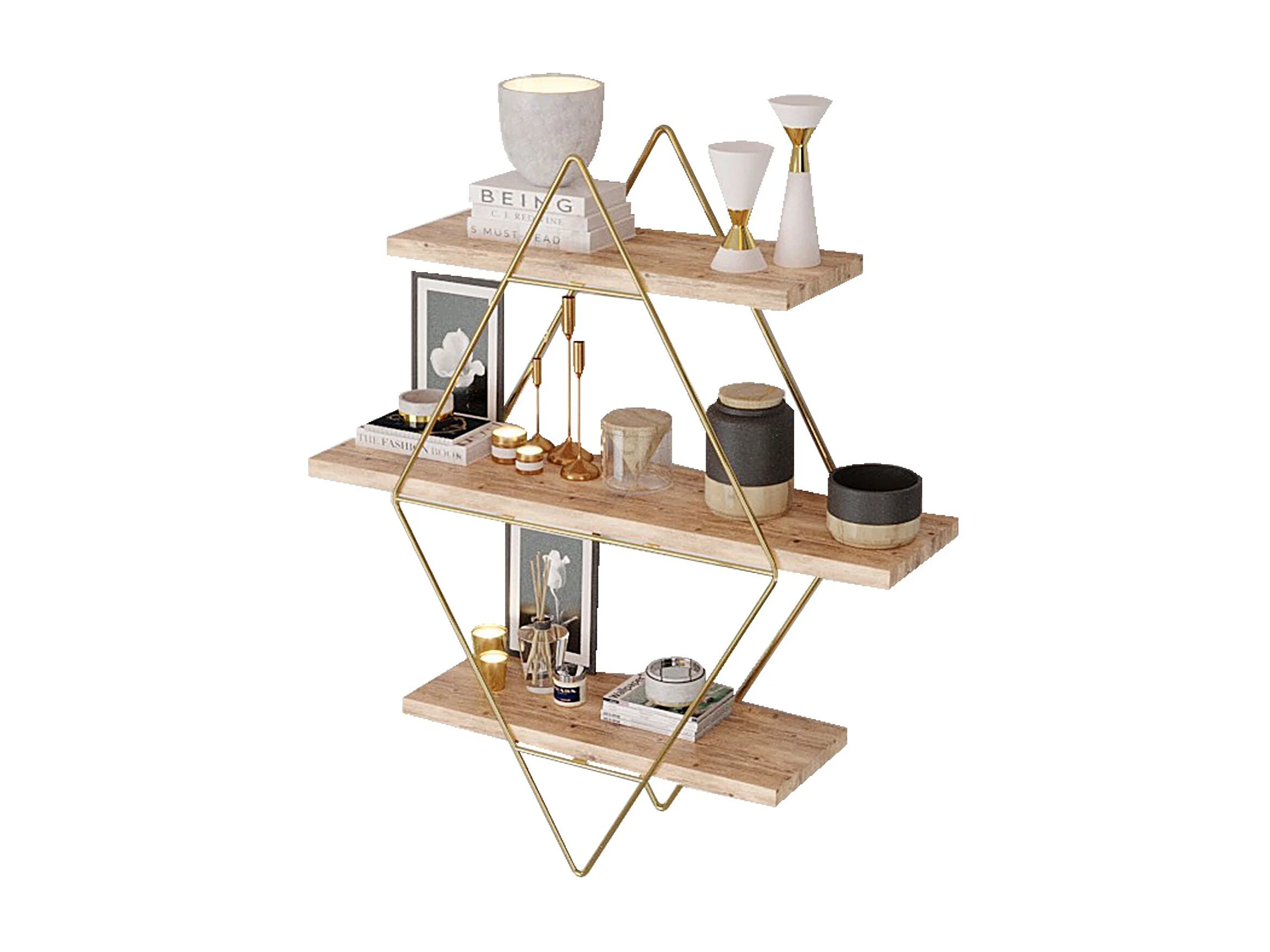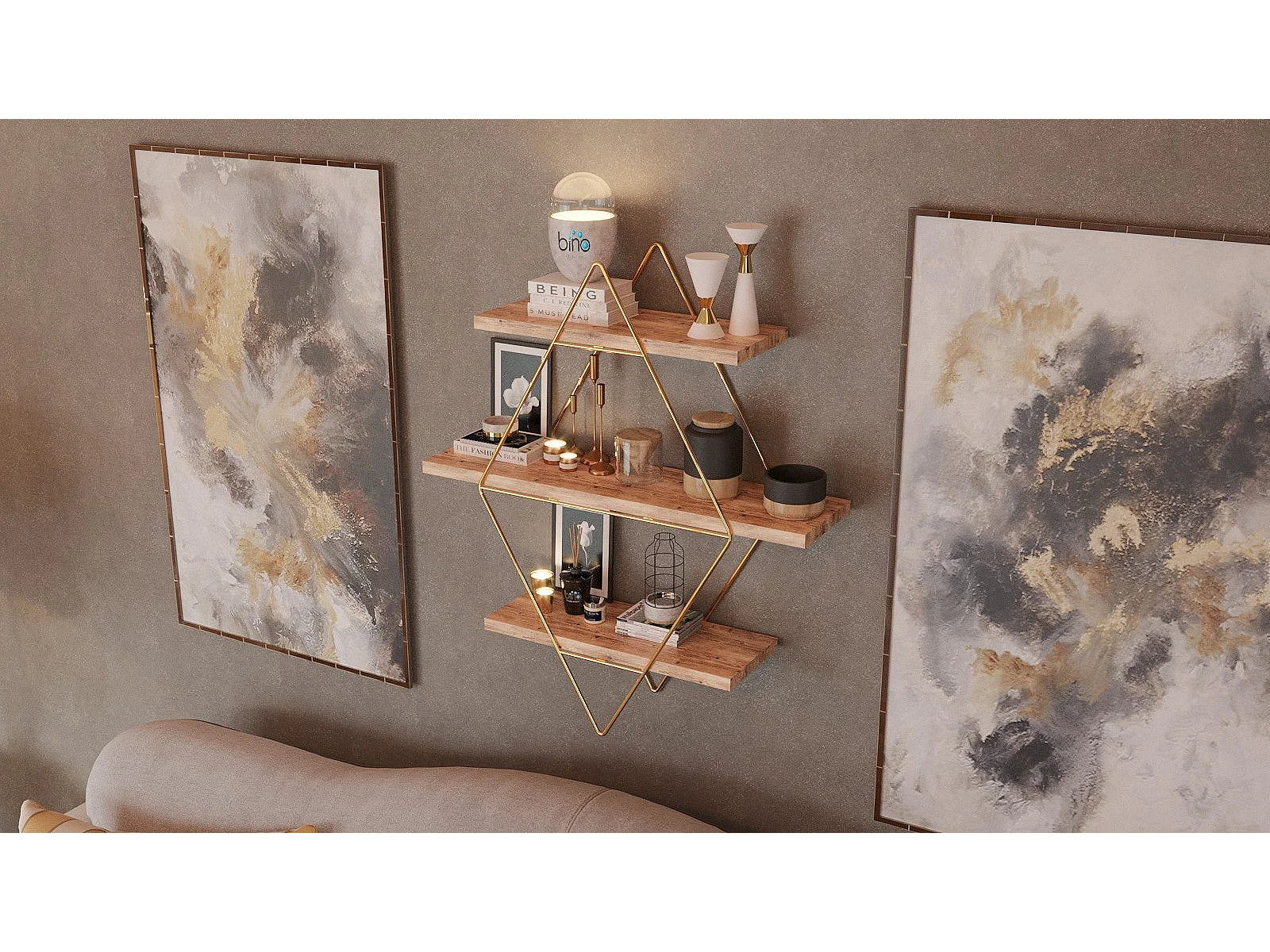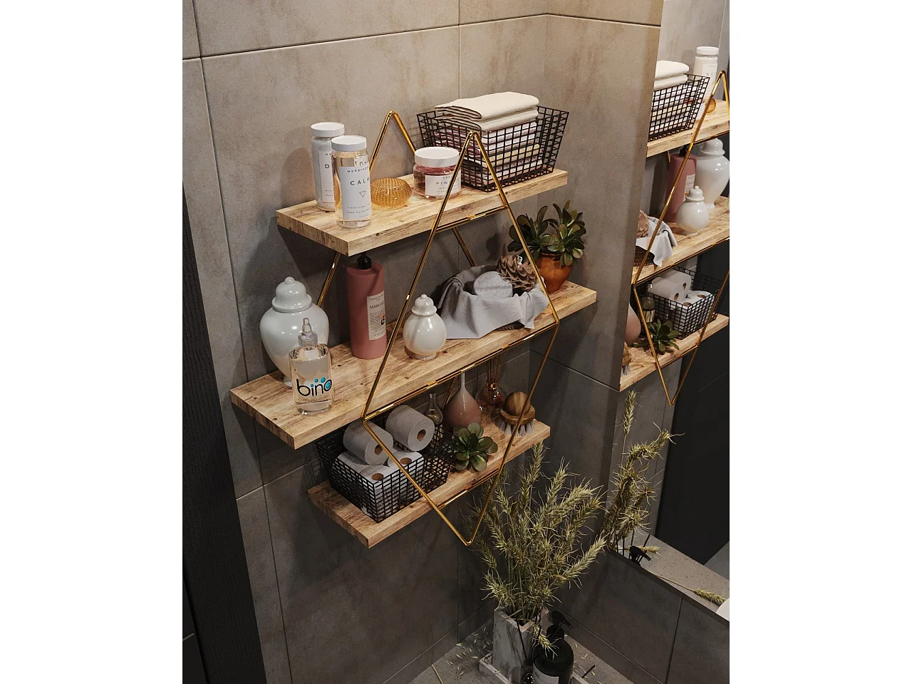 3-tlg. Wandregal-Set mit Stangen Räuchereiche Holzwerkstoff
