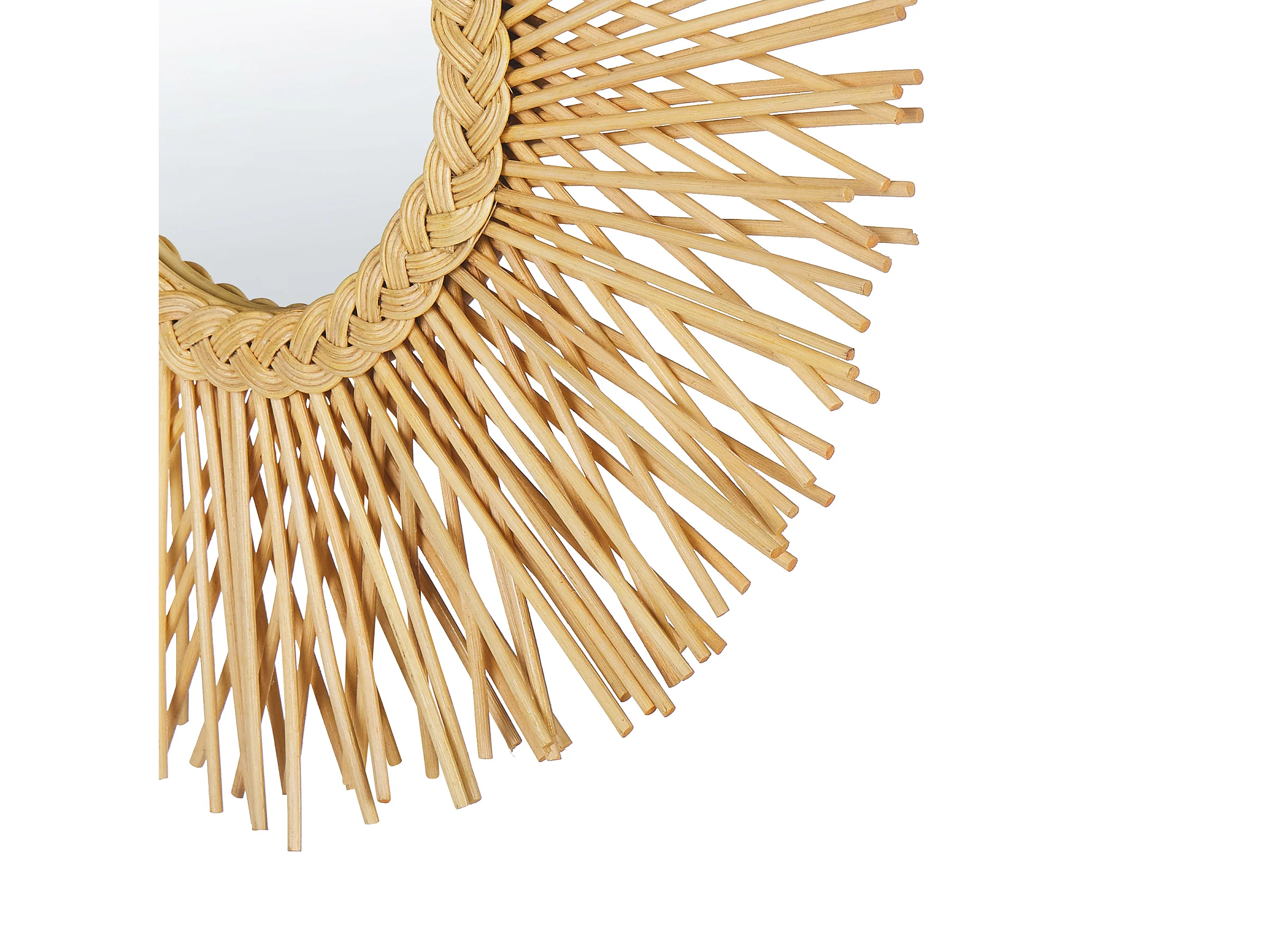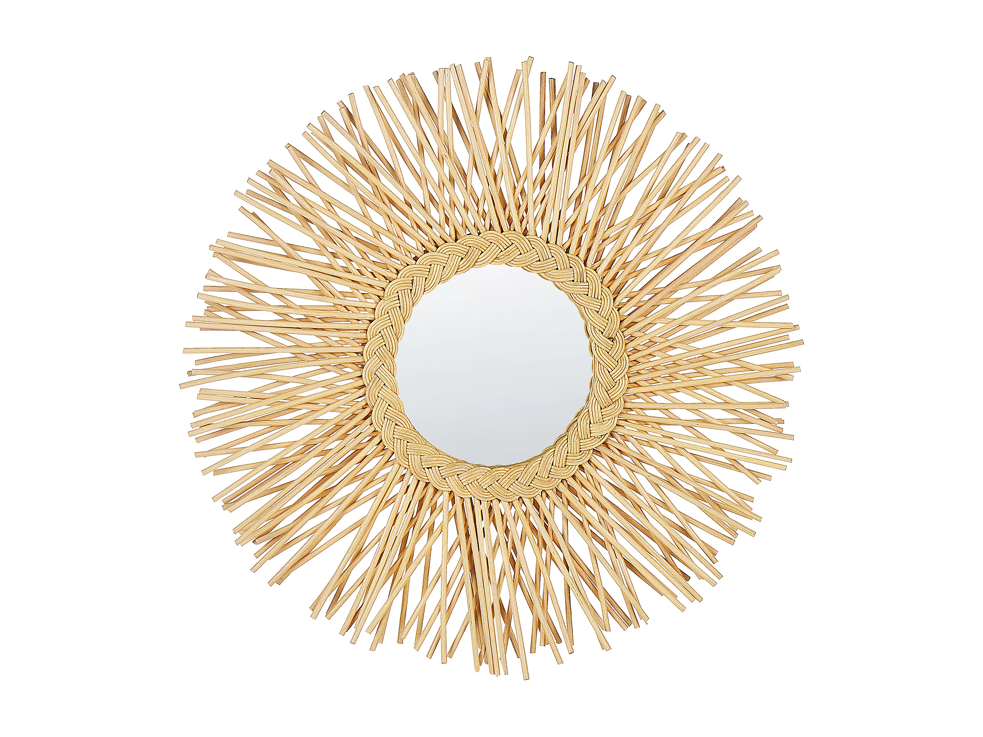 Origineller Wandspiegel natürlich aus Rattan Sonnenform rund Boho 60 cm Kalasin