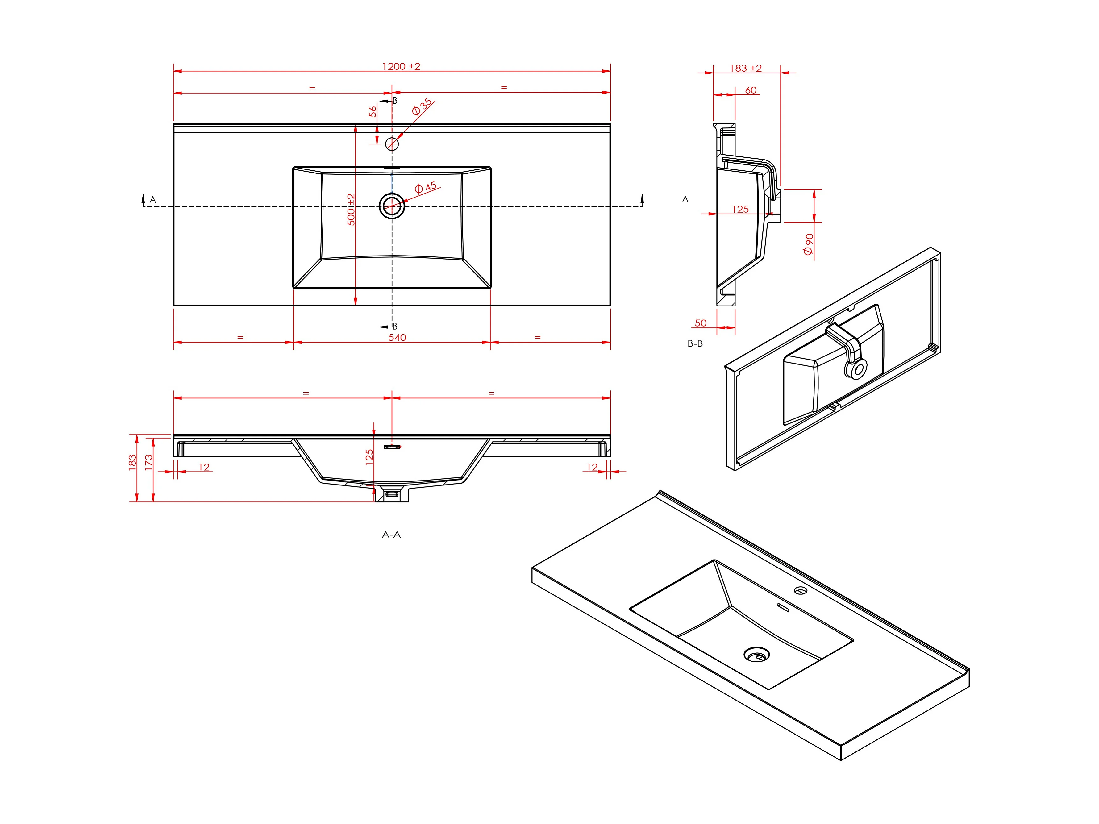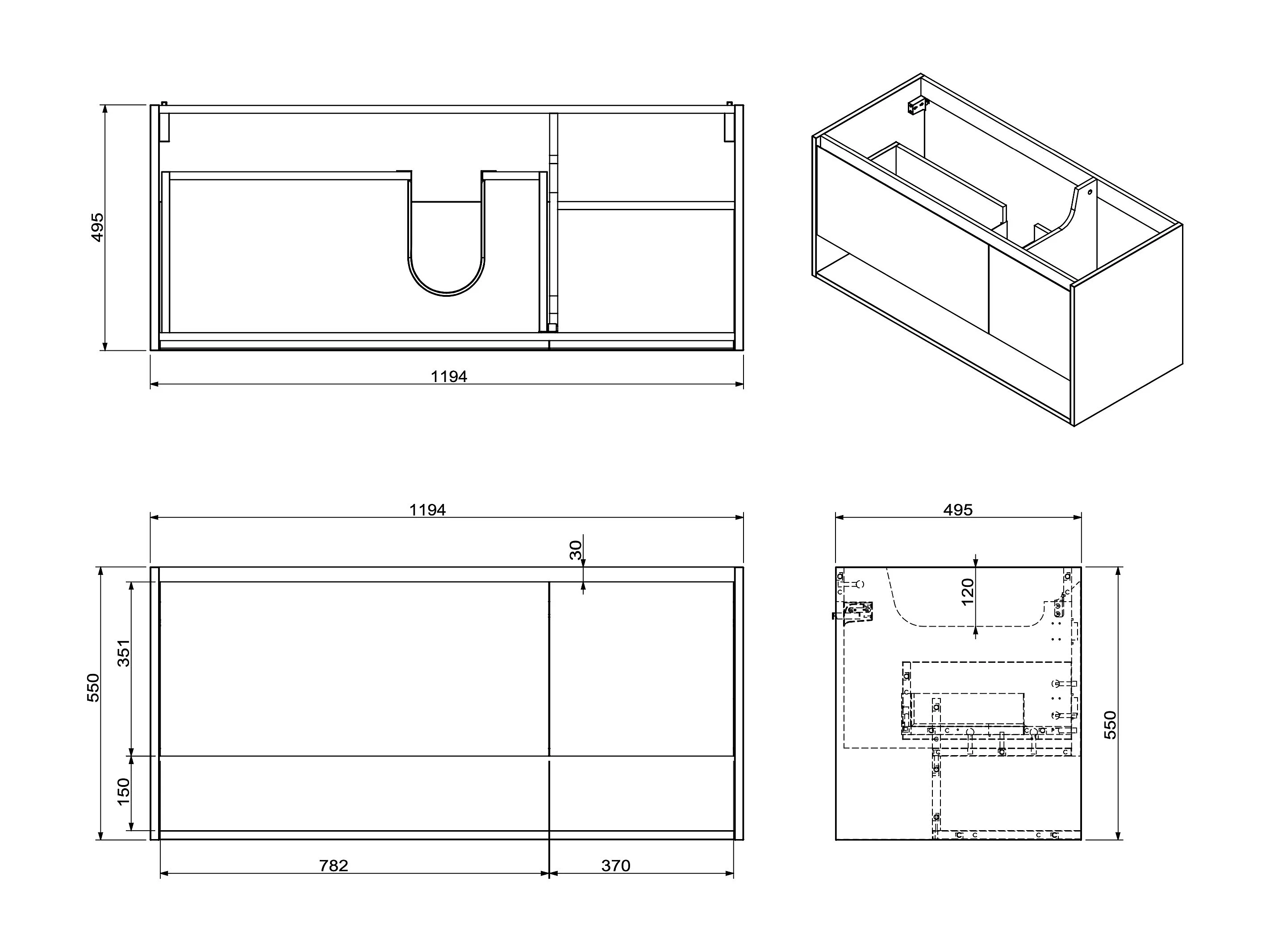 Waschbeckenunterschrank hängend mit Einzelwaschbecken - Holzfarben hell - 120 cm - PUJUKA