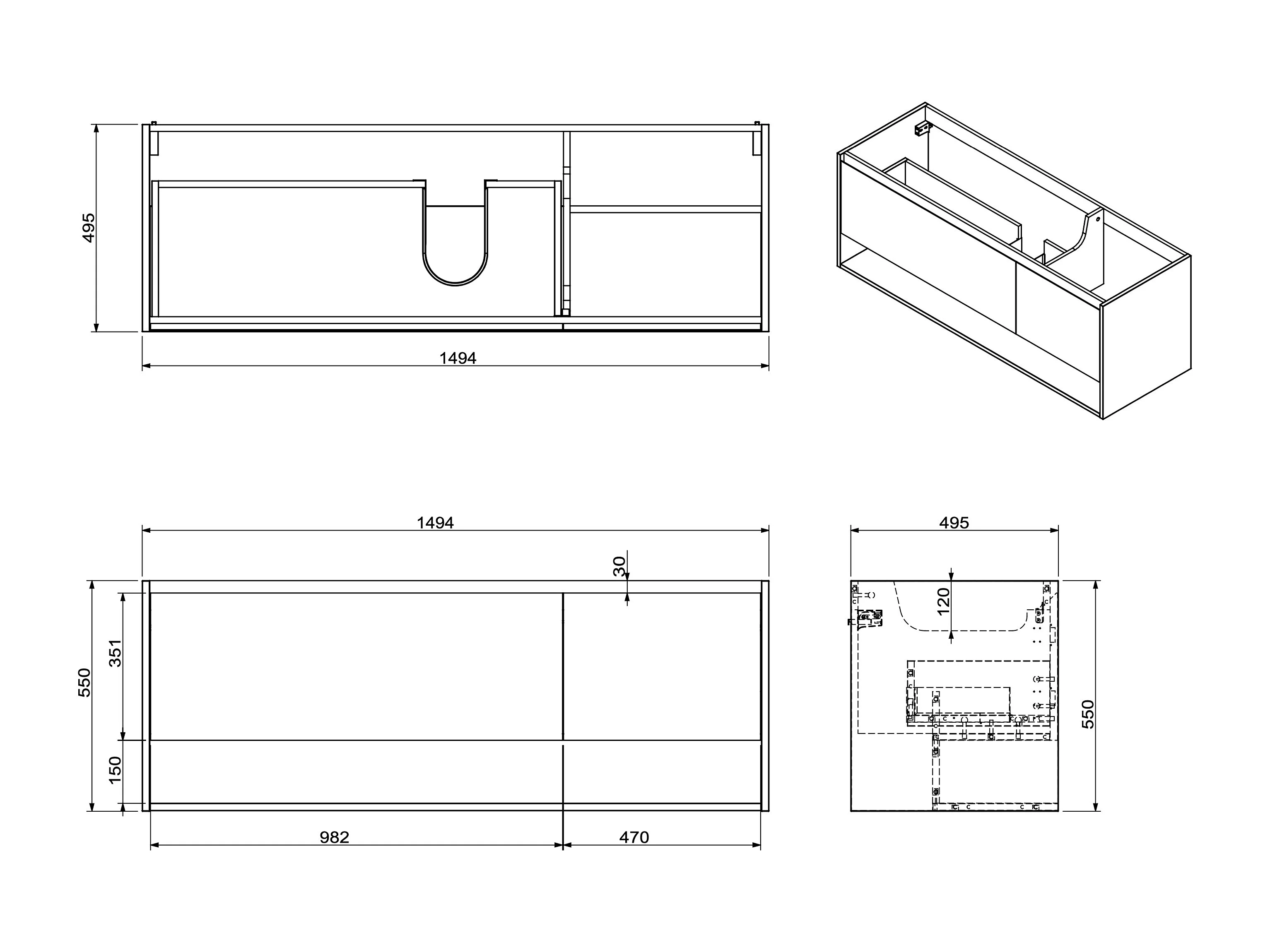 Waschbeckenunterschrank hängend mit Einzelwaschbecken - Holzfarben hell - 150 cm - PUJUKA