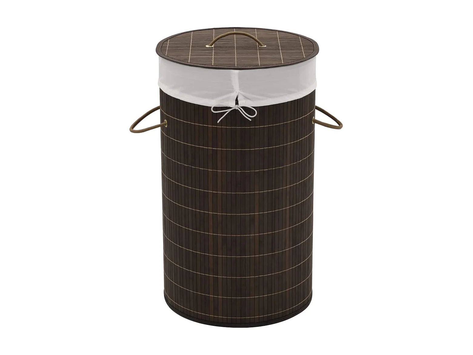 Wäschekorb aus Bambus Rund Dunkelbraun