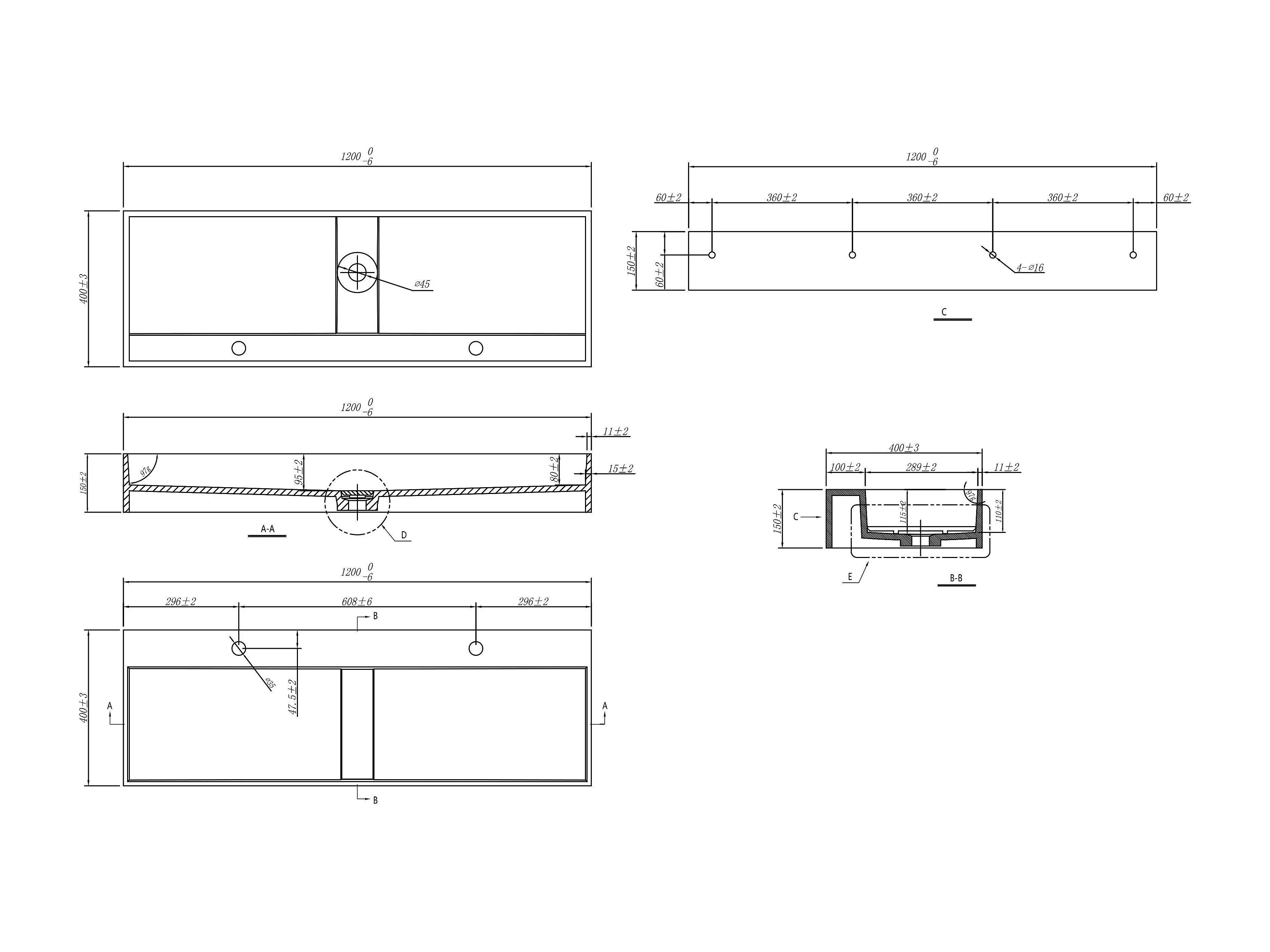 Hängendes Waschbecken - Weiß - 120 x 40 x 15 cm - YAMDROK