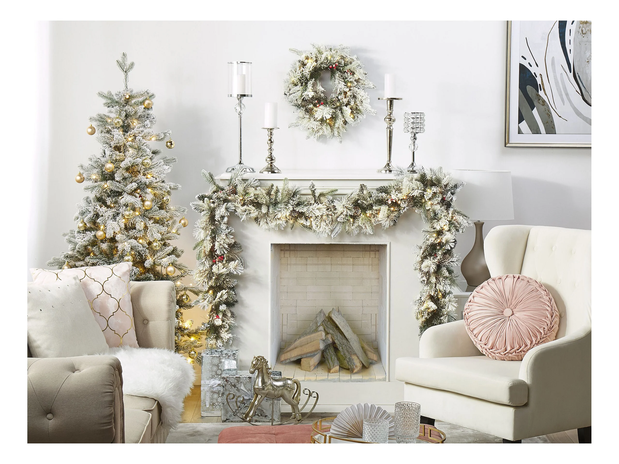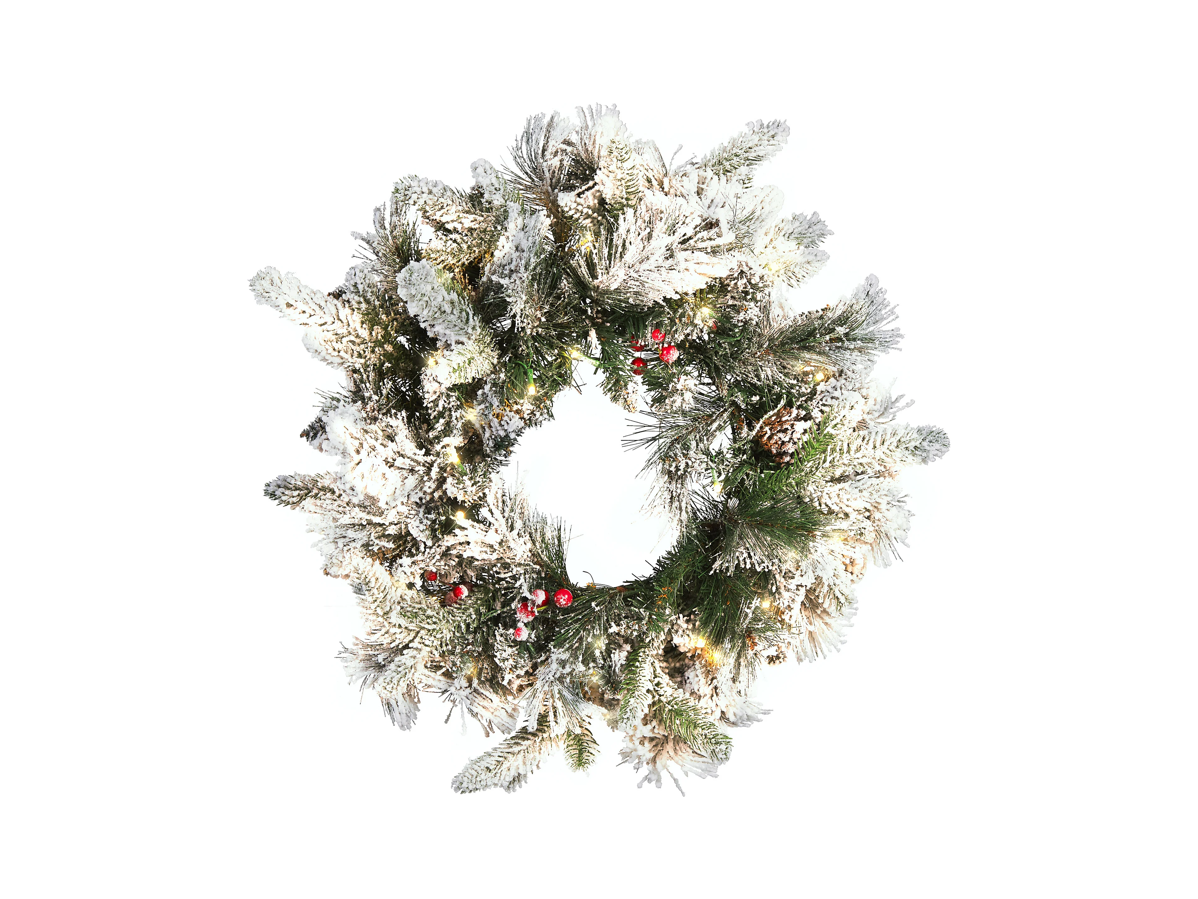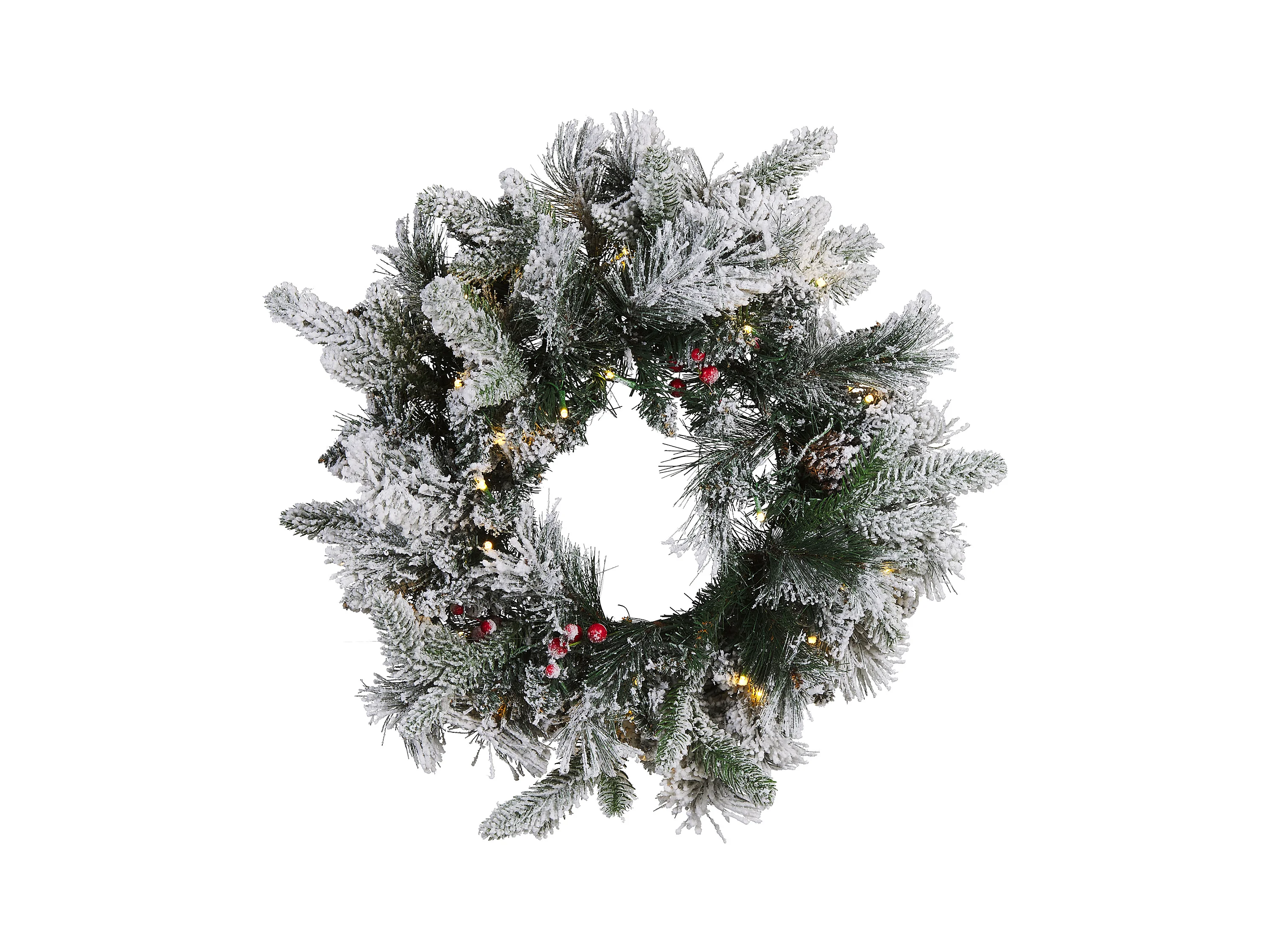 Weihnachtskranz weiß mit Beleuchtung Schnee bedeckt ⌀ 55 cm Whitehorn