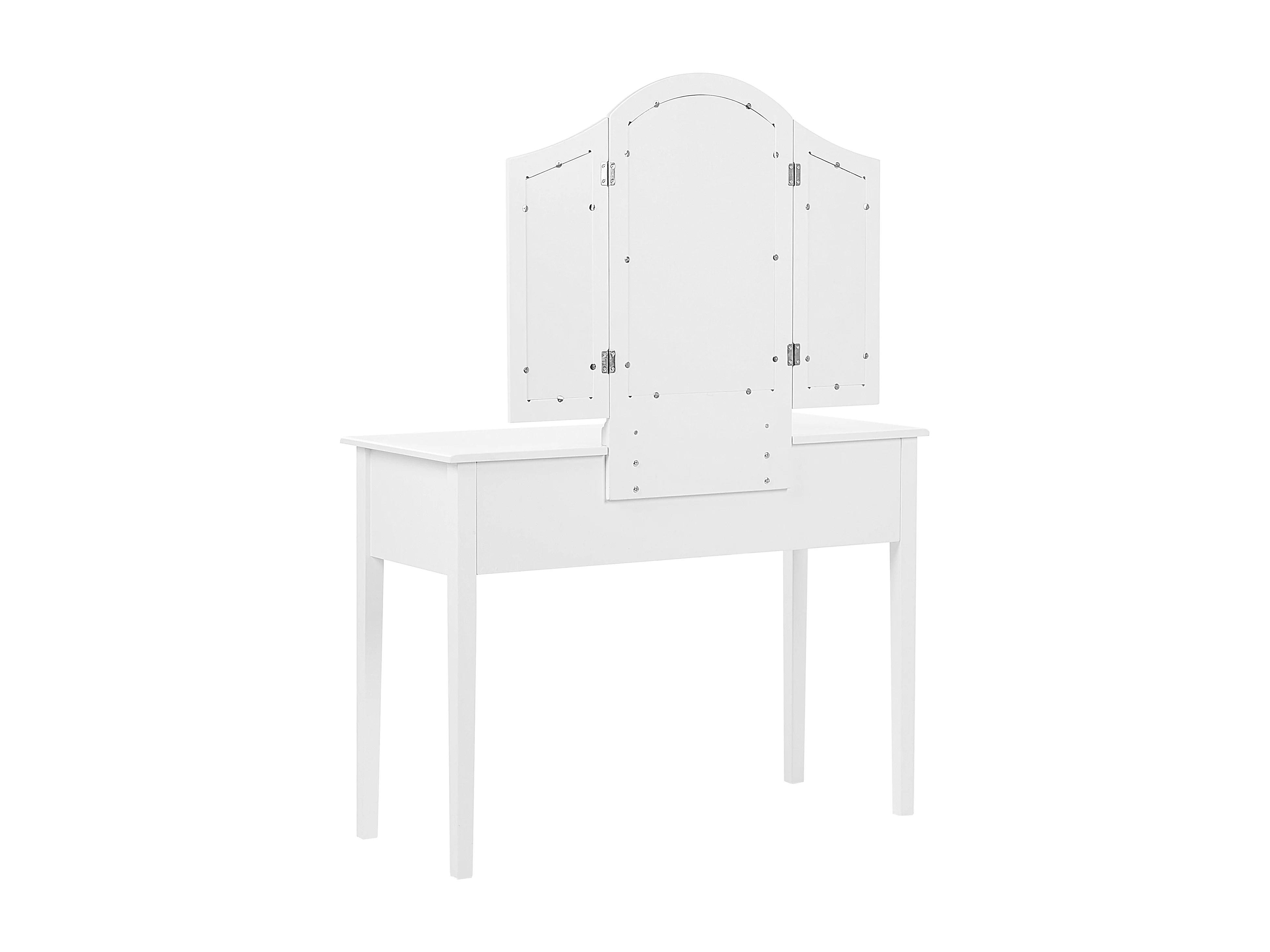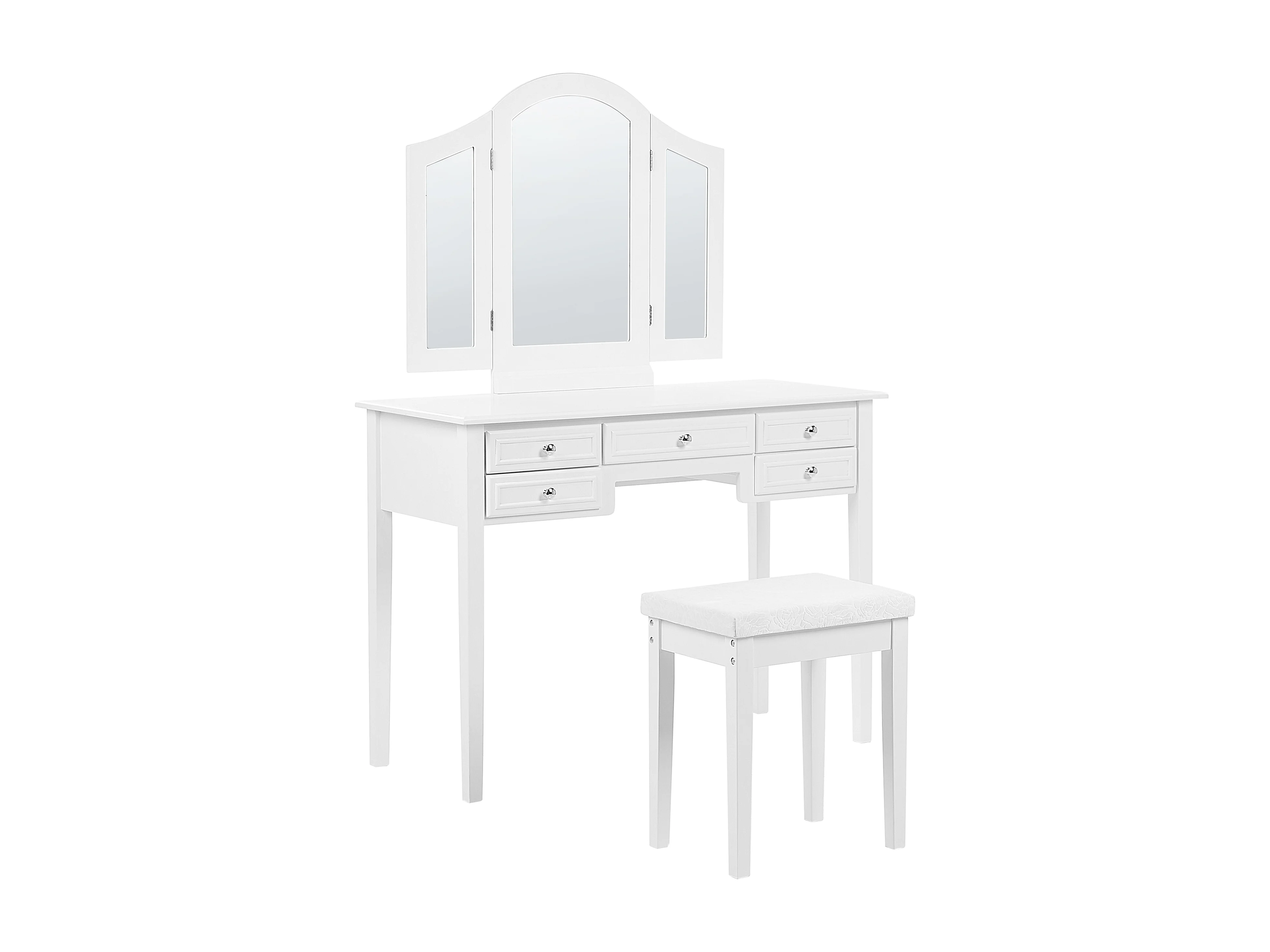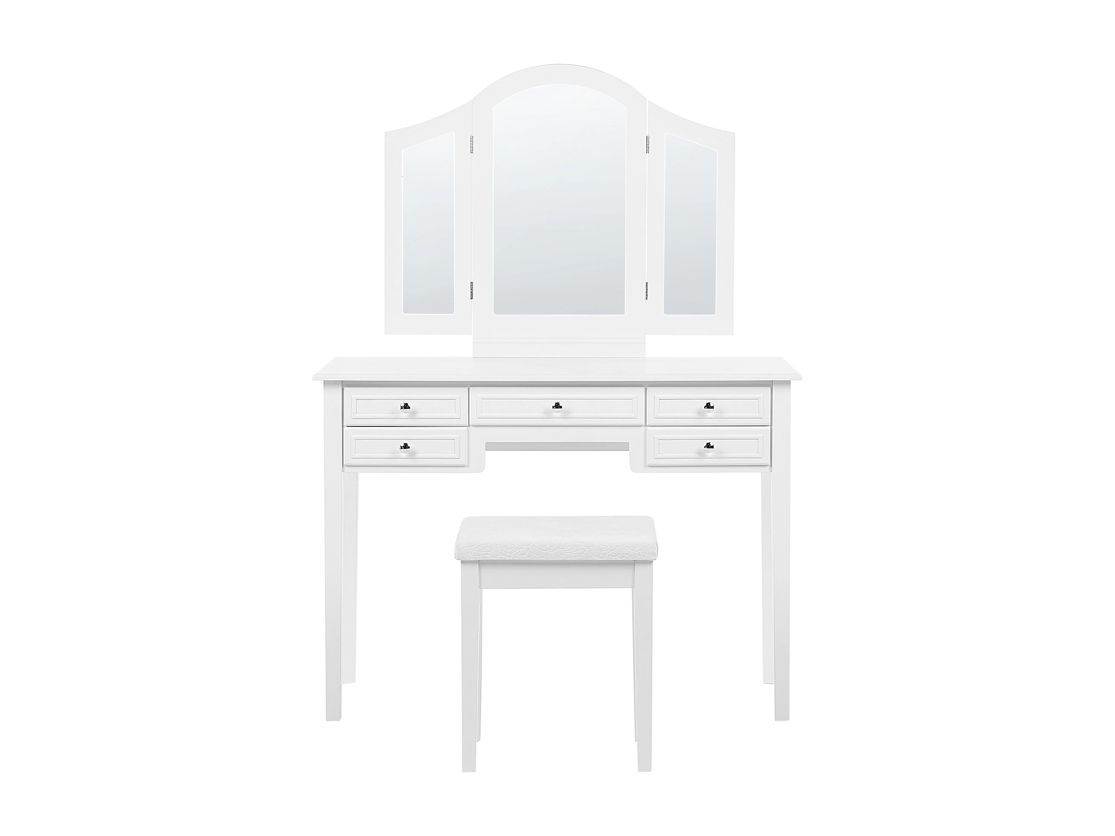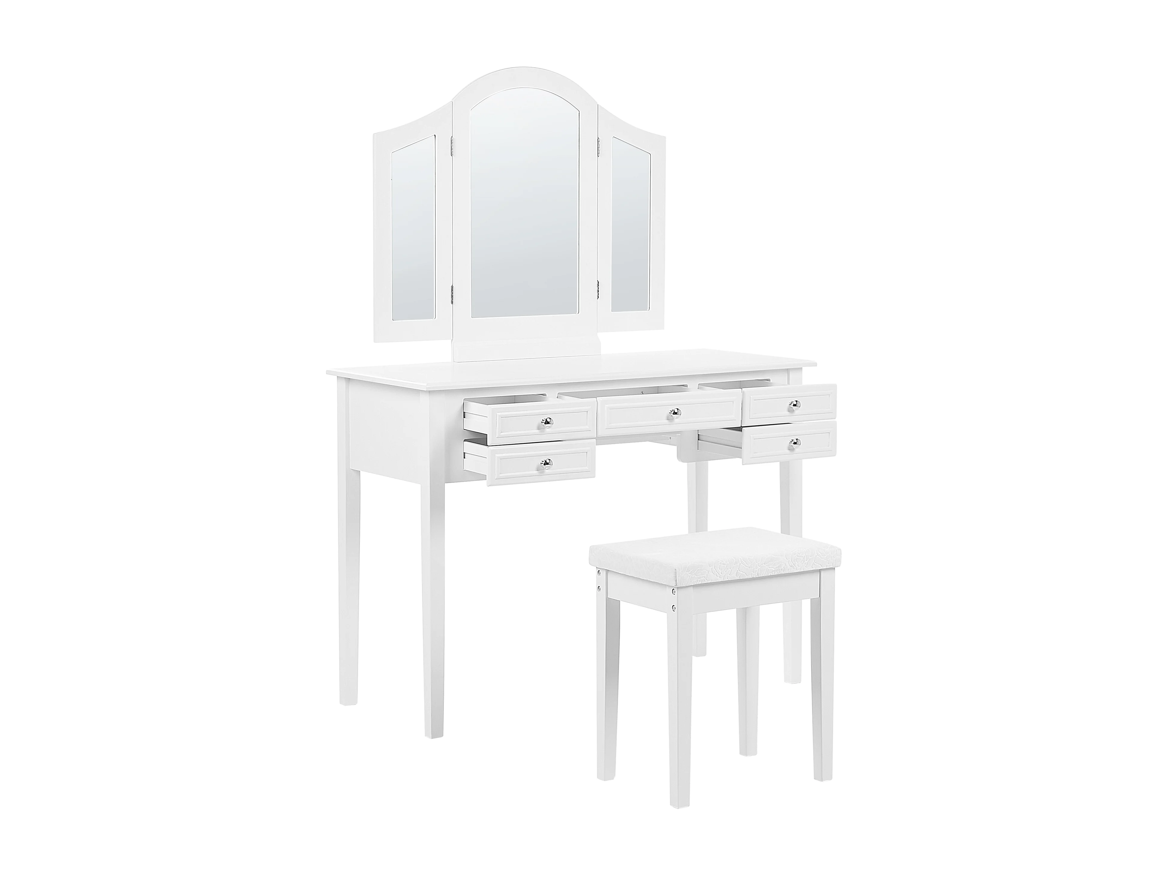 Weißer Schminktisch mit praktischem Hocker, drei Spiegel und 5 Schubladen Lumiere