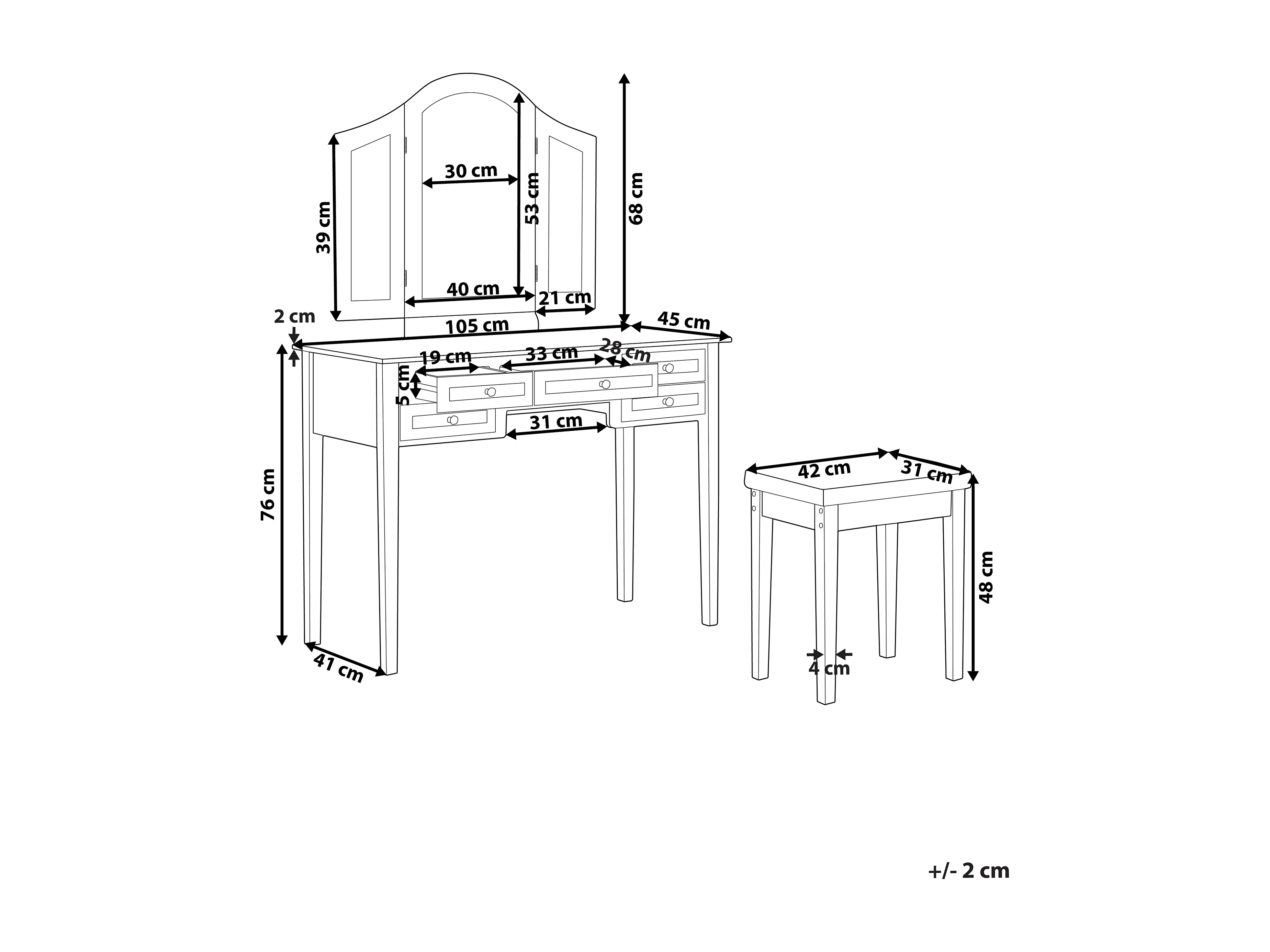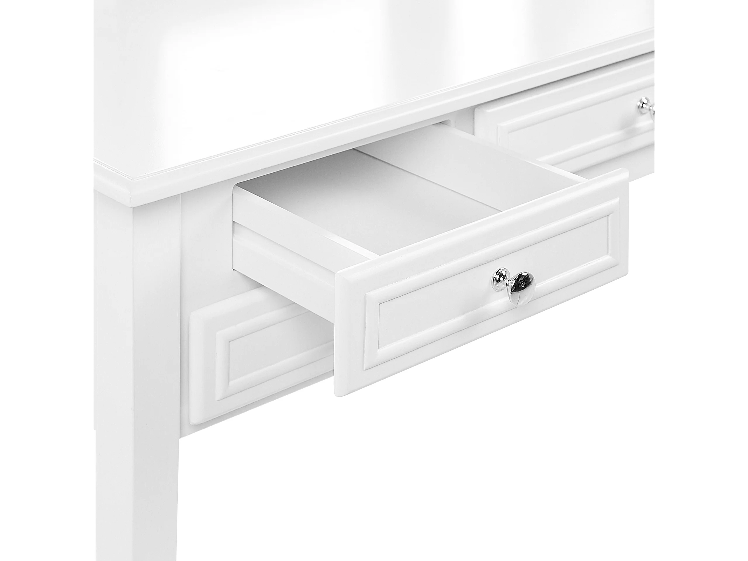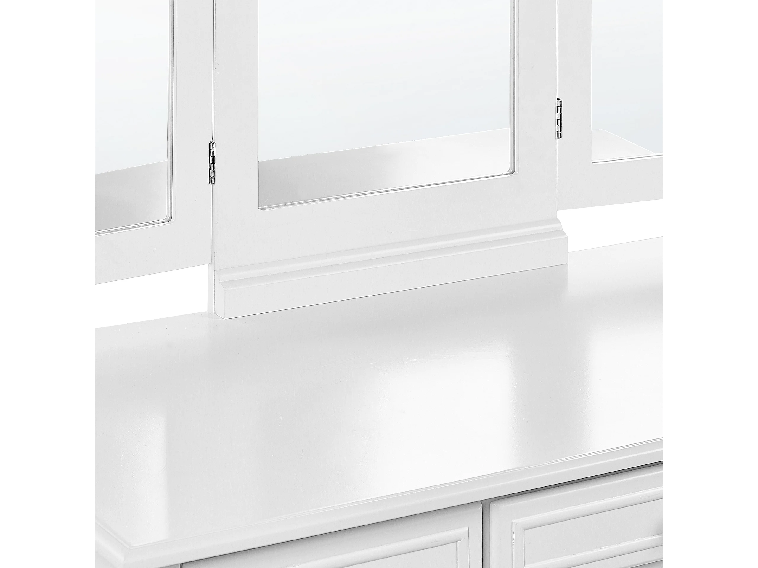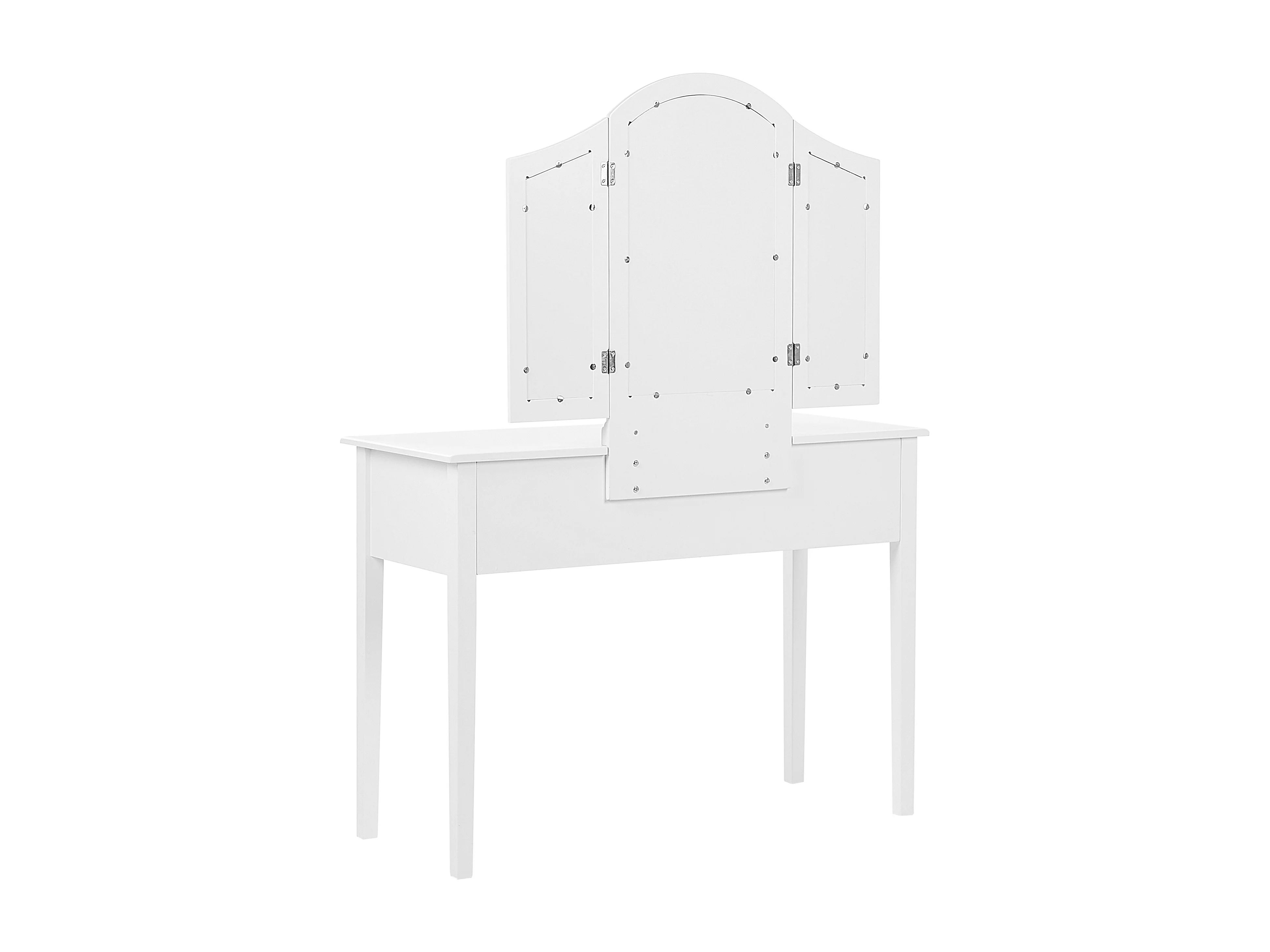 Weißer Schminktisch mit praktischem Hocker, drei Spiegel und 5 Schubladen Lumiere