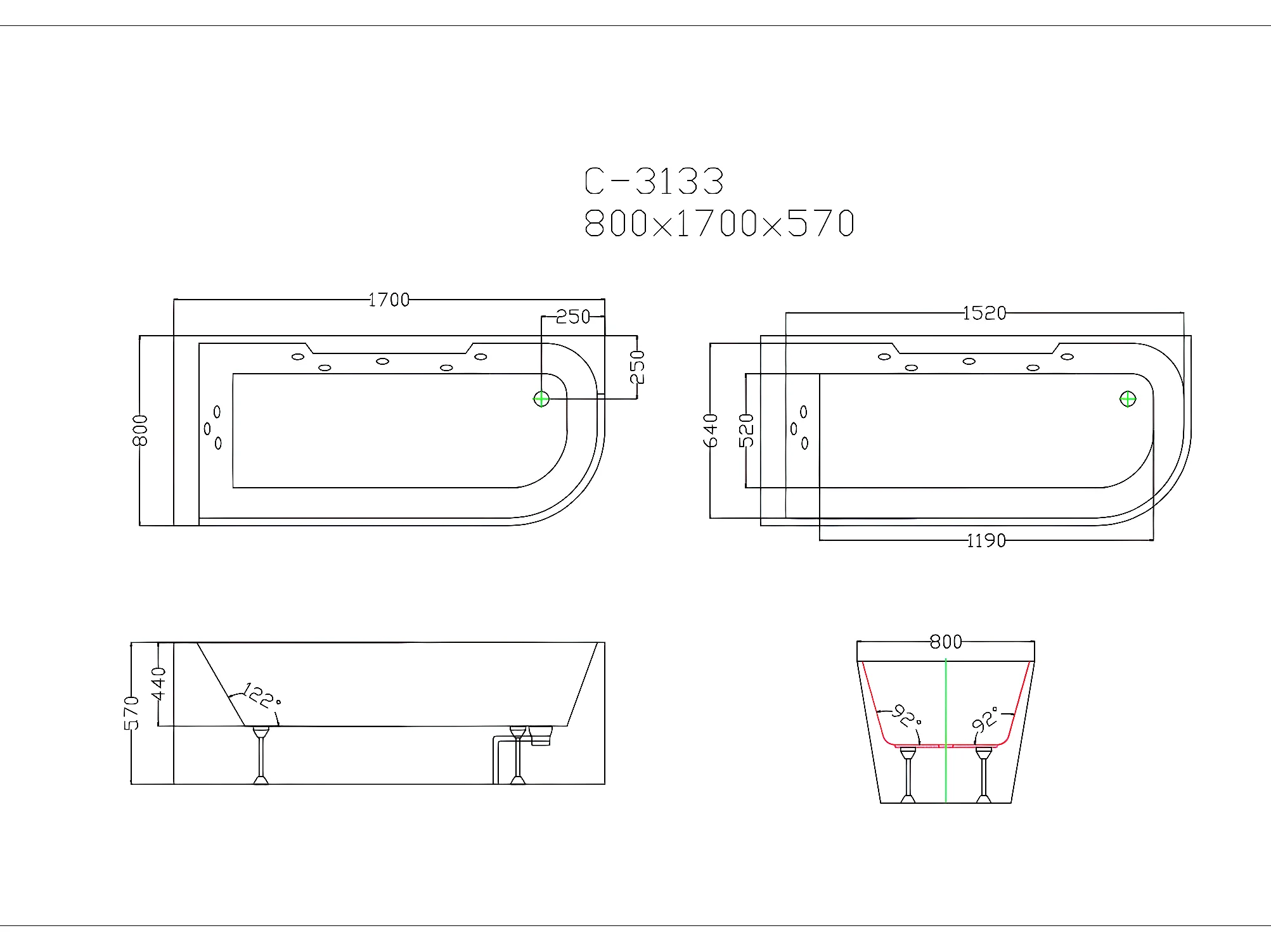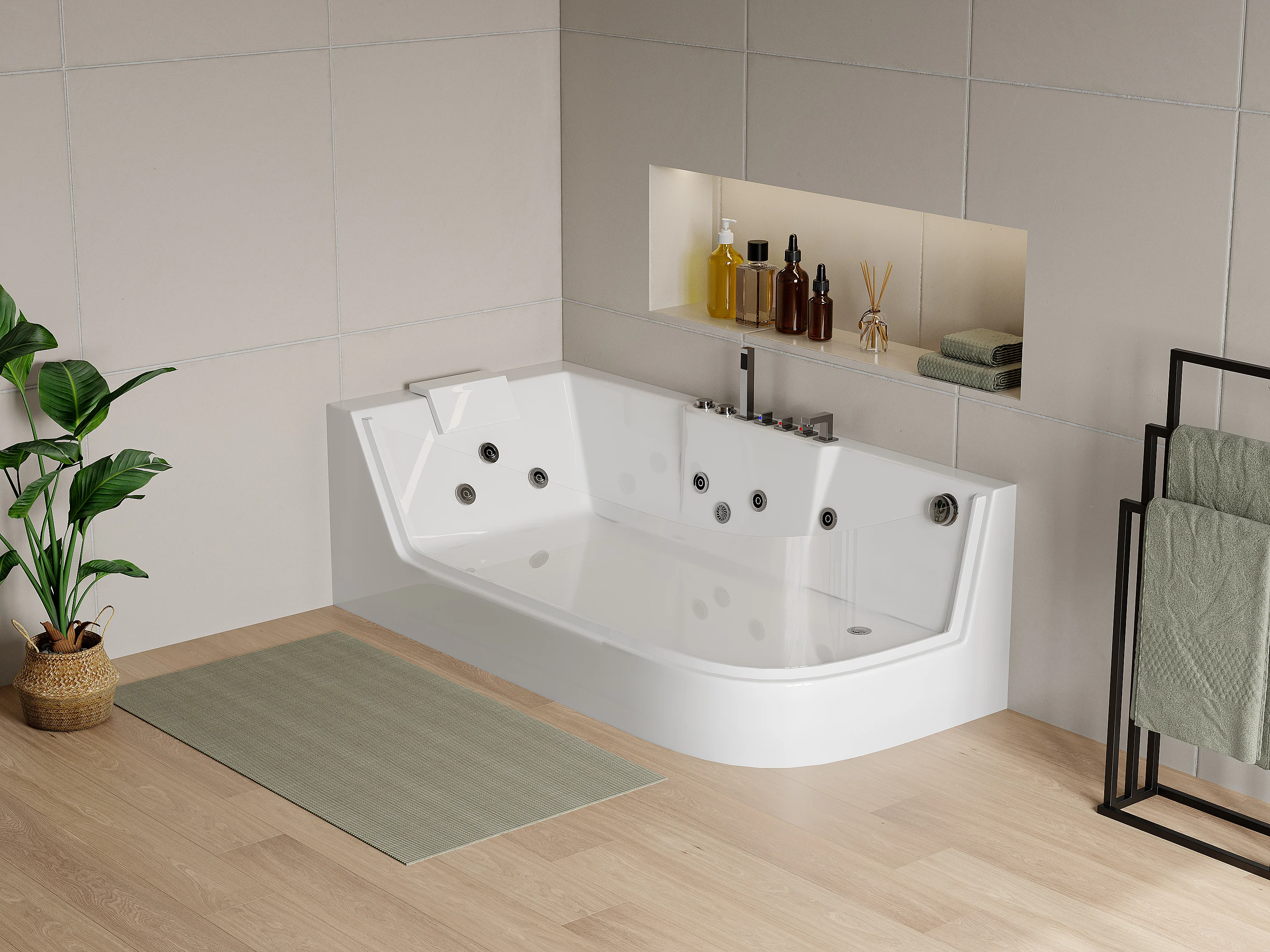 Whirlpool Eckwanne mit Hydromassage - 1 Person - 263 L - Ecke Links - Weiß - ARIA