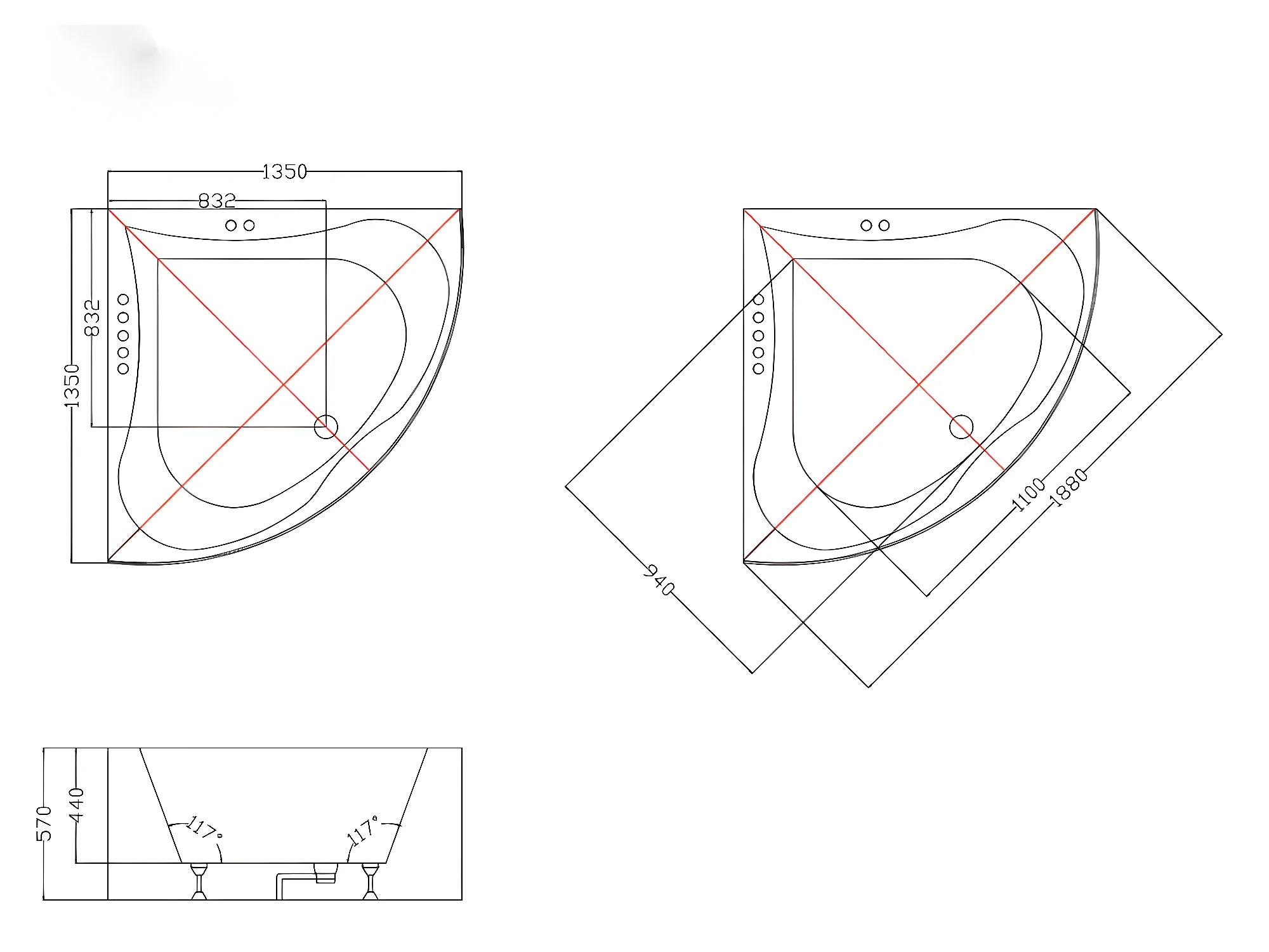 Whirlpool Eckwanne - 1 Person - 263 L - 135 x 135 x 57 cm - AGYNESS